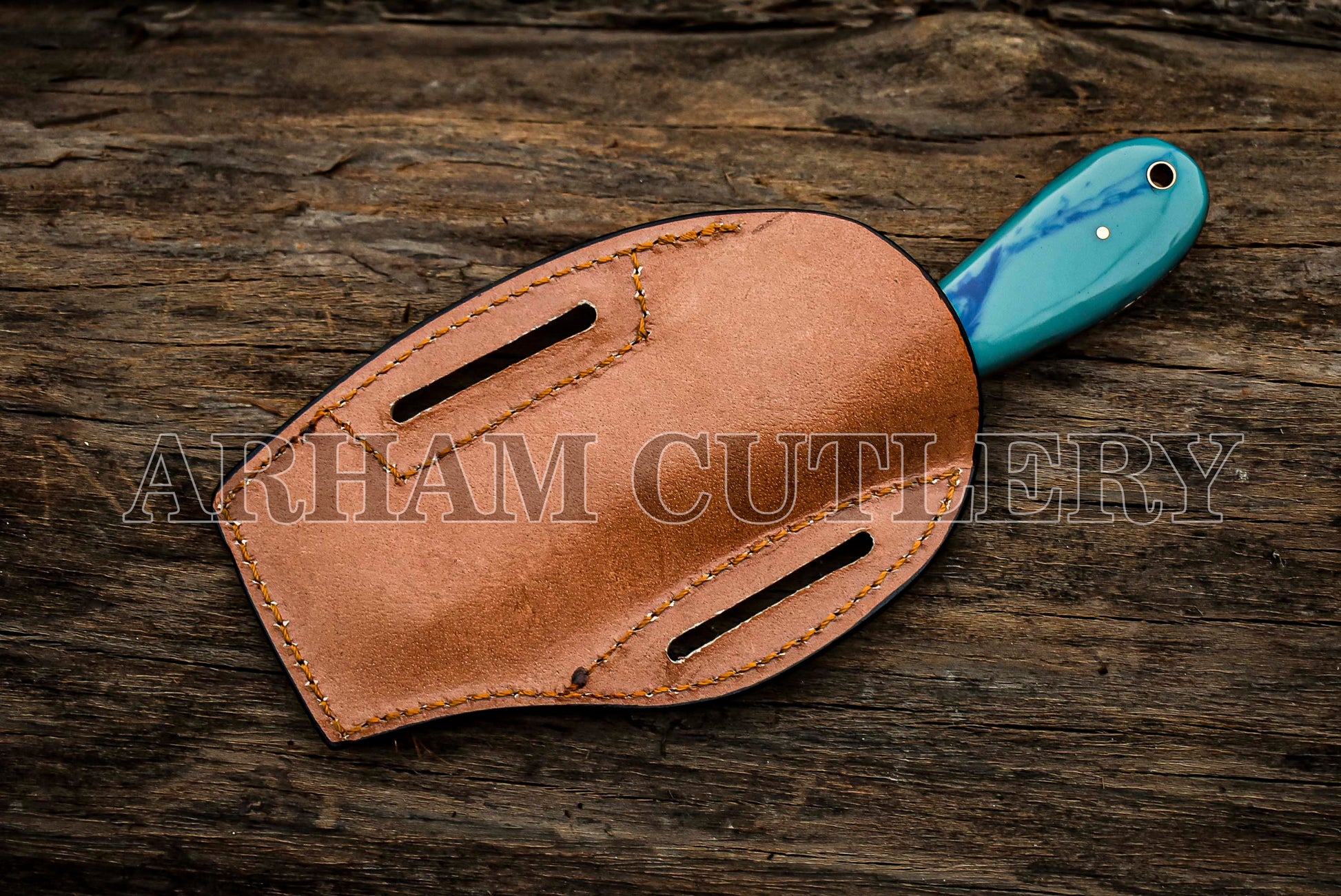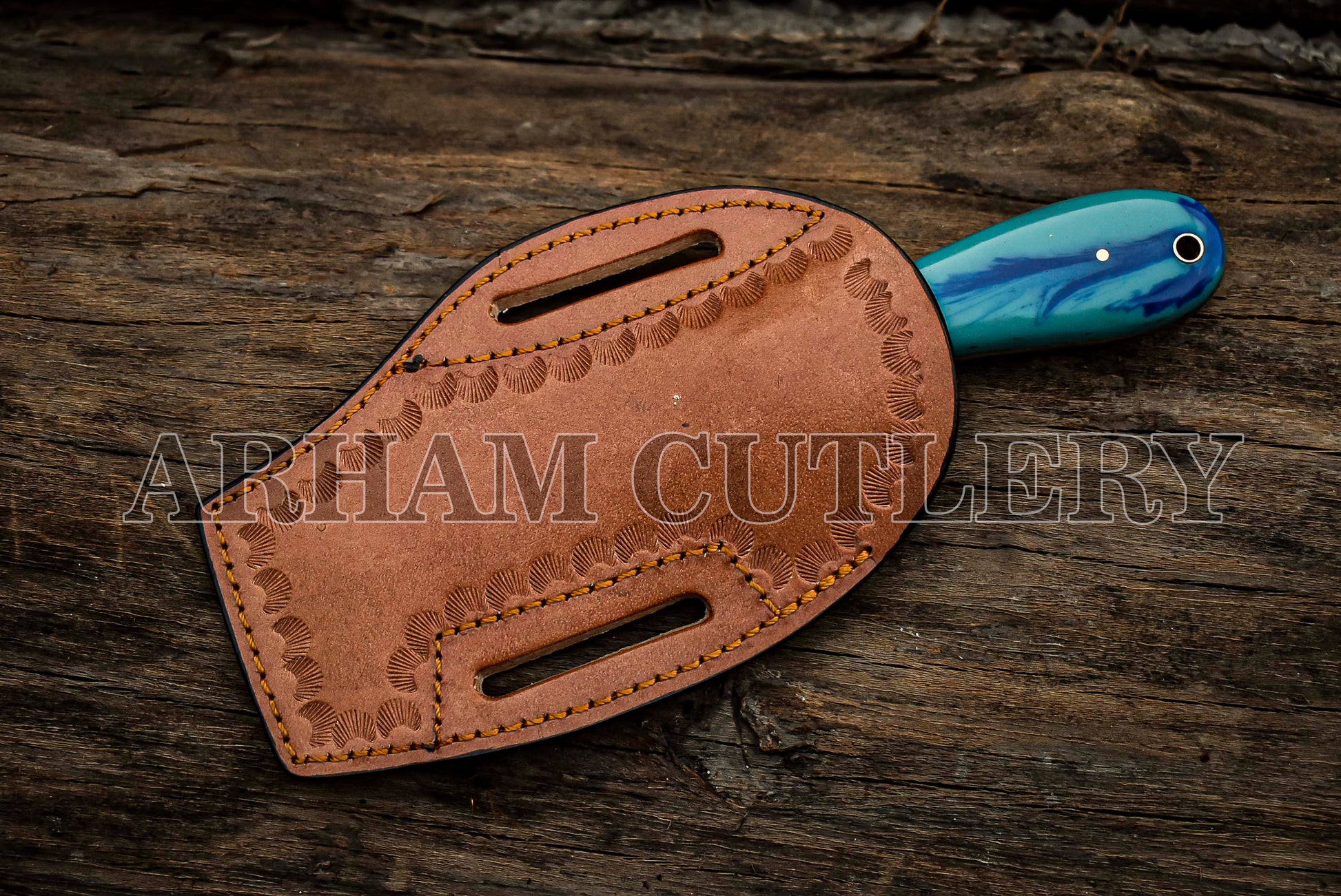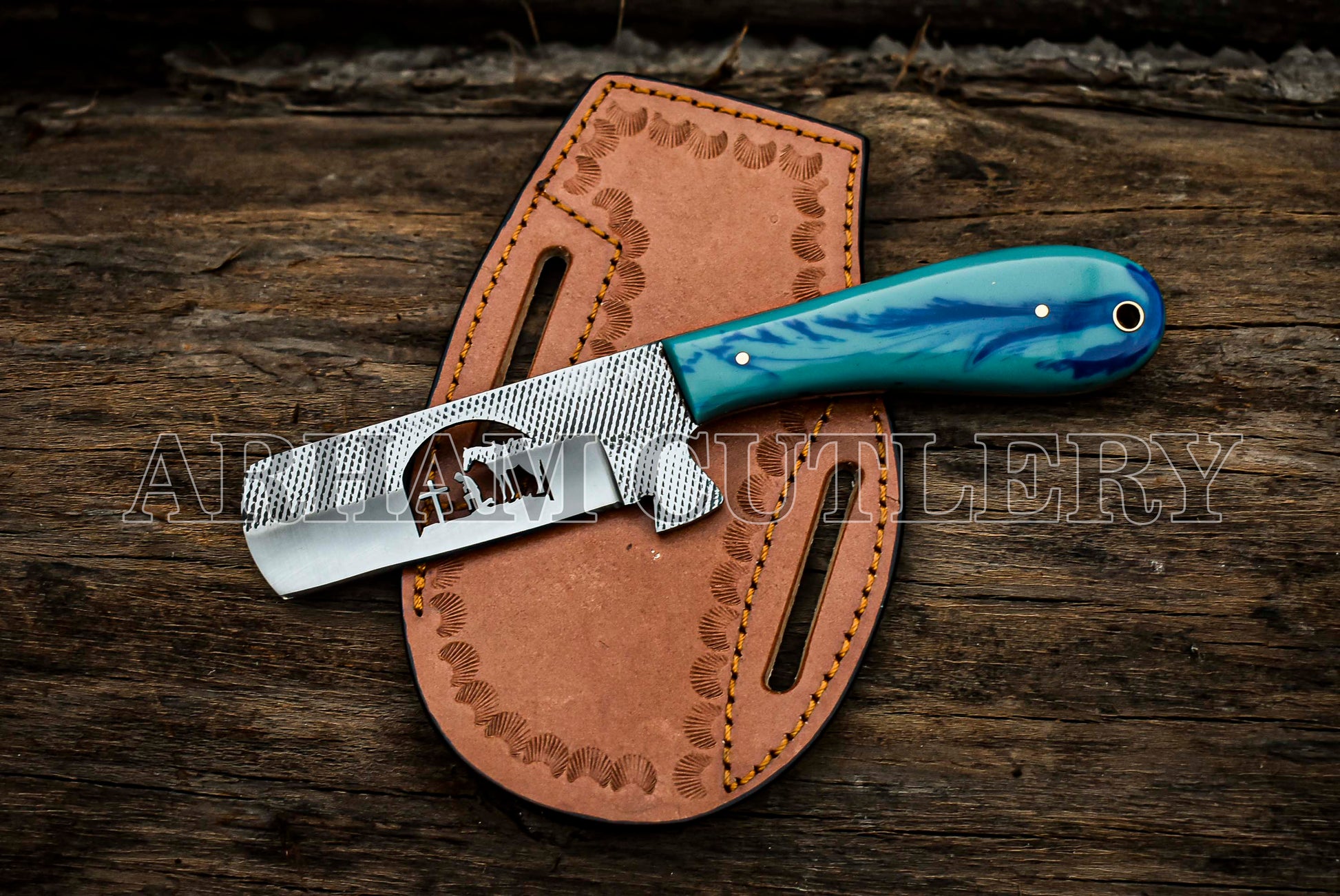 Cowboy Bull Cutter EDC Knife With Leath Sheath
