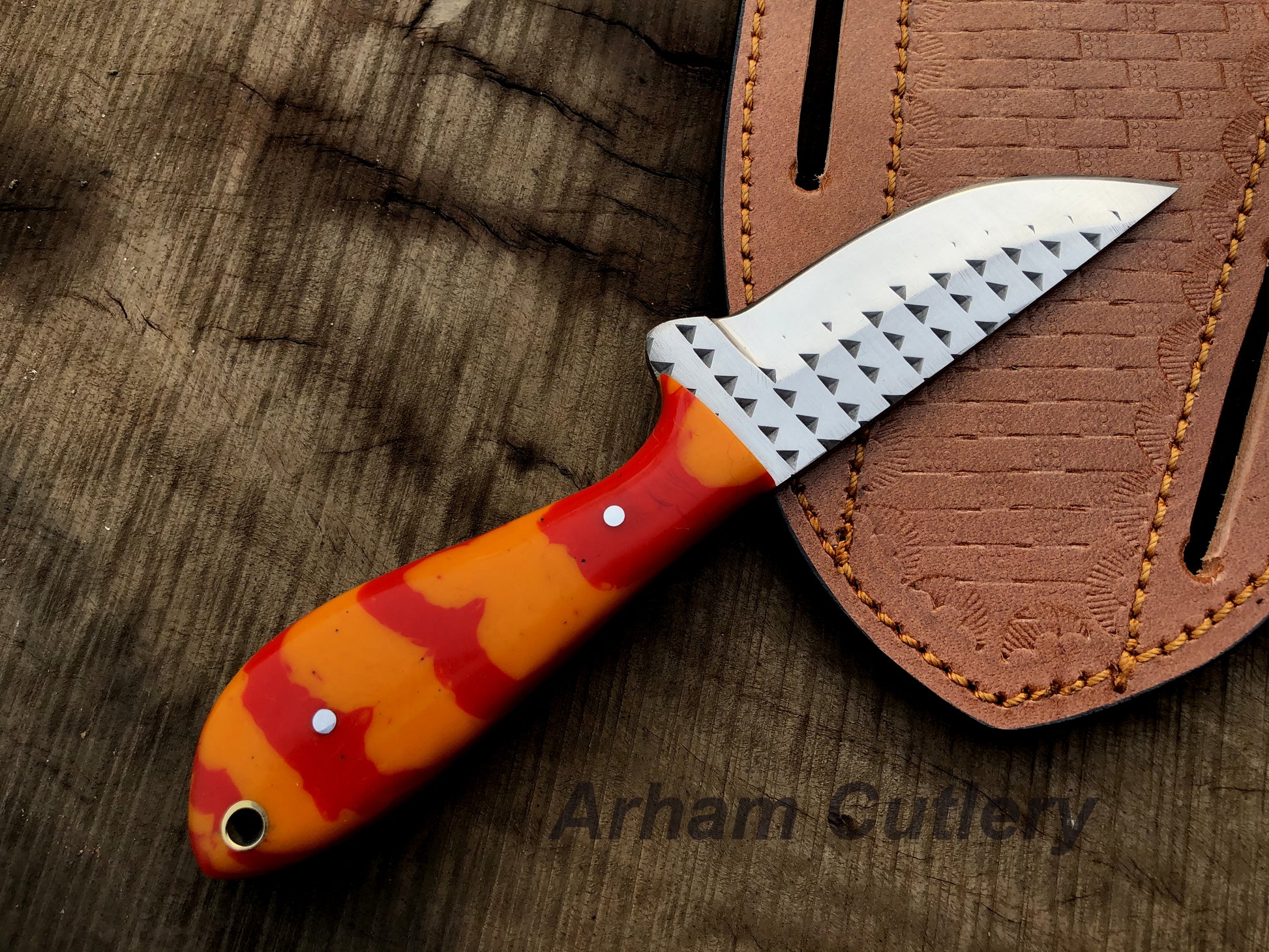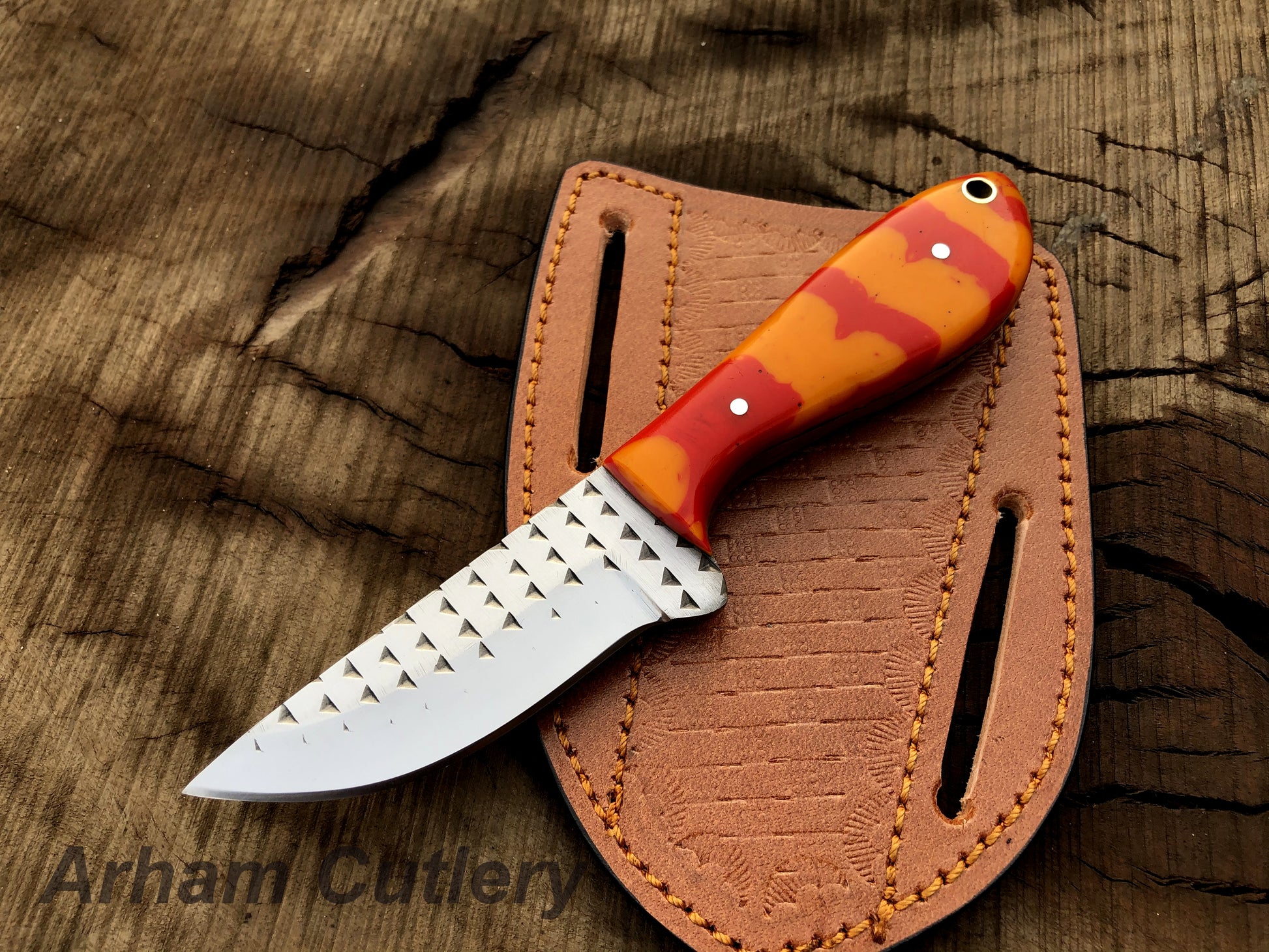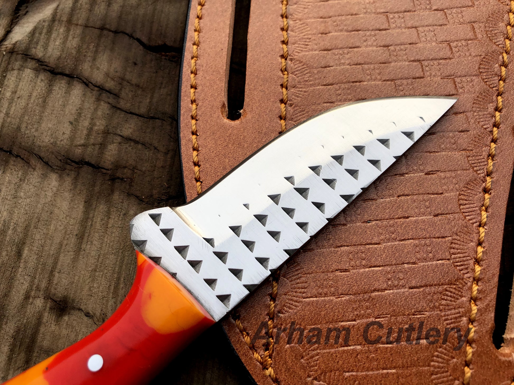 Custom Made Ferrier Rasp File Skinning Knife With Cross Draw Leather Sheath , Arham Cutlery