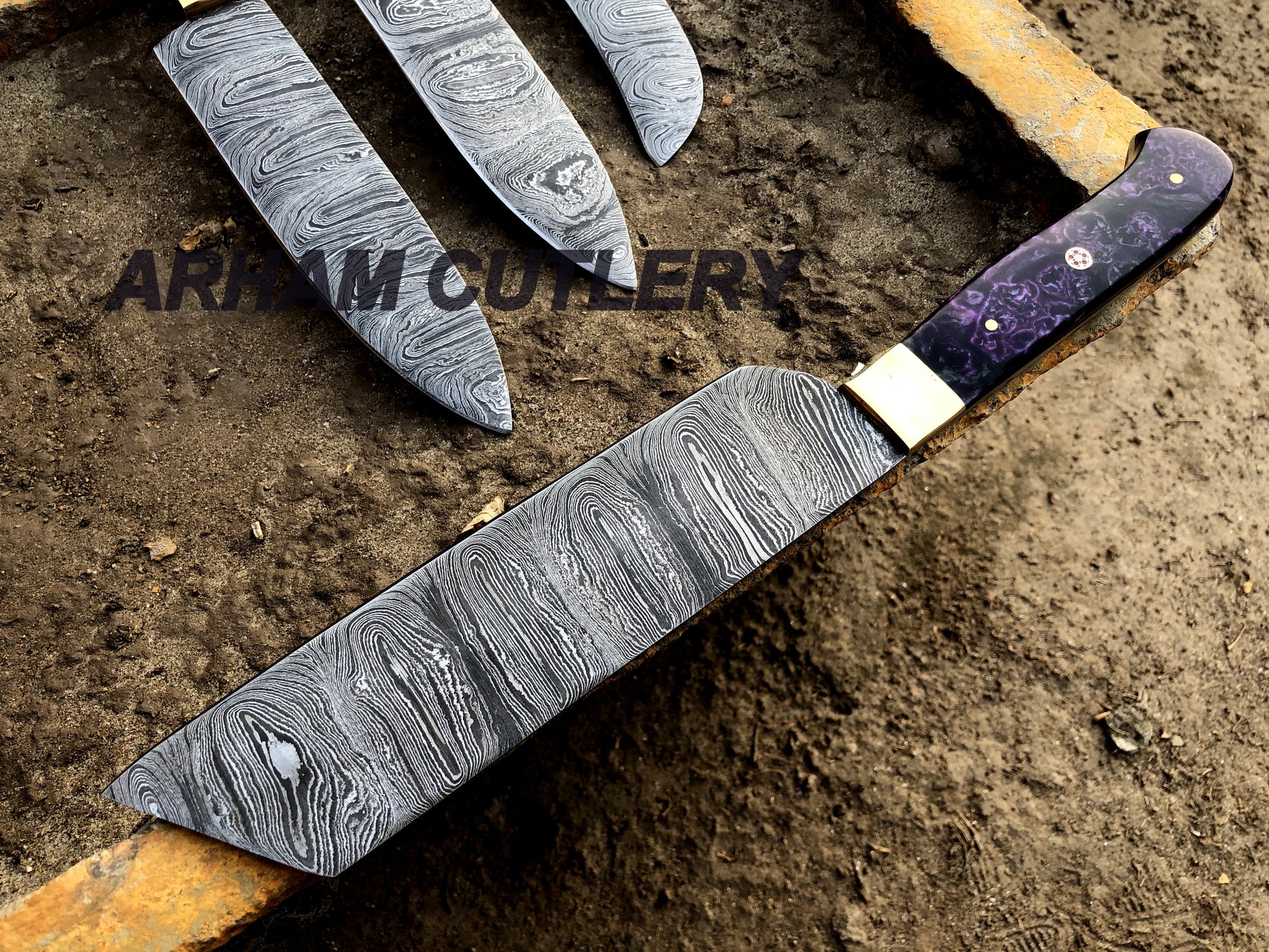 Elevate your culinary experience with our stunning handmade Damascus steel kitchen knife set. Each knife is meticulously crafted by skilled artisans, showcasing the beauty of Damascus steel's distinctive patterns and exceptional sharpness.