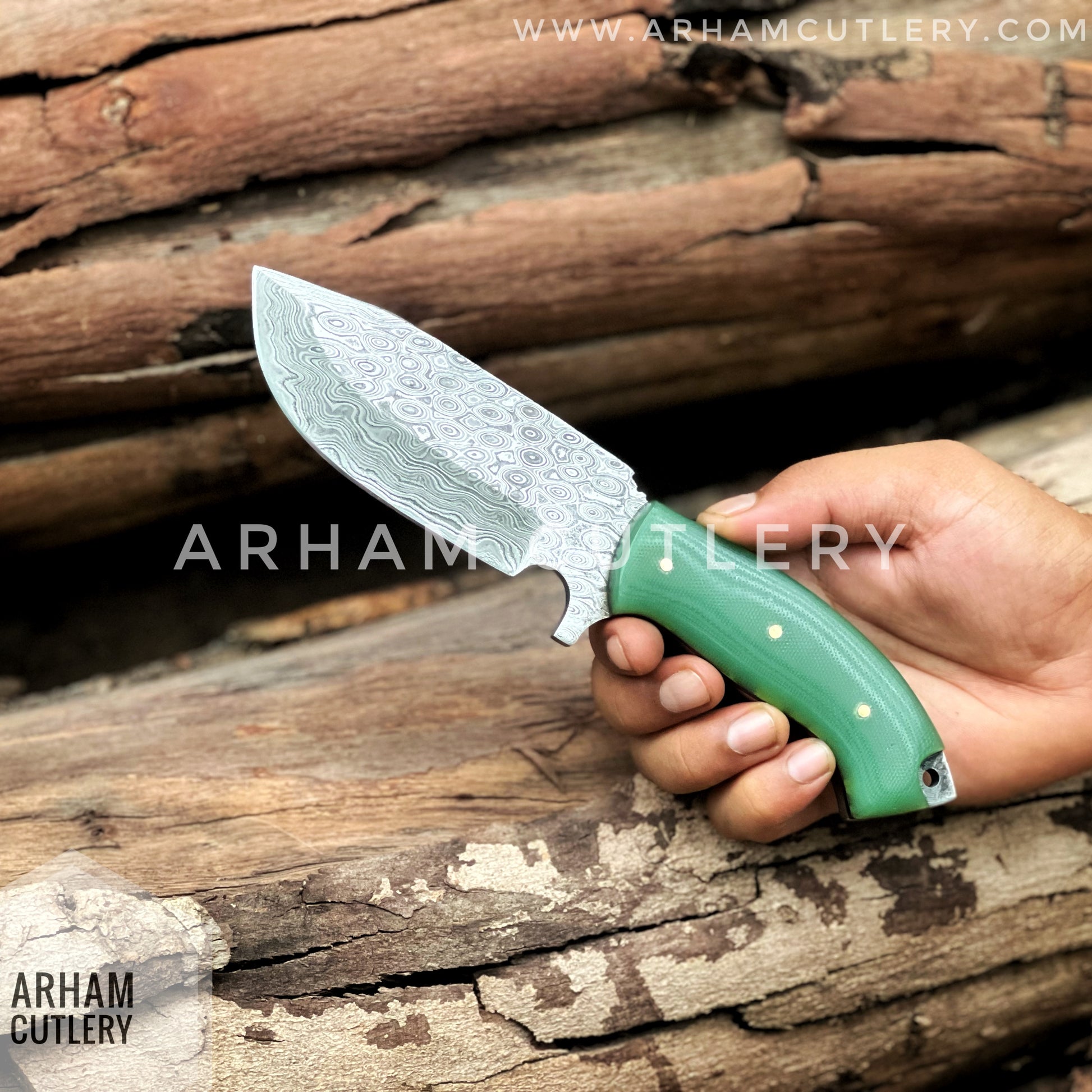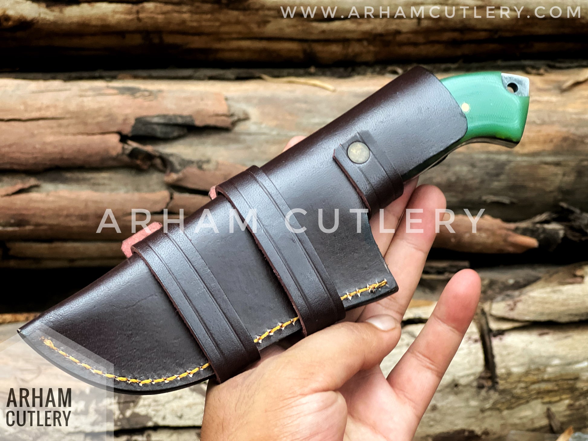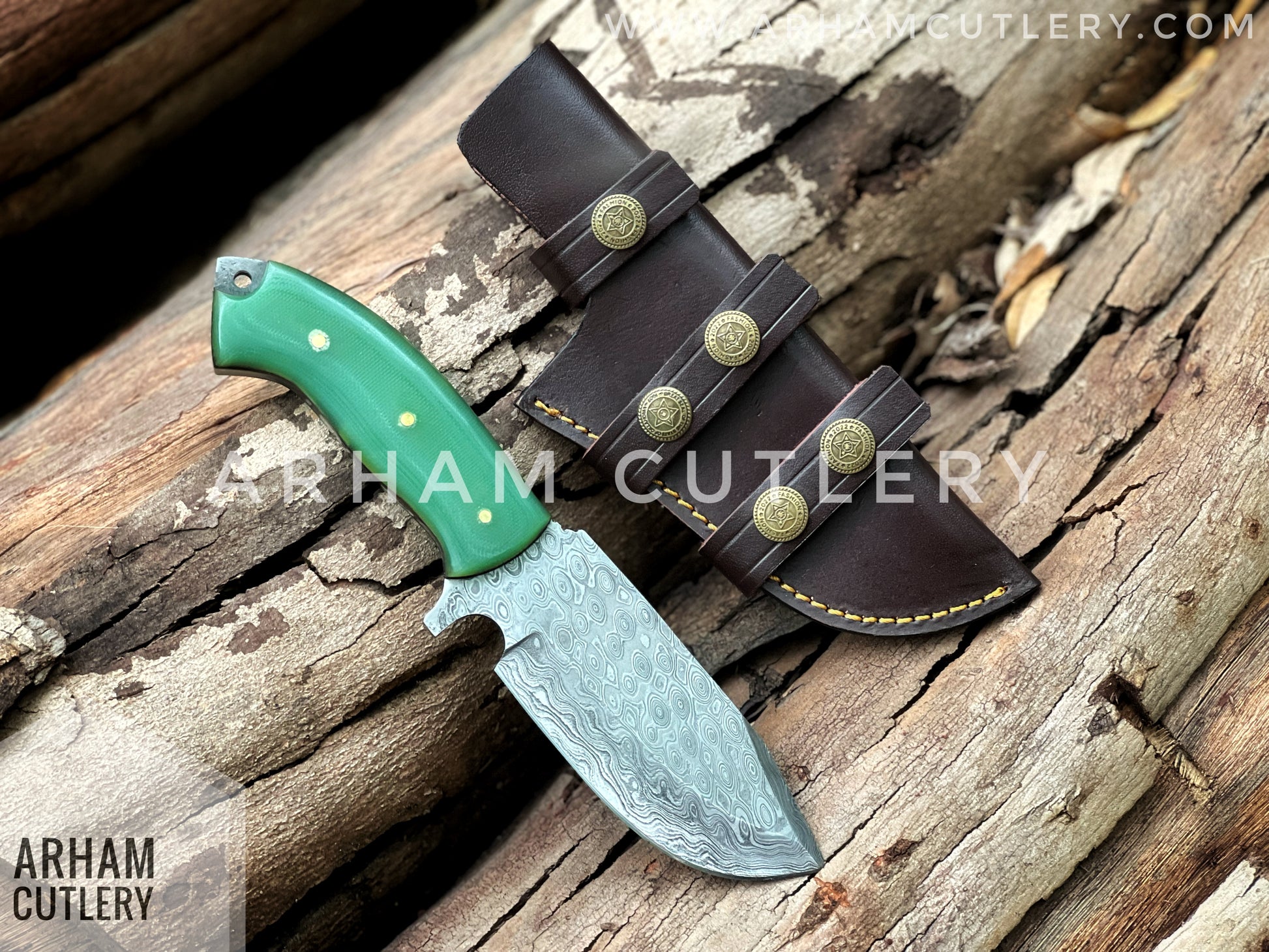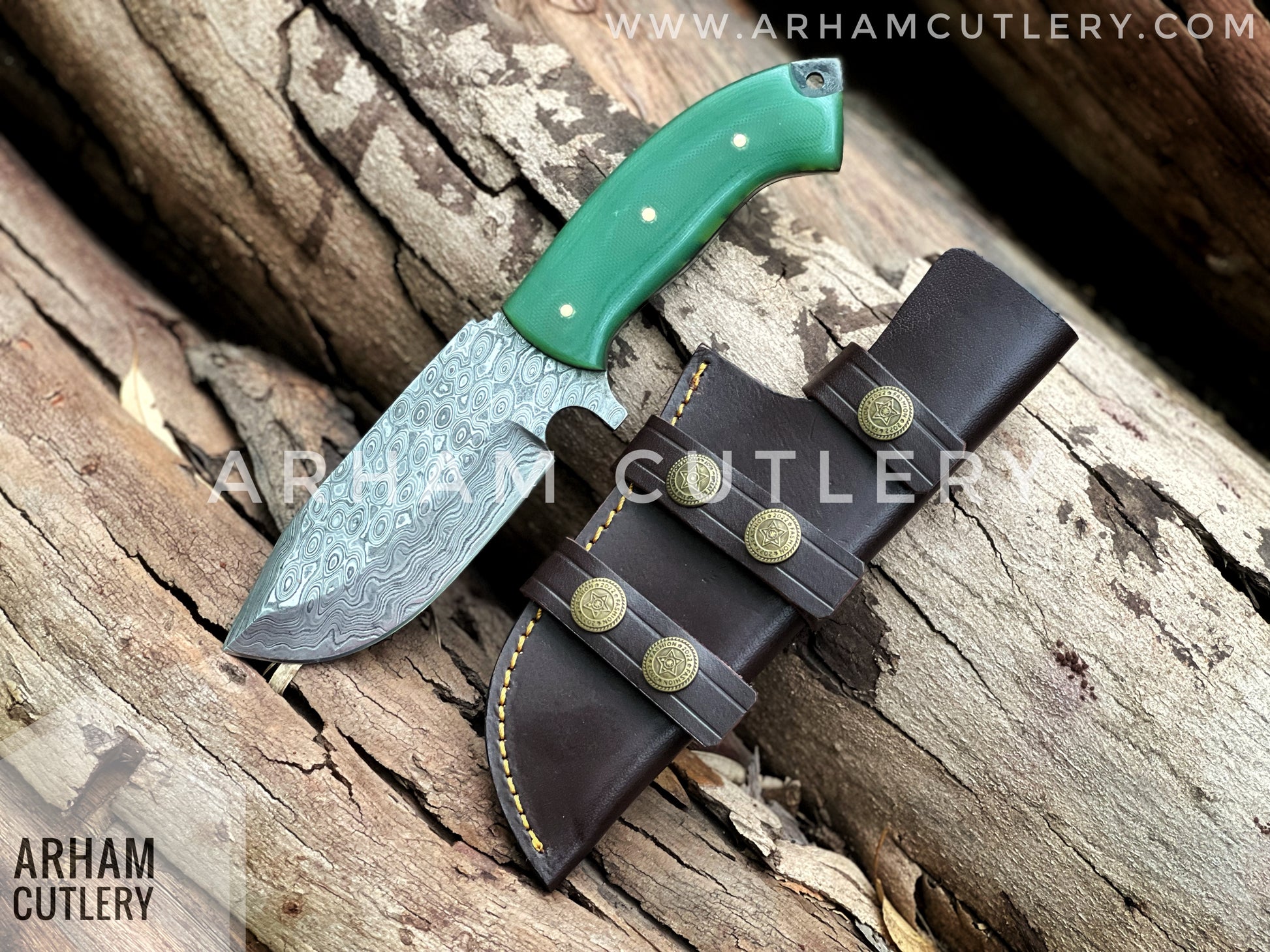 Damascus Steel Handmade Hunting Knife , Custom Hand Forged Knife With Leather Sheath , Arham Cutlery