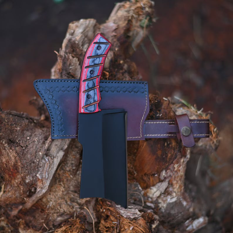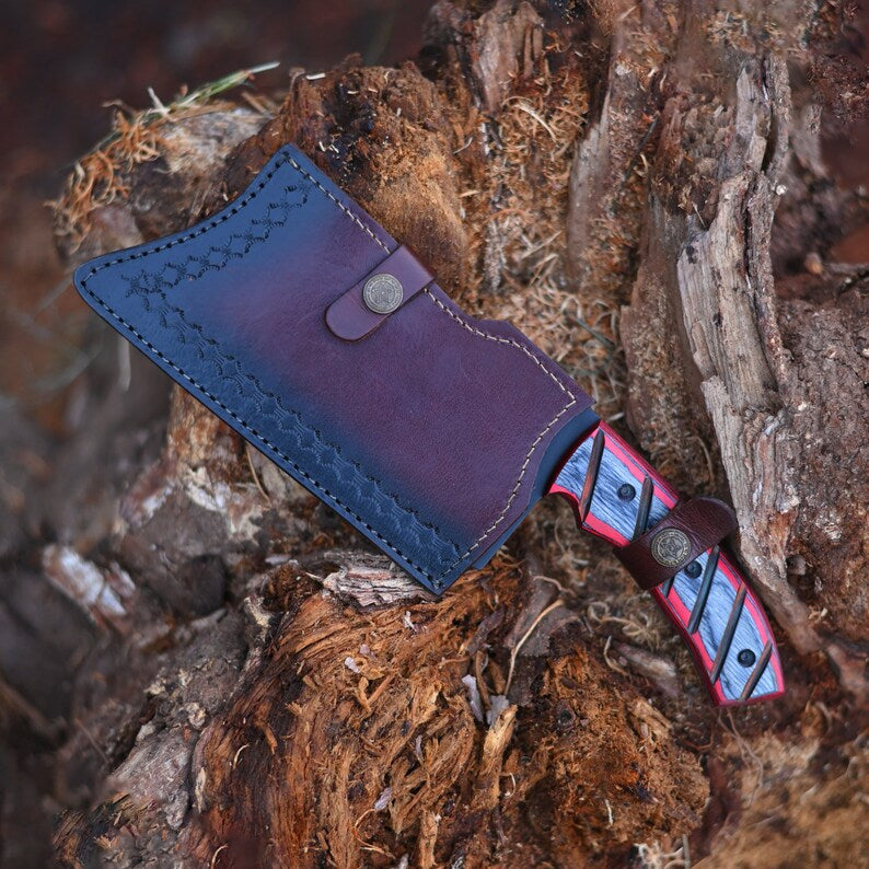 Handmade Carbon Steel Chef Cleaver | Kitchen Knife Christmas Gift Anniversary Gift for him | G10 Micarta Handle with Premium Leather Sheath | Arham Cutlery