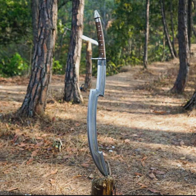 The 8-inch handle is wrapped in premium leather for comfort and a secure grip. The rich rosewood finish adds a touch of elegance, making it both visually striking and functional. Whether you're a fan of historical weaponry or simply appreciate quality craftsmanship, this Khopesh offers a unique blend of form and function.