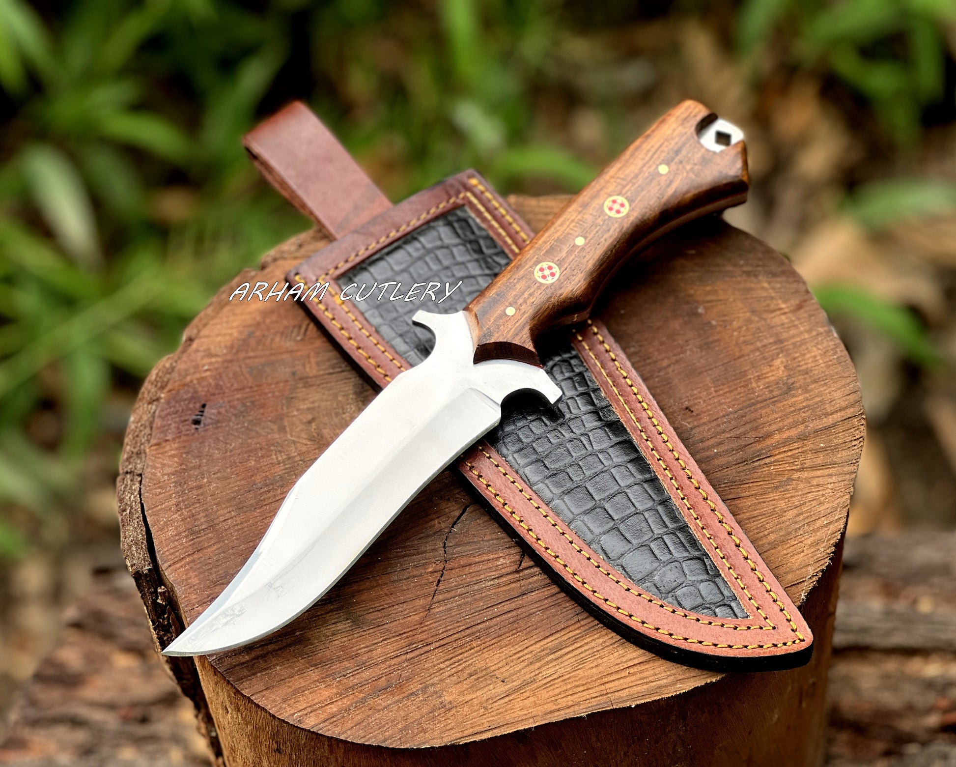 Handmade D2 Steel Hunting Knife – Rosewood Handle with Leather Sheath