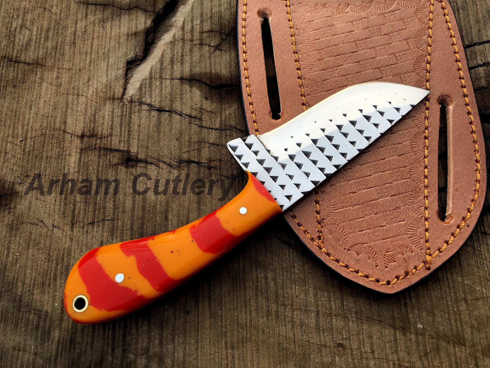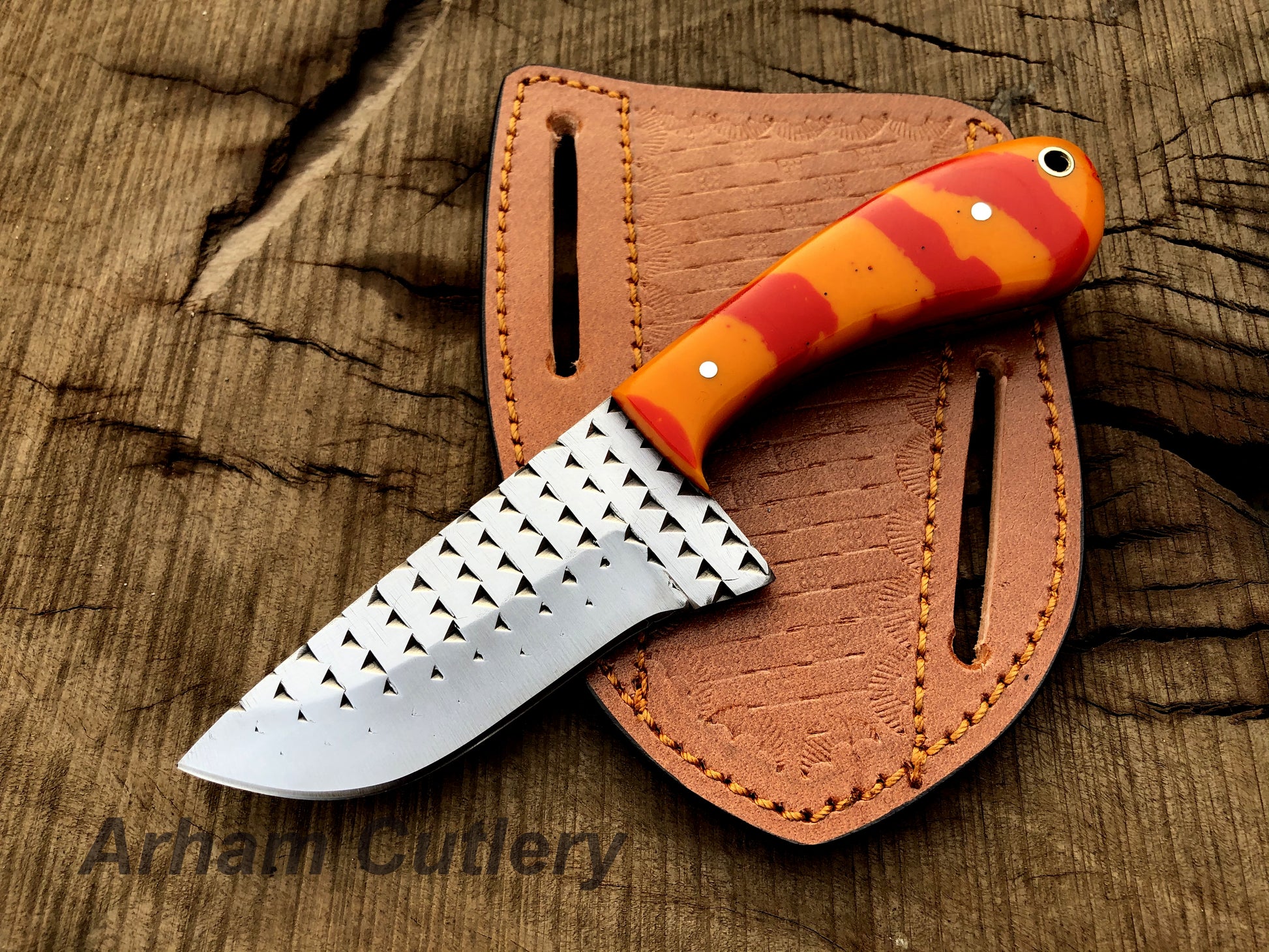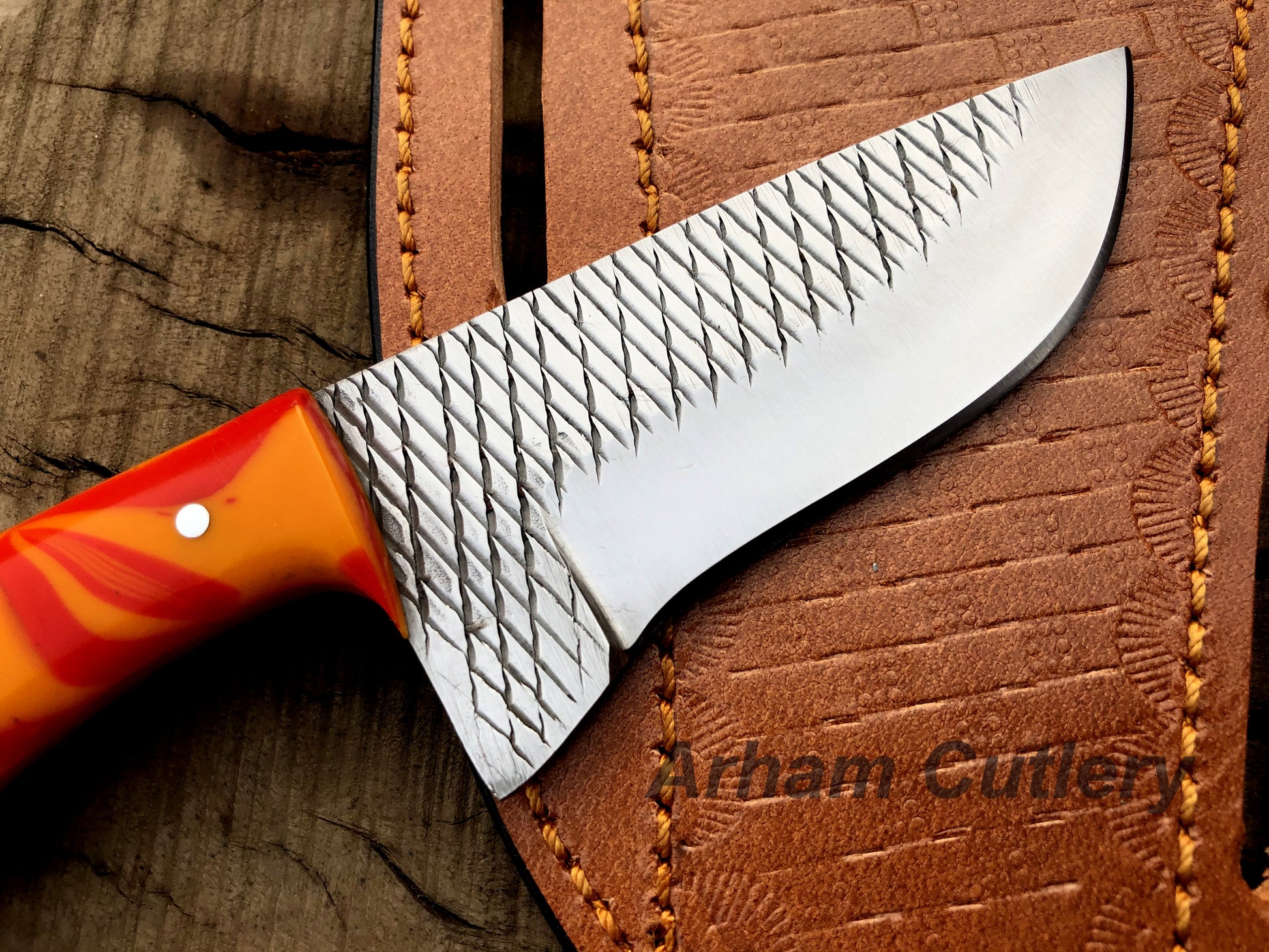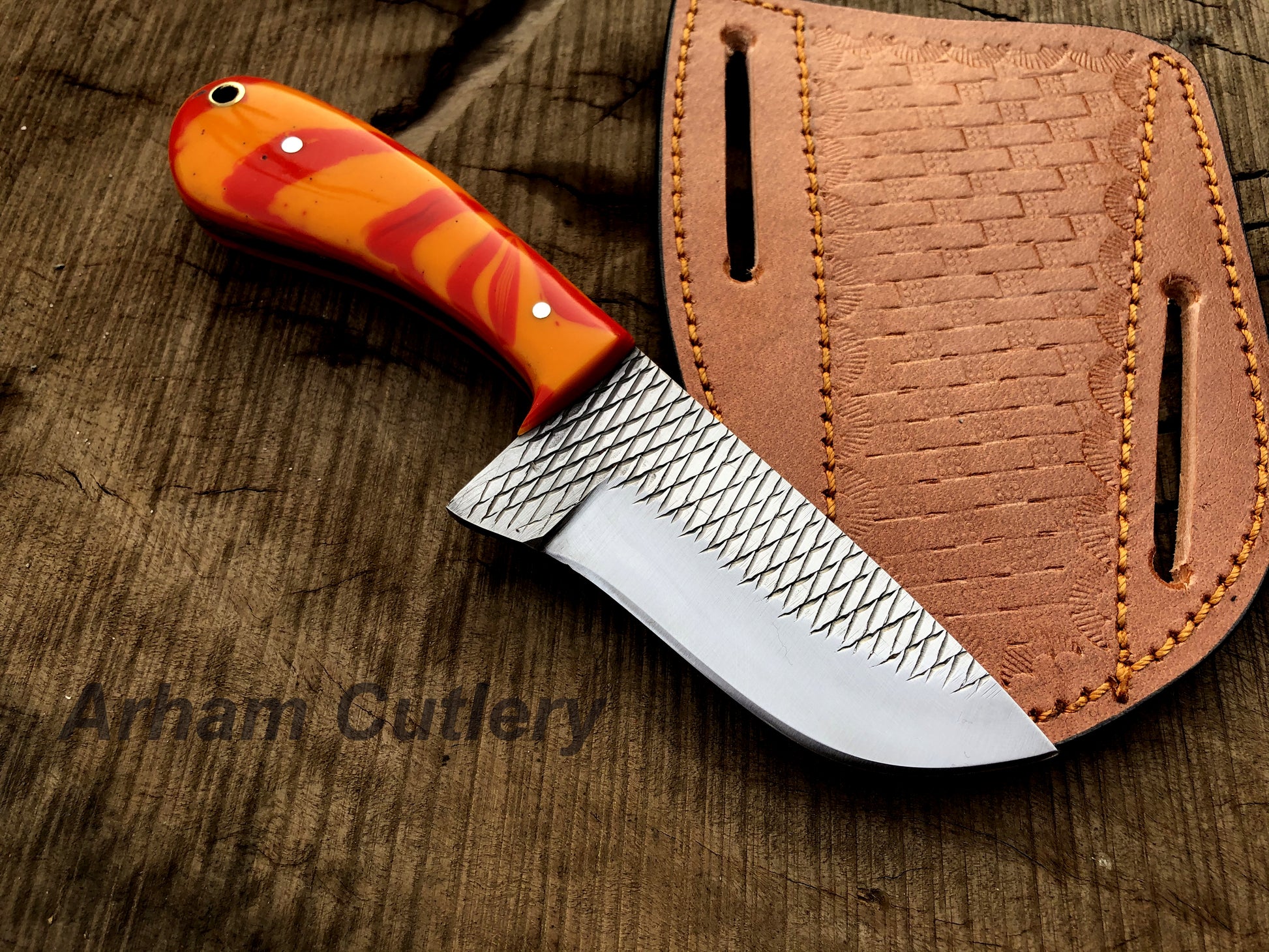 Handmade Ferrier Rasp File Skinning Knife With Cross Draw Leather Sheath , Arham Cutlery
