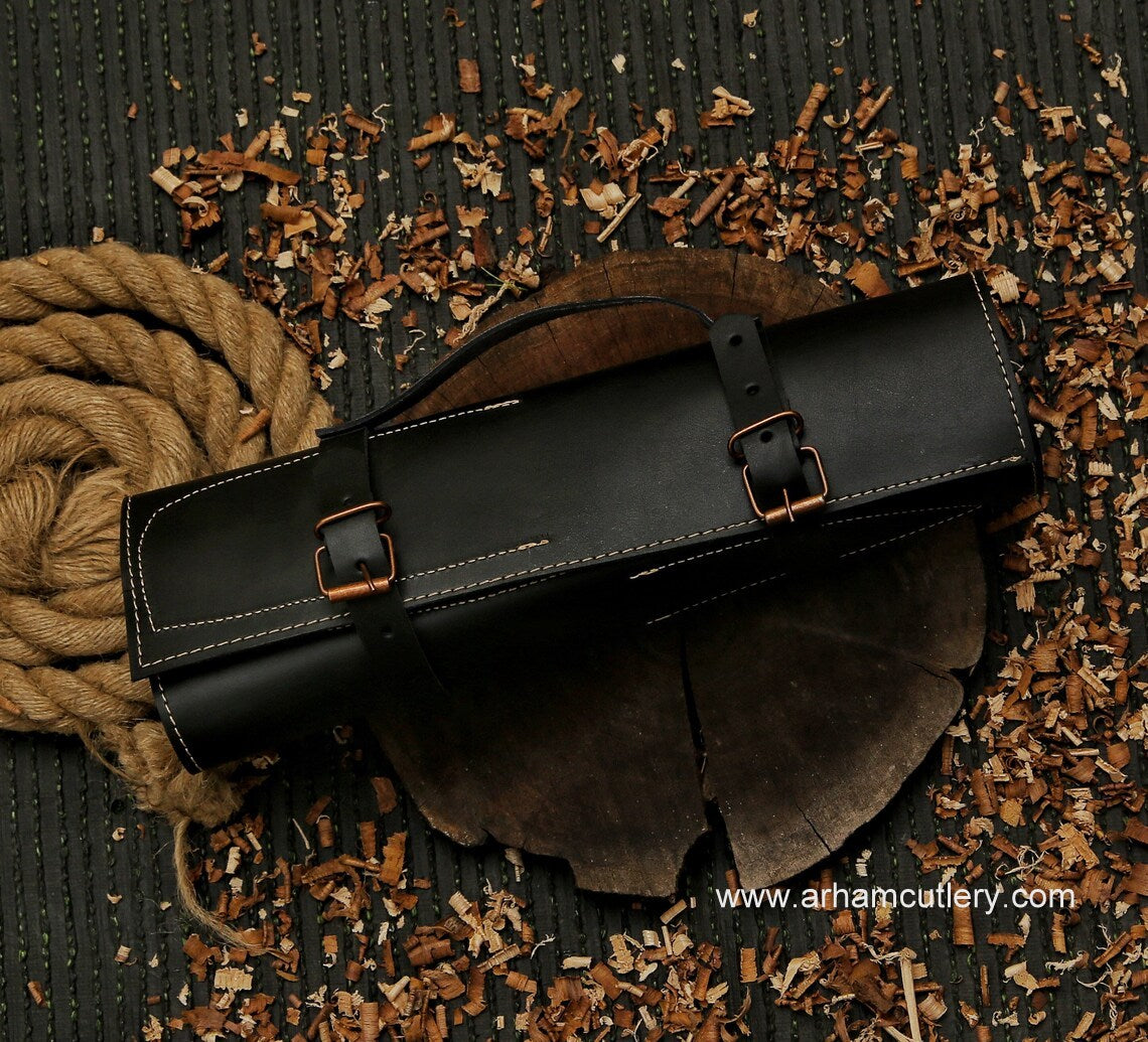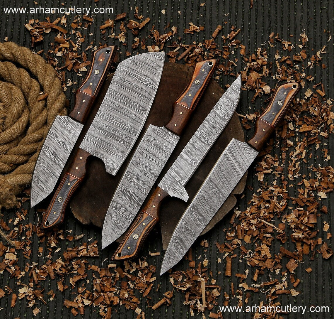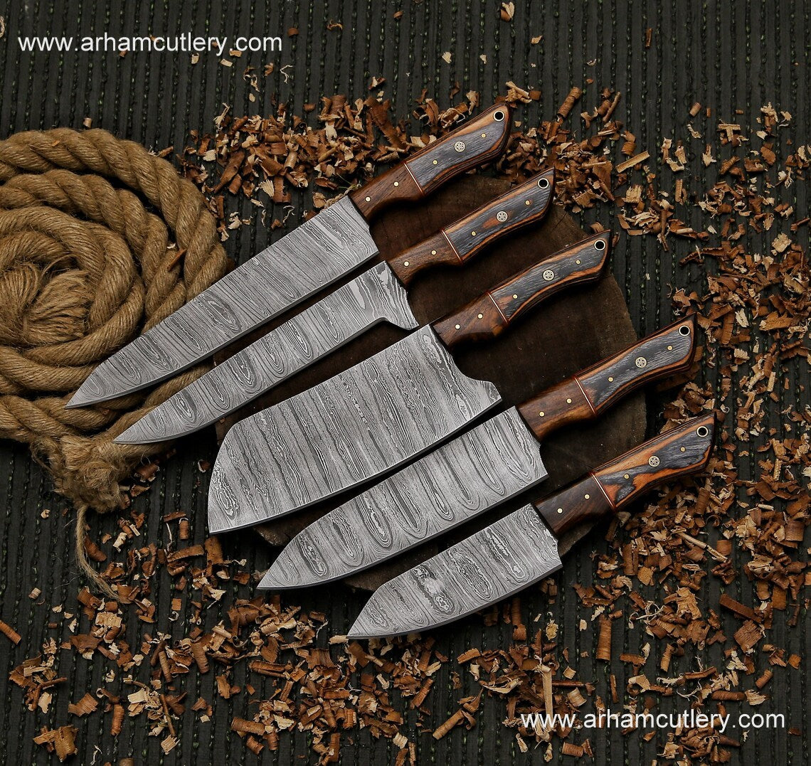 Kitchen knife handmade Damascus steel chef set gift for him ,gift for mother with leather roll kit , kitchen knife chef set gift for husband | Arham Cutlery