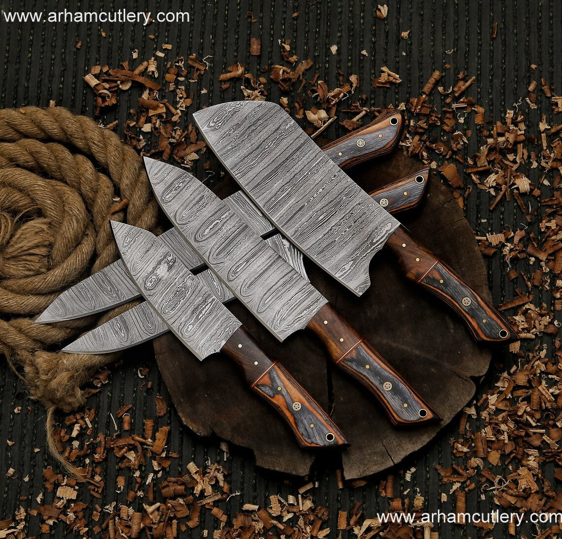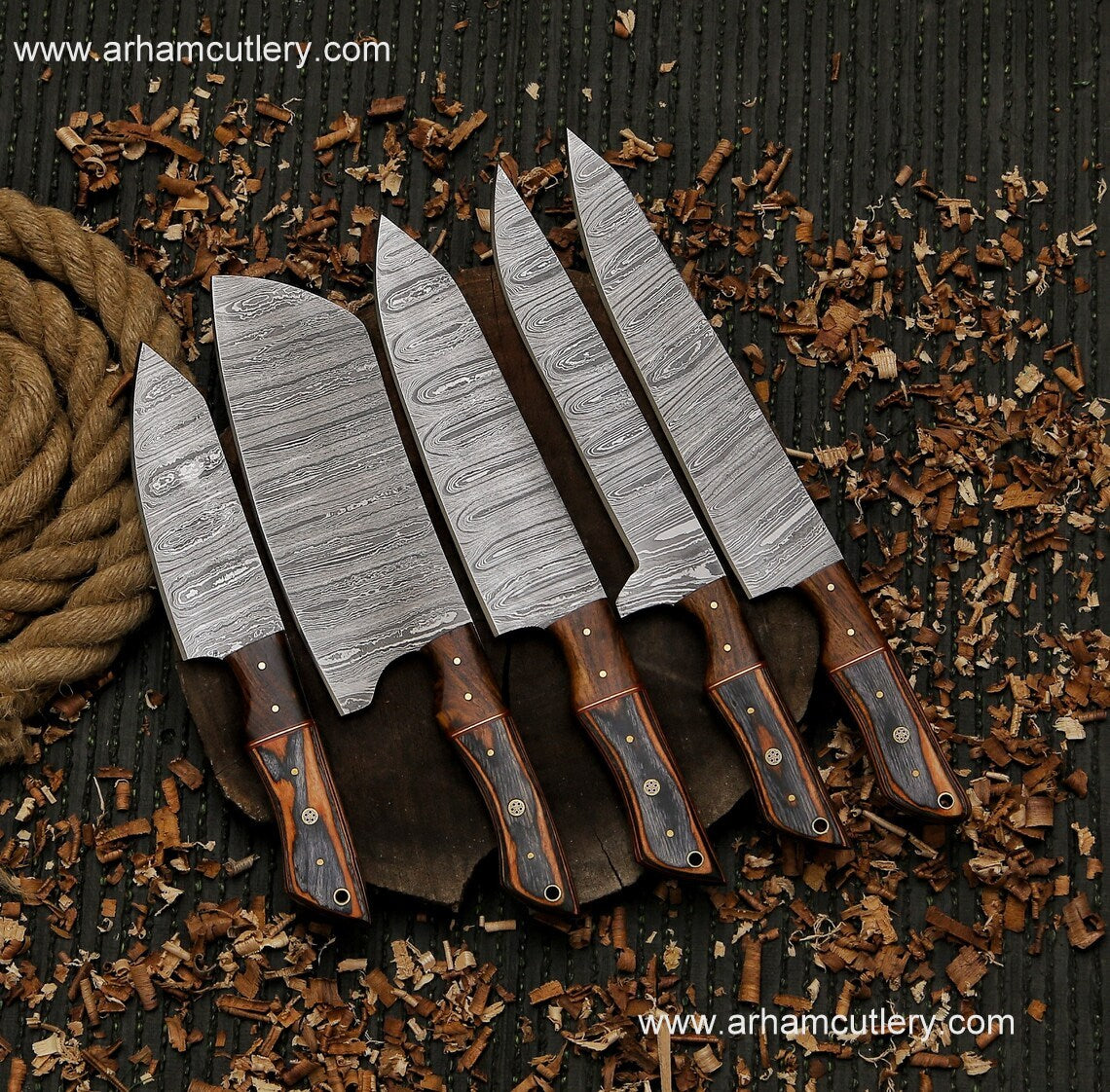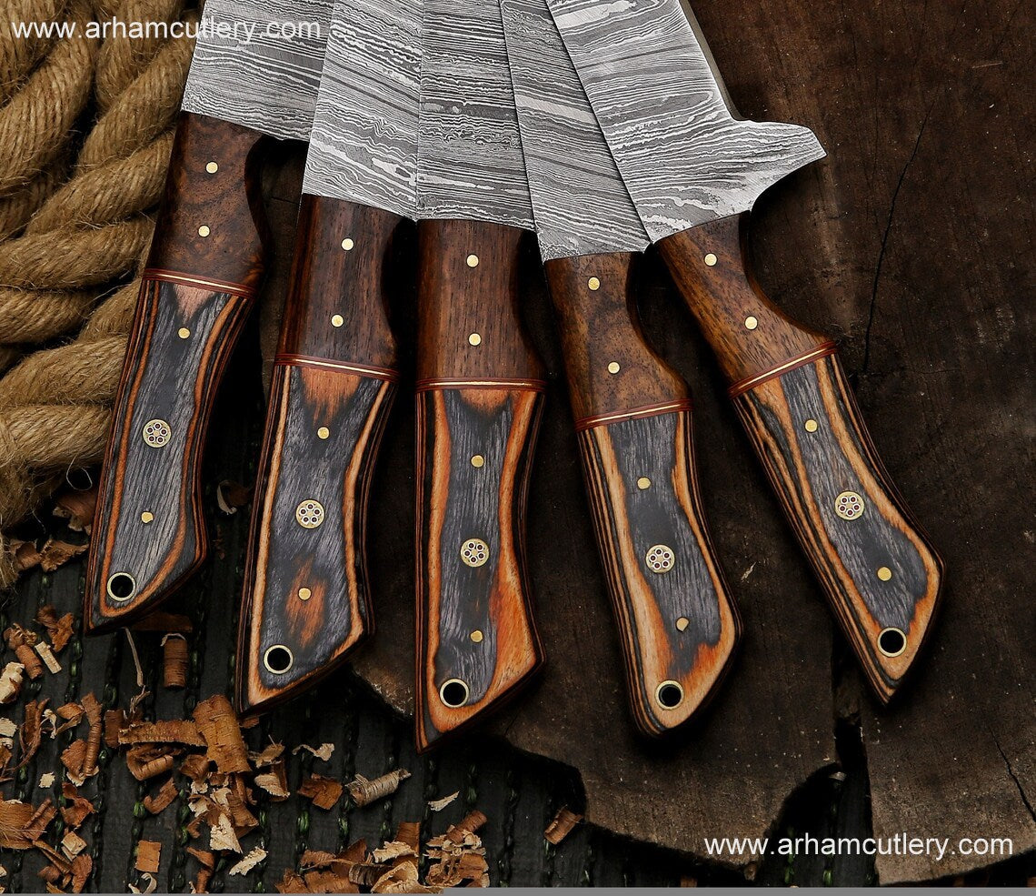 Kitchen knife handmade Damascus steel chef set gift for him ,gift for mother with leather roll kit , kitchen knife chef set gift for husband | Arham Cutlery