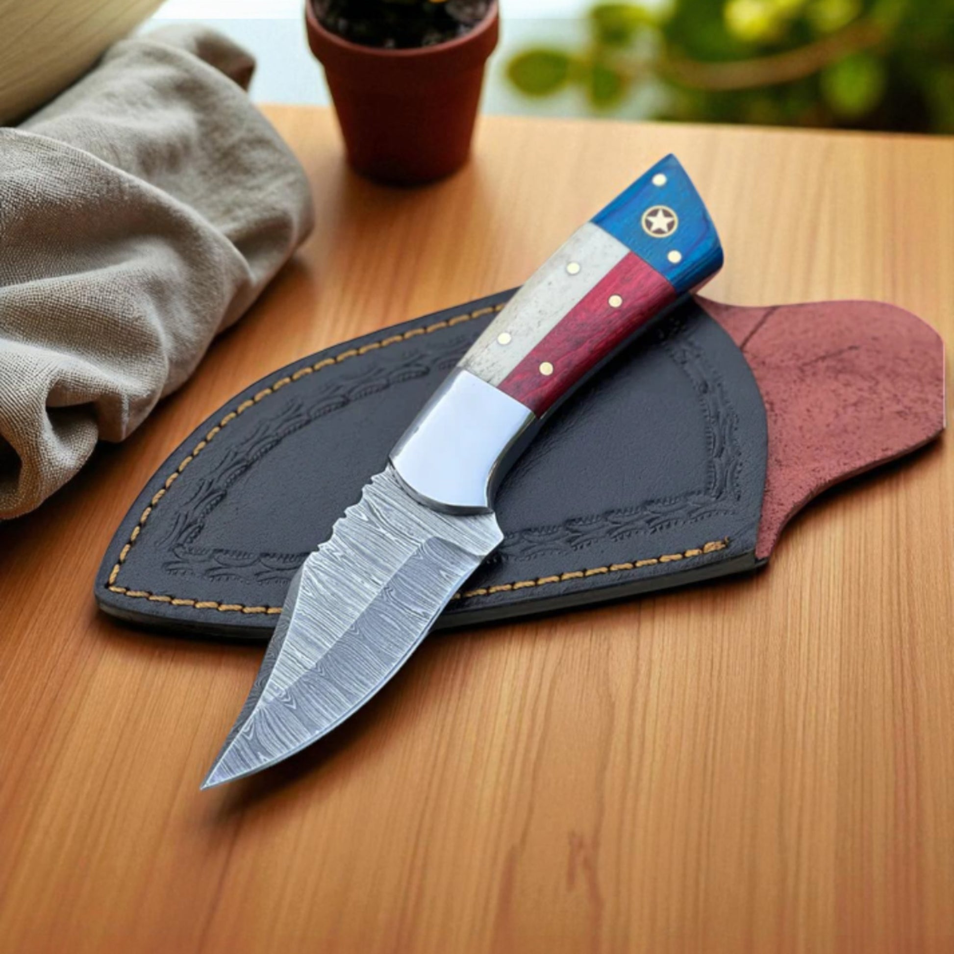 Texas Flag Damascus Steel Knife – Bold, Patriotic, Handmade