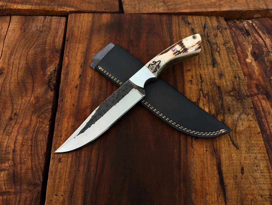 The Wildfang – Handmade Hunting Knife with Stag Antler Handle | 12C27 Acid Etched Steel