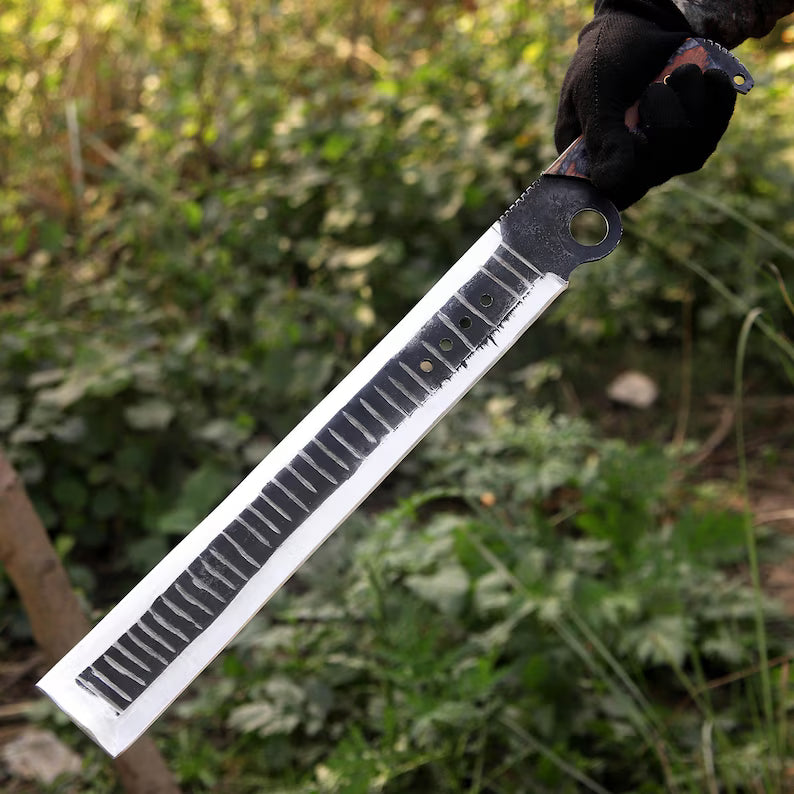 This handmade J2 steel machete from Arham Cutlery is a rugged, compact powerhouse made for bushcraft, outdoor work, and blade collectors who value raw craftsmanship. Every machete is individually crafted, giving it a bold personality and authentic handmade character.