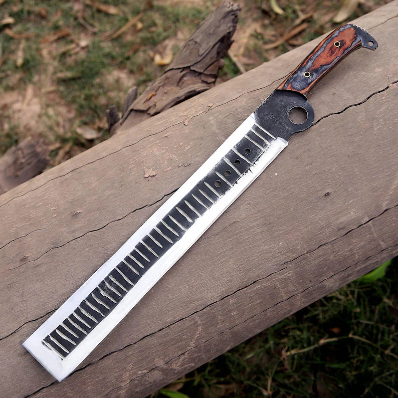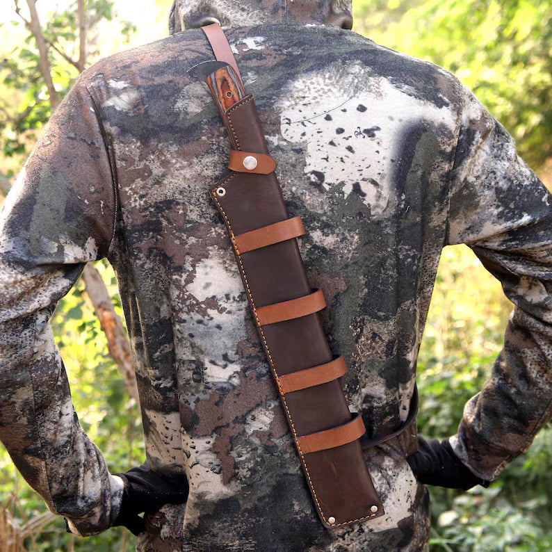 Arham Cutlery Handmade J2 Steel Bushcraft Machete – 21” Full Tang Blade with Hardwood Handle & Leather Sheath