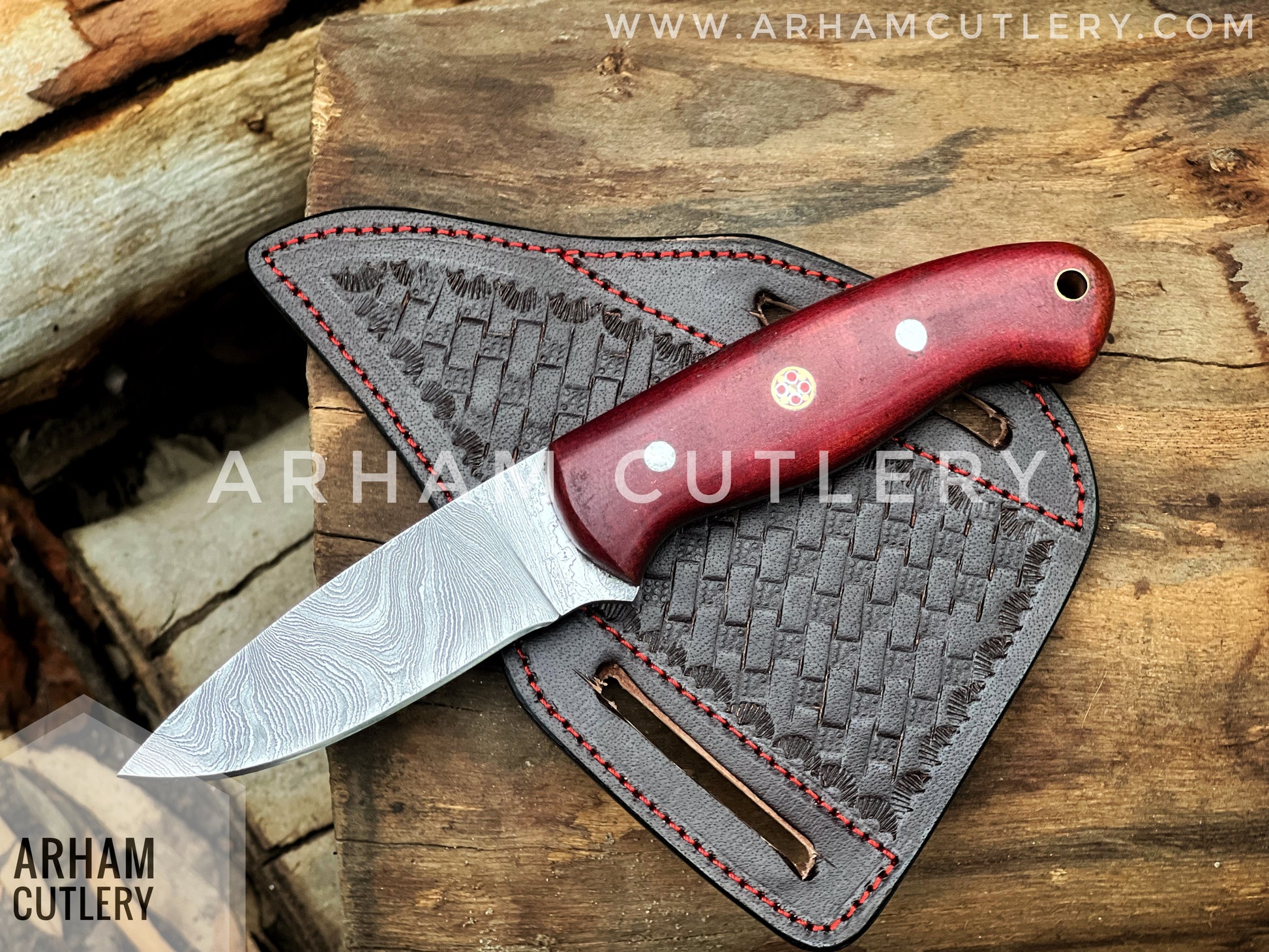 Aurora Handmade Damascus Steel EDC Knife with Leather Sheath Hand Forged ,Arham Cutlery