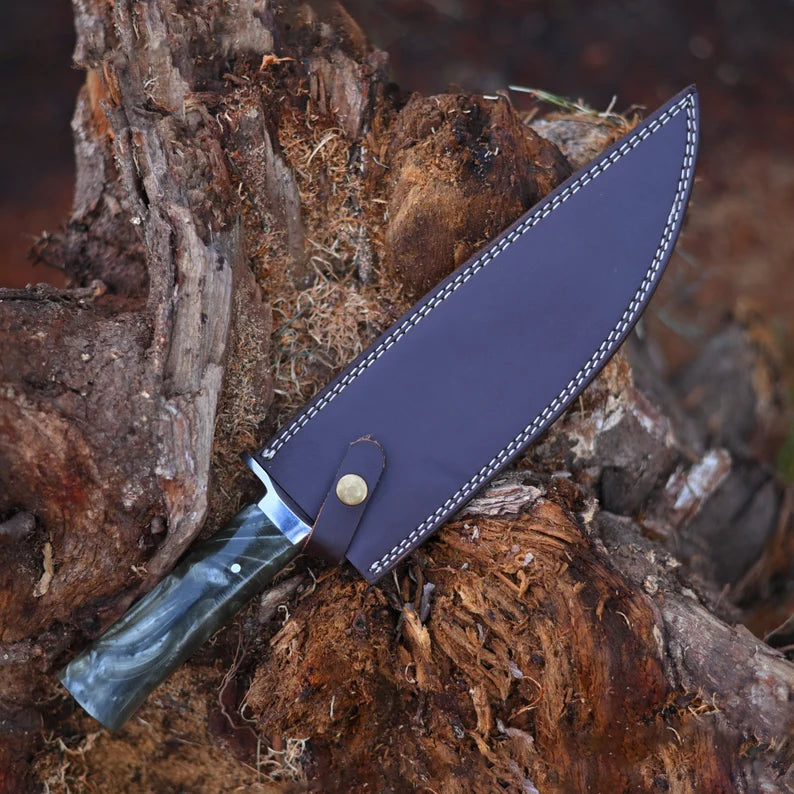 Handmade Stainless Steel Kitchen Knife With Resin Handle And Leather Sheath | Arham Cutlery