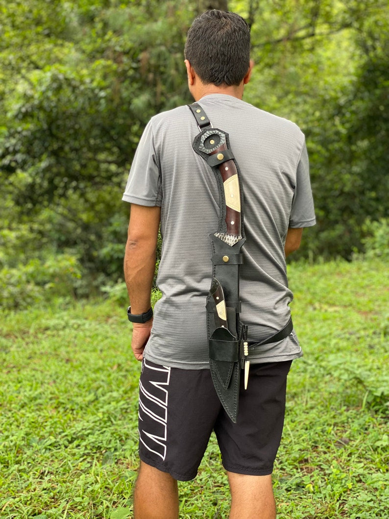 This Bowie Knife has the ideal blend of heaviness and portability, It is a beautiful work of art, but its strong build and razor-sharp blade also make it useful for hunting and other outdoor pursuits. The knife is both more secure in its scabbard and more attractive to look at because of the cotton wood that covers it.