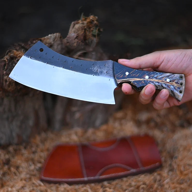 This handmade kitchen cleaver is the perfect tool for any chef. It is made from high-quality steel and is hand-forged to ensure a sharp, durable blade. The cleaver is also versatile and can be used for a variety of tasks, including chopping meat, vegetables, and bones. It is also dishwasher safe for easy cleanup.