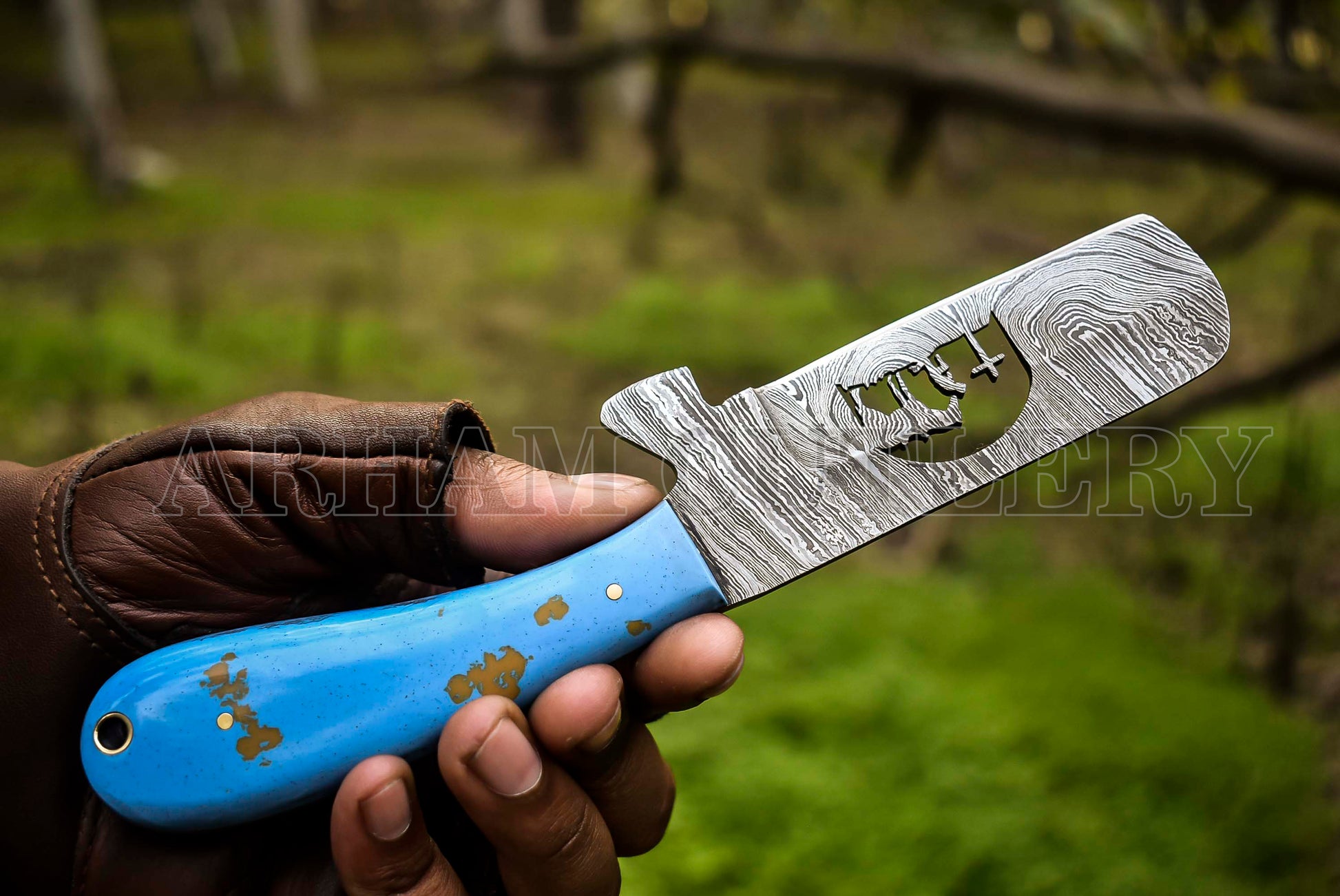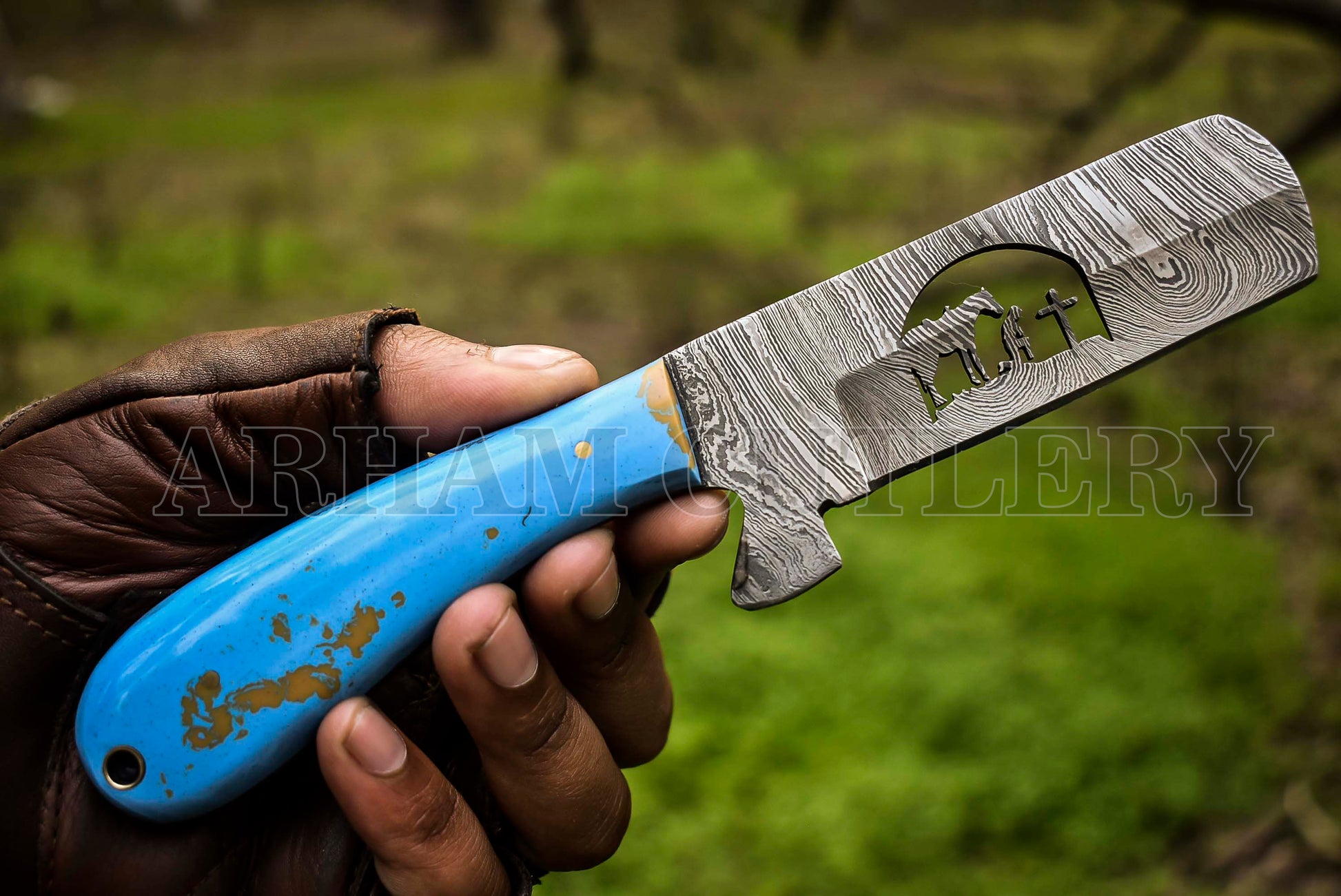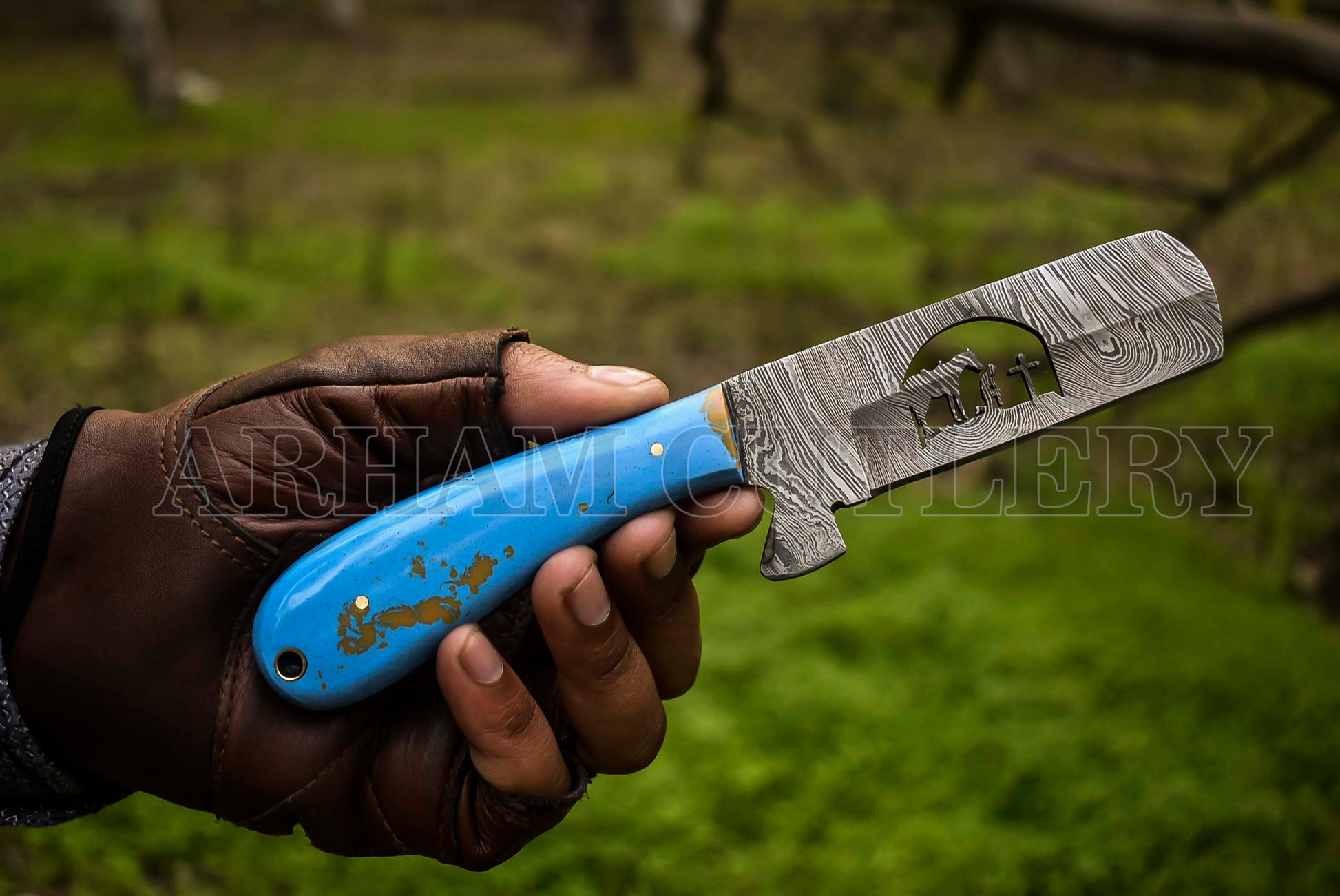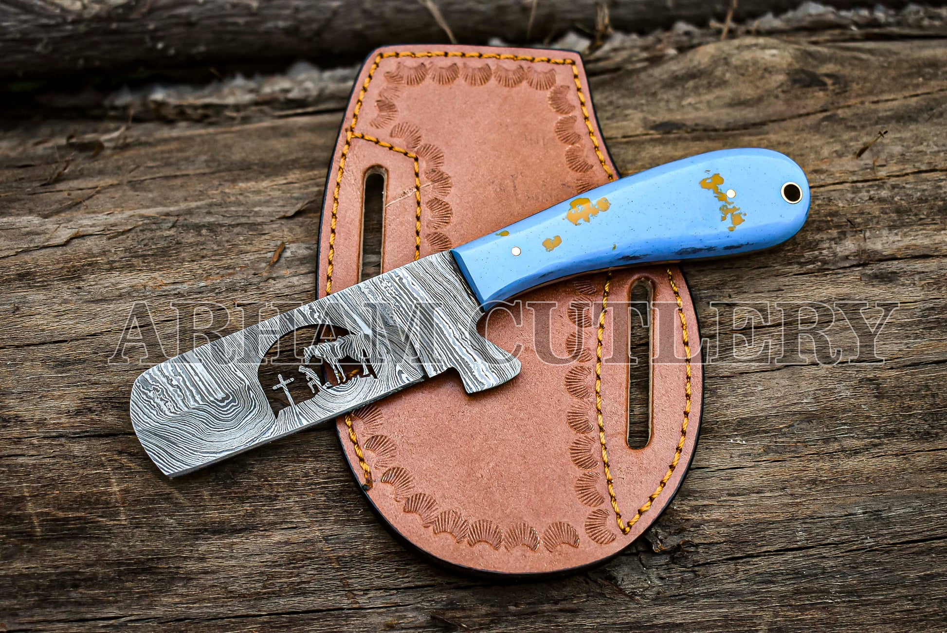 Cow Boy Knife Bull Cutter Knife EDC Praying Cowboy Knife Damascus Steel