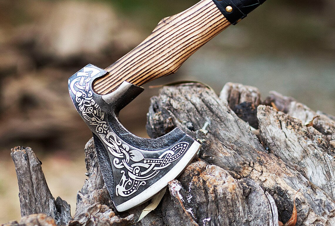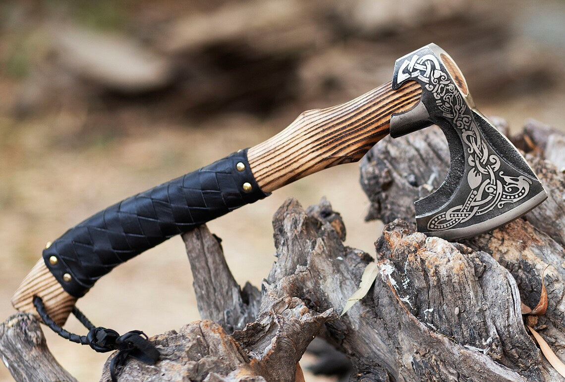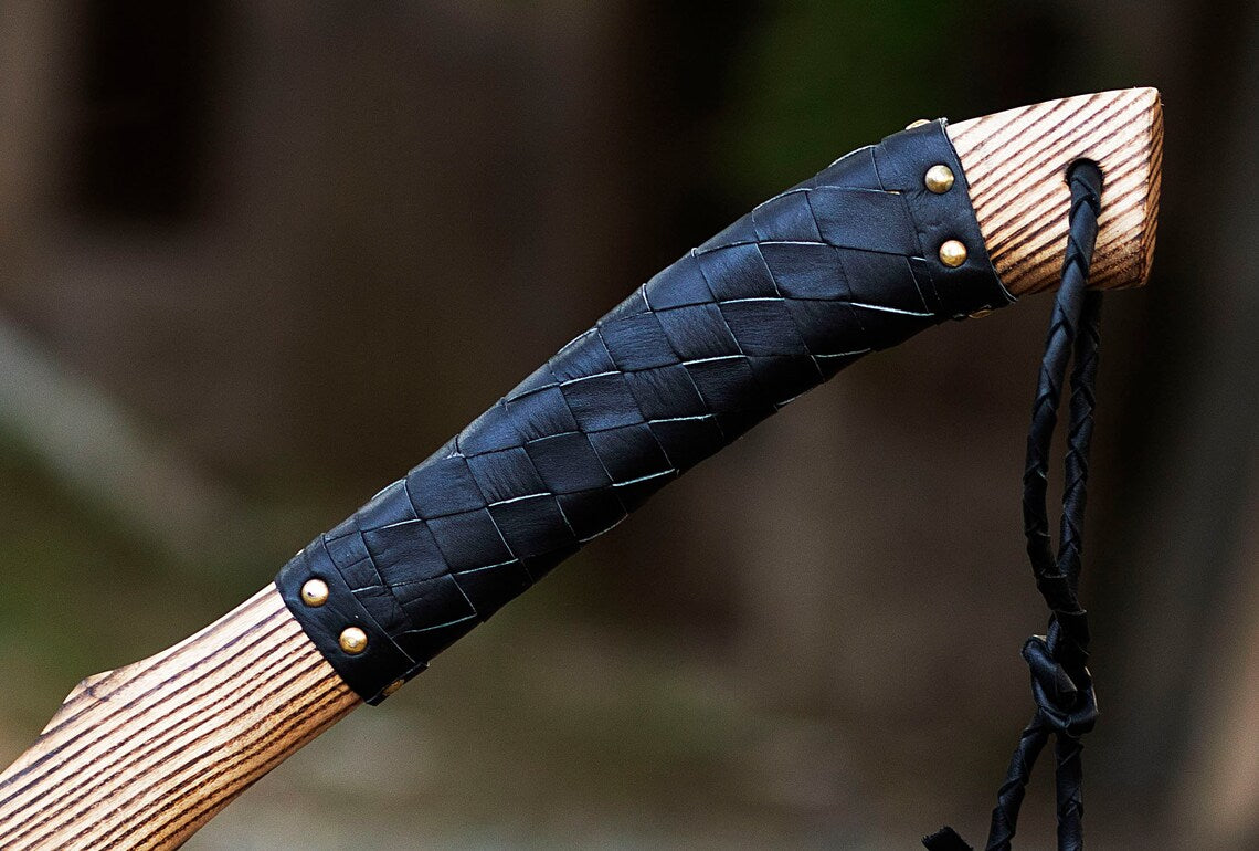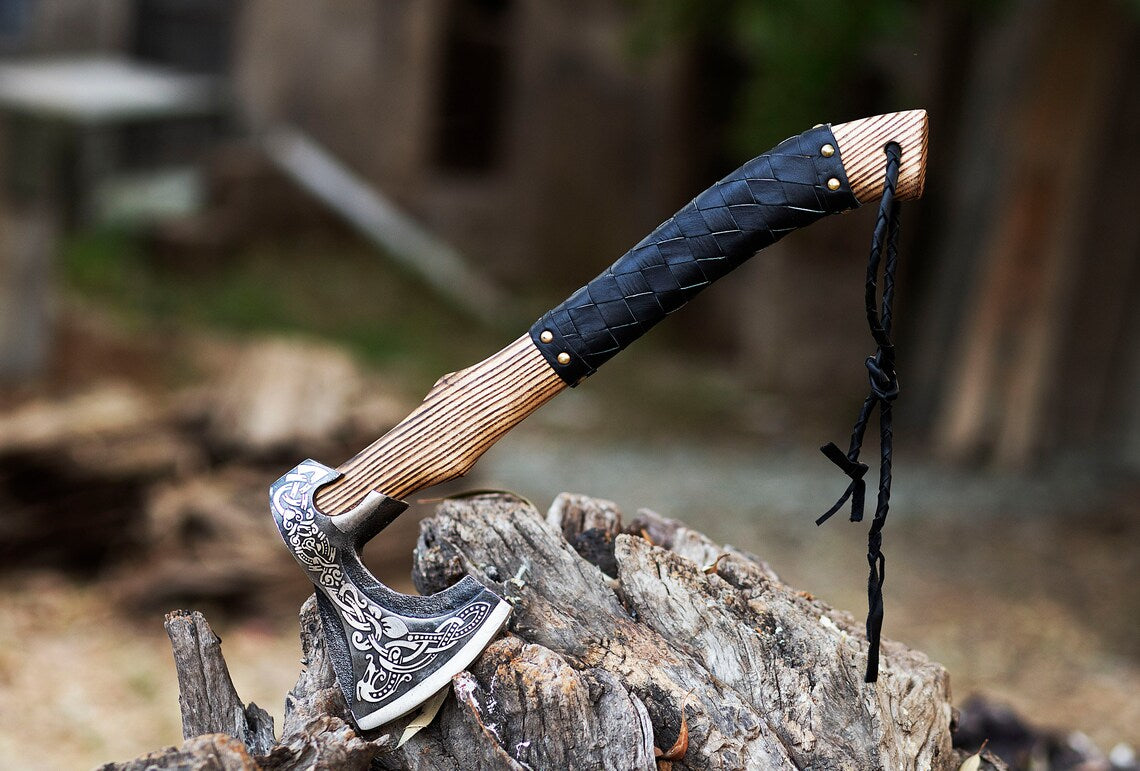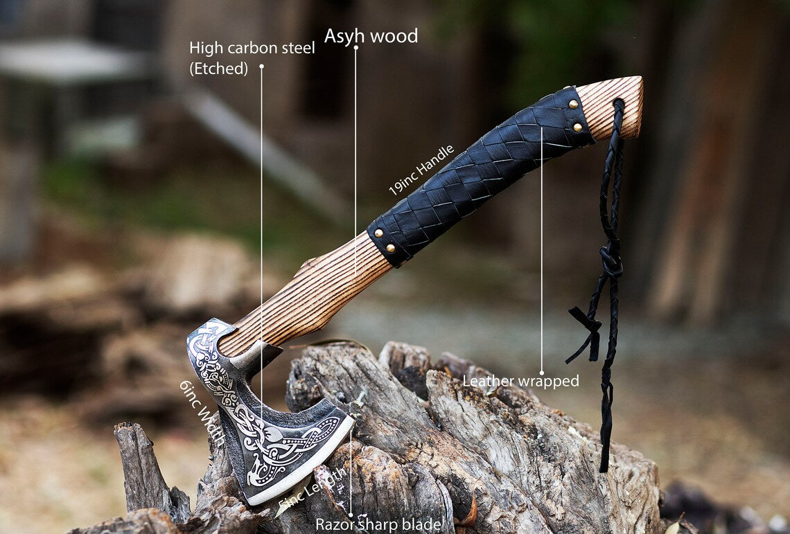Custom Handforged Carbon Steel Viking Axe Ash Wood Shaft With Leather Sheath , Arham Cutlery