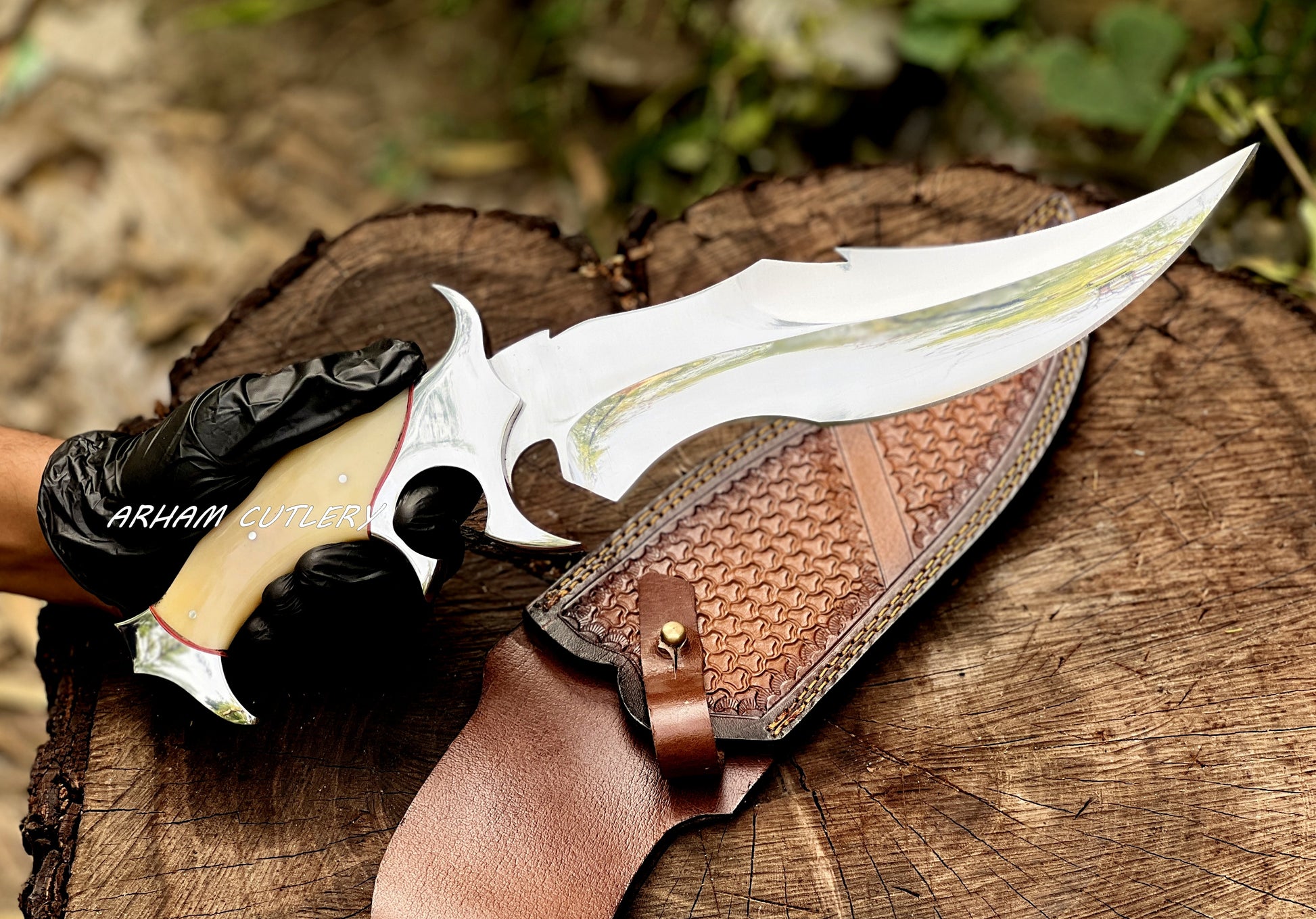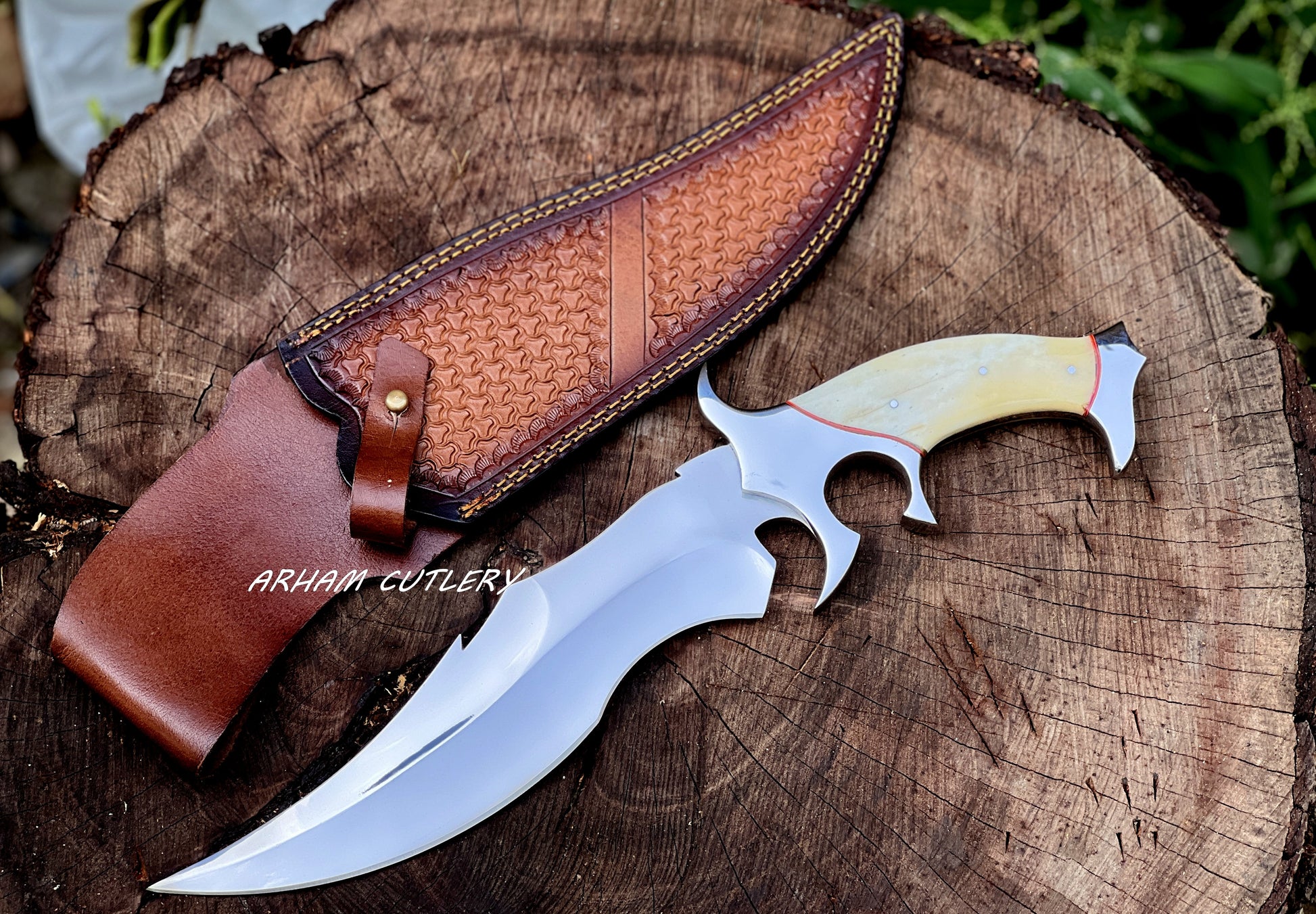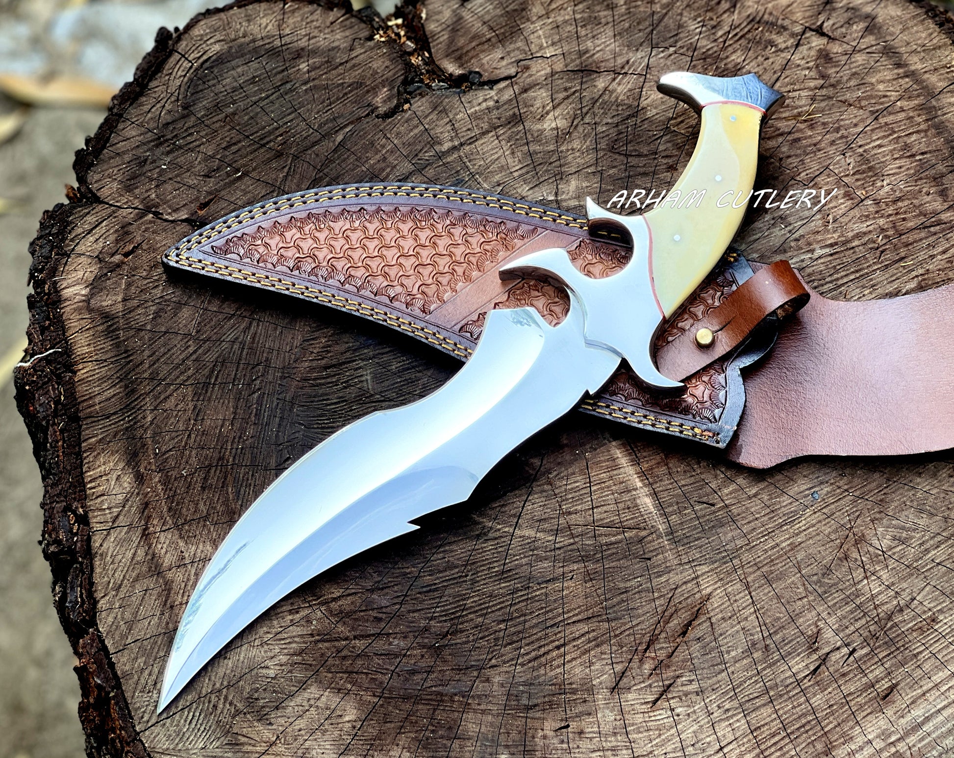 This handmade D2 steel hunting knife is crafted with precision and care, making it the perfect tool for hunters, campers, and collectors. The razor-sharp D2 steel blade ensures excellent edge retention and durability, while the natural camel bone handle provides a comfortable grip and a unique, timeless look.