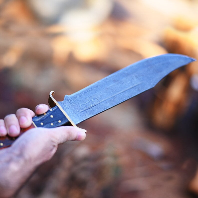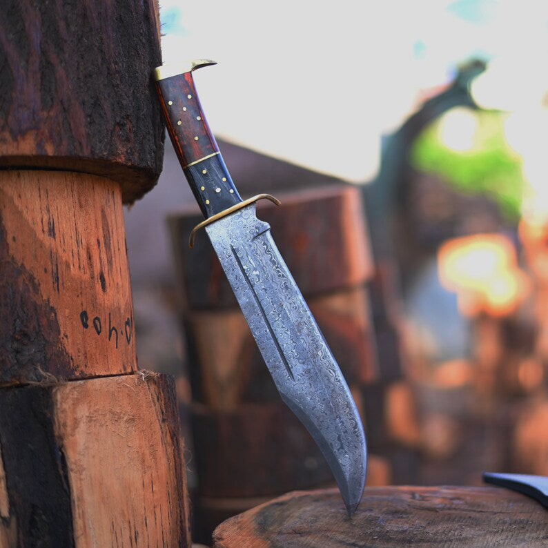 Discover the epitome of craftsmanship with our authentic handmade Damascus steel Bowie knife. Exquisite design and exceptional durability make it a must-have for knife enthusiasts. Explore our collection on Etsy.