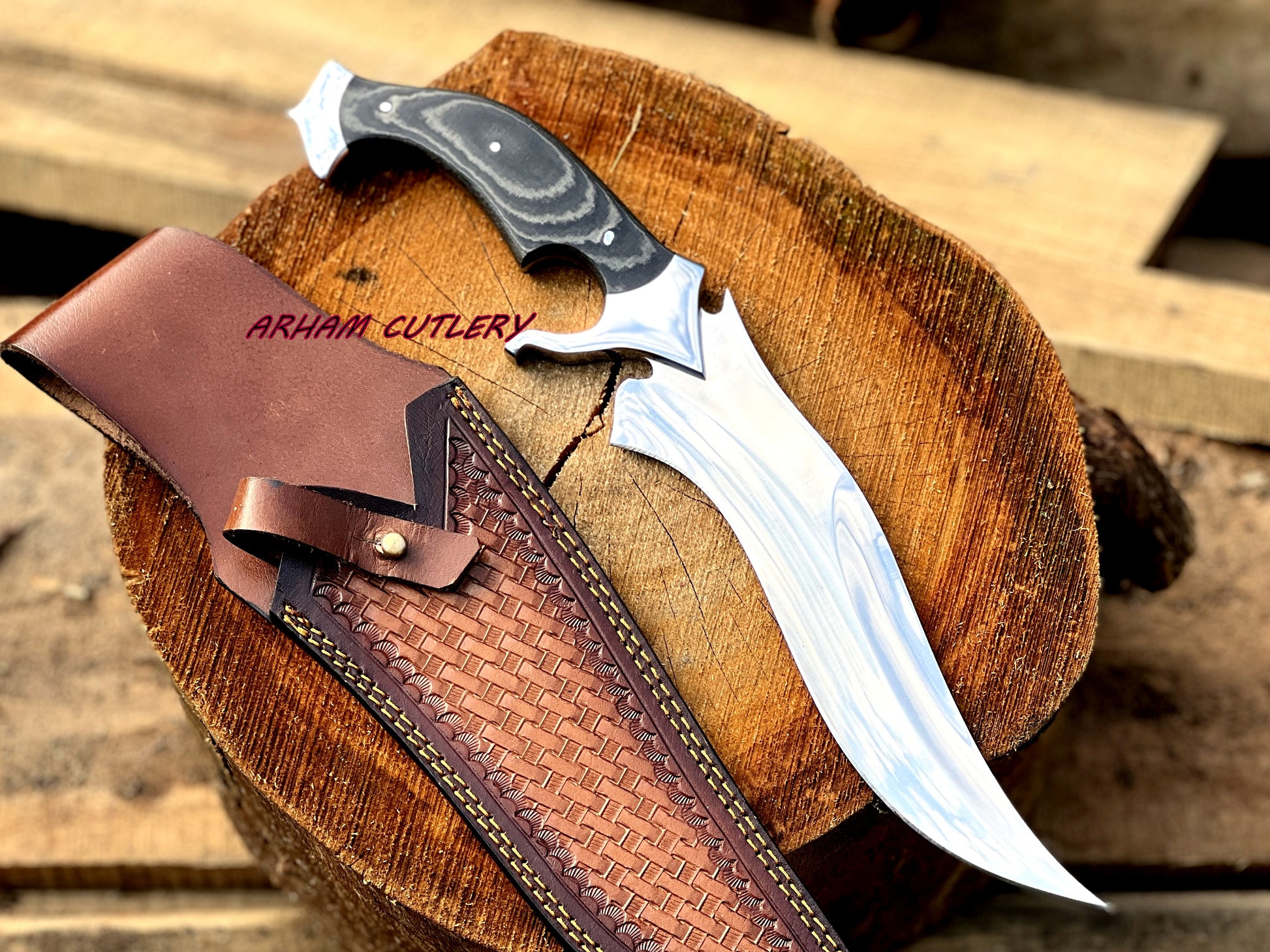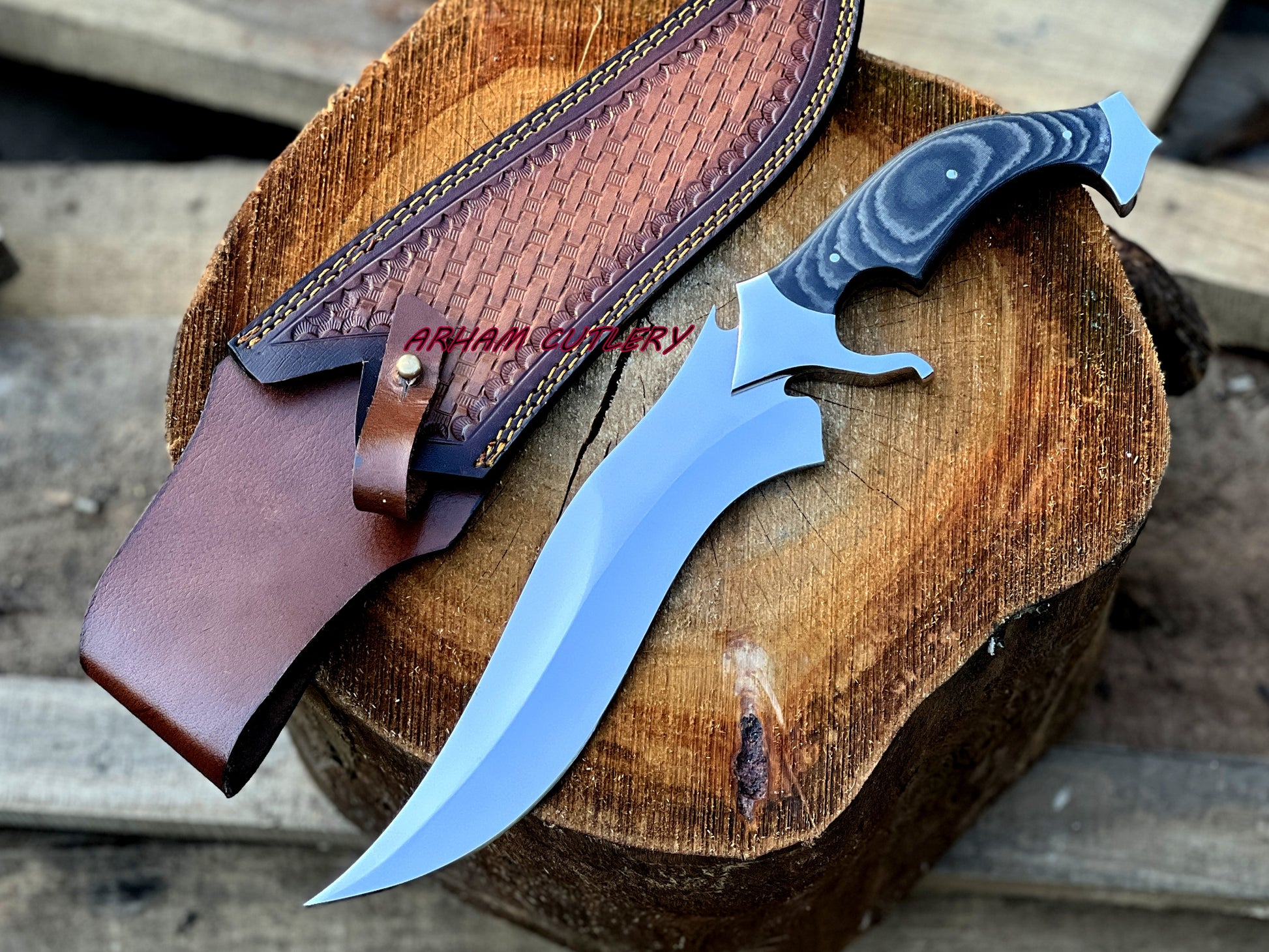 D2 Steel Hunting Knife | 15.5" Bowie Knife with Micarta Sheet Handle & Leather Sheath