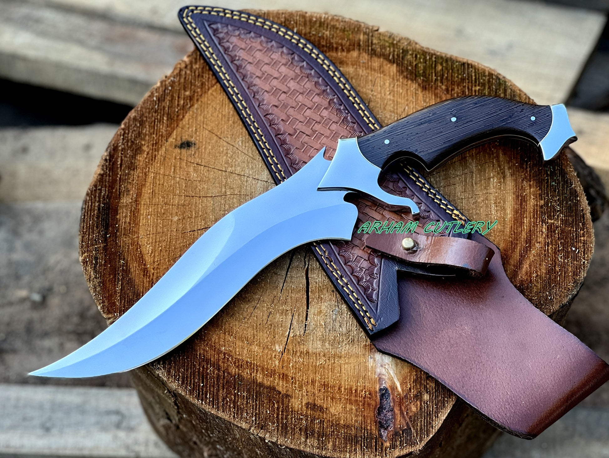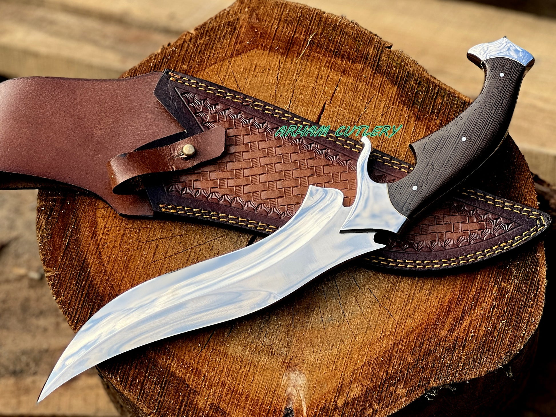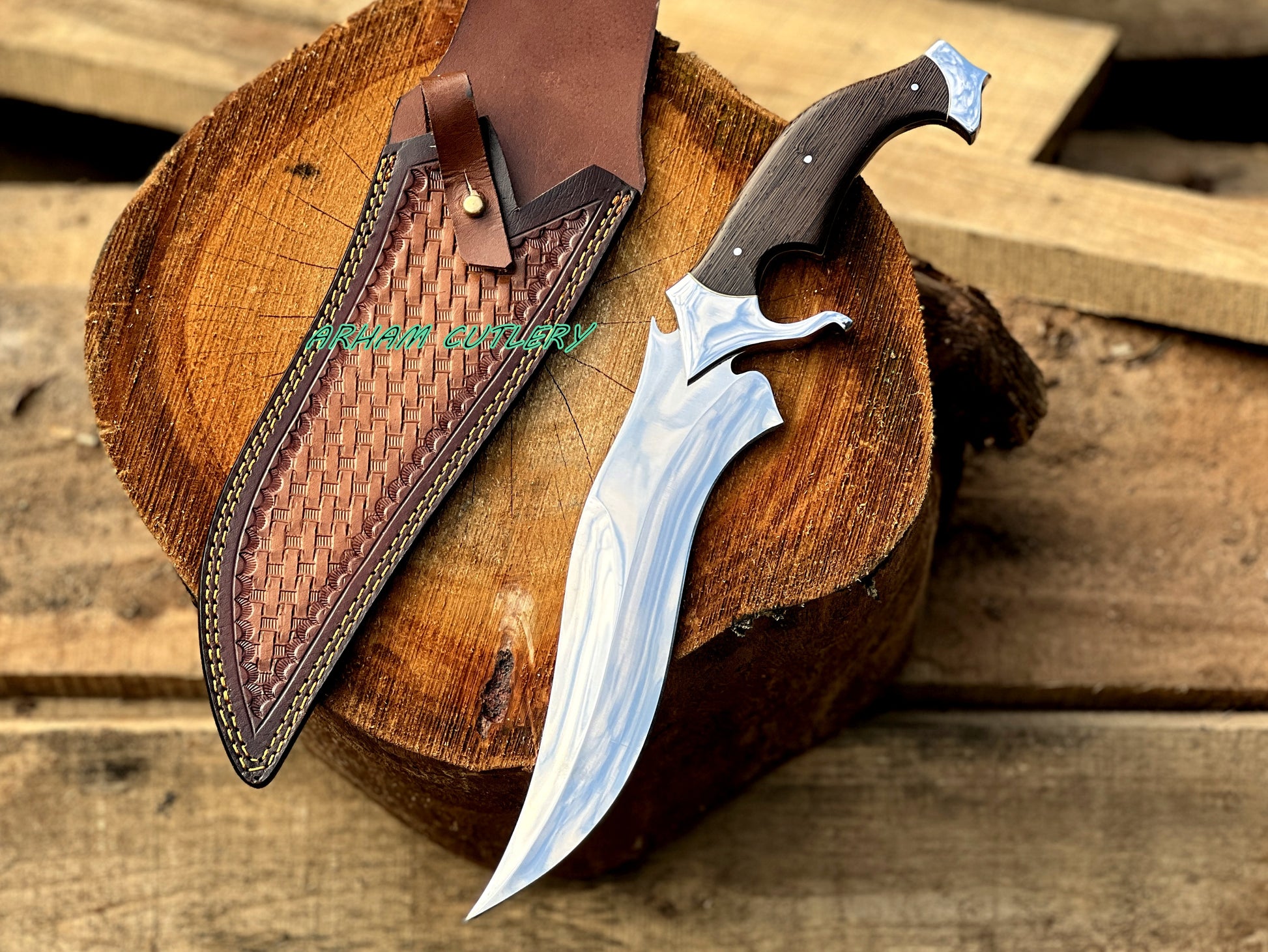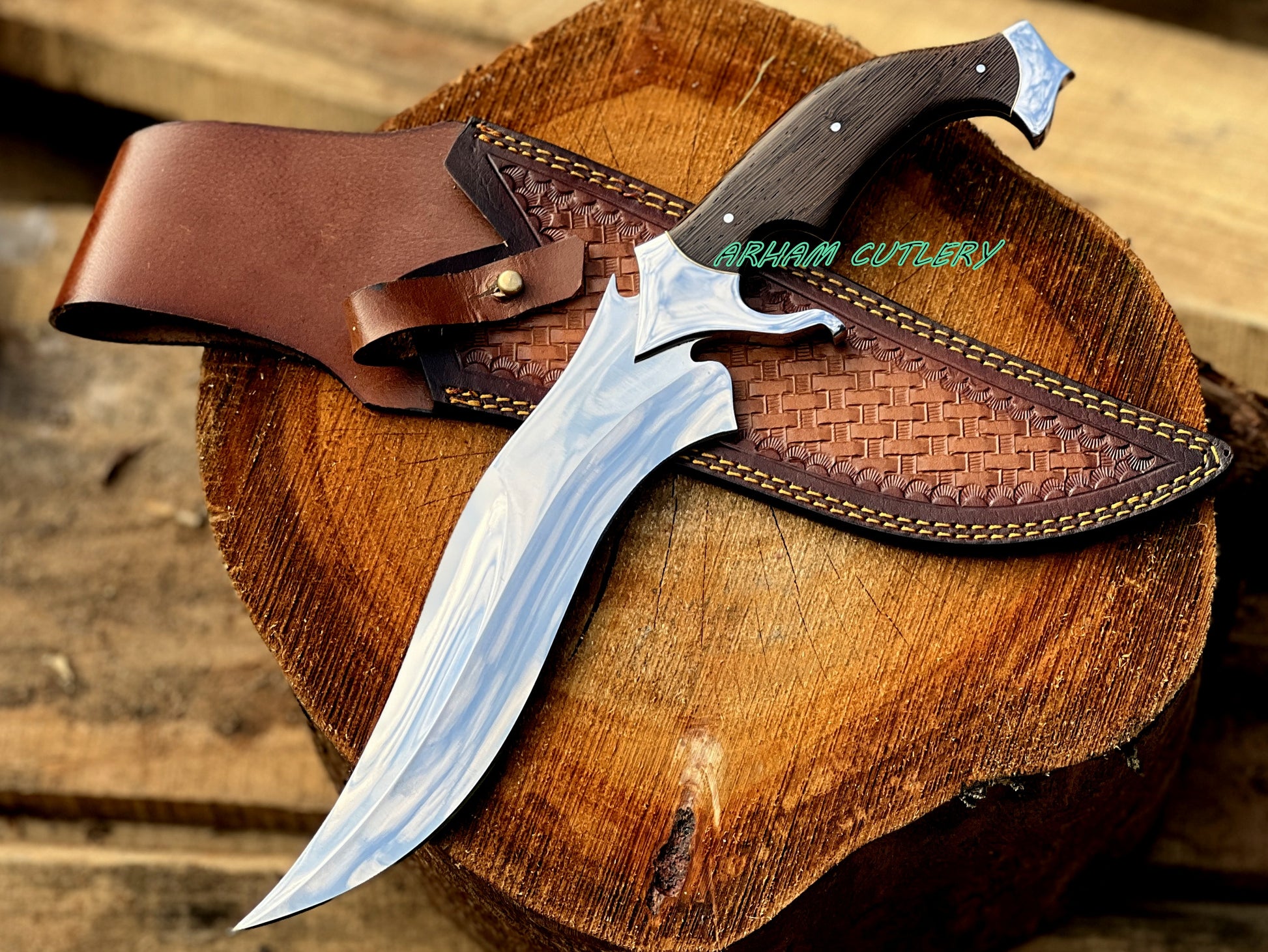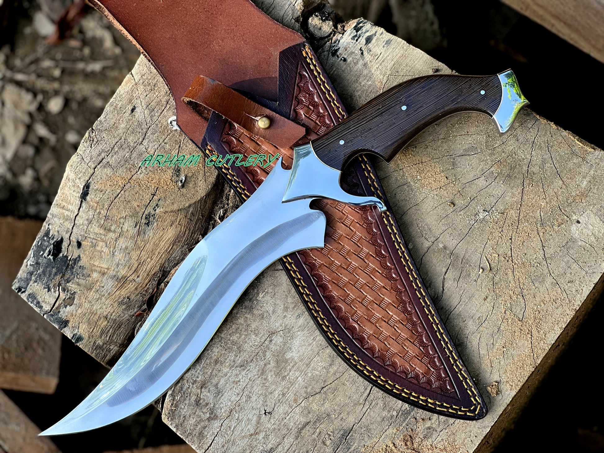 D2 Steel Hunting Knife | 15.5" Bowie Knife with Wenge Wood Handle & Leather Sheath