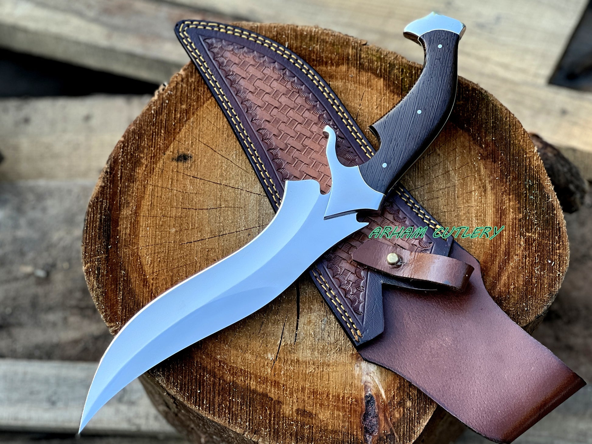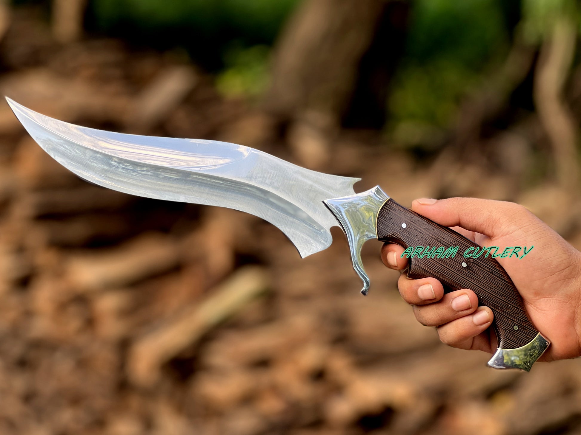 This handmade knife is a blend of strength, style, and performance. Crafted with high-quality D2 tool steel, the mirror-polished 9.5-inch blade is designed to deliver razor-sharp cutting power, making it ideal for hunting, outdoor survival, and collectors.