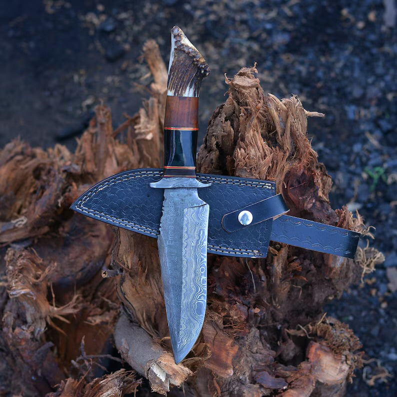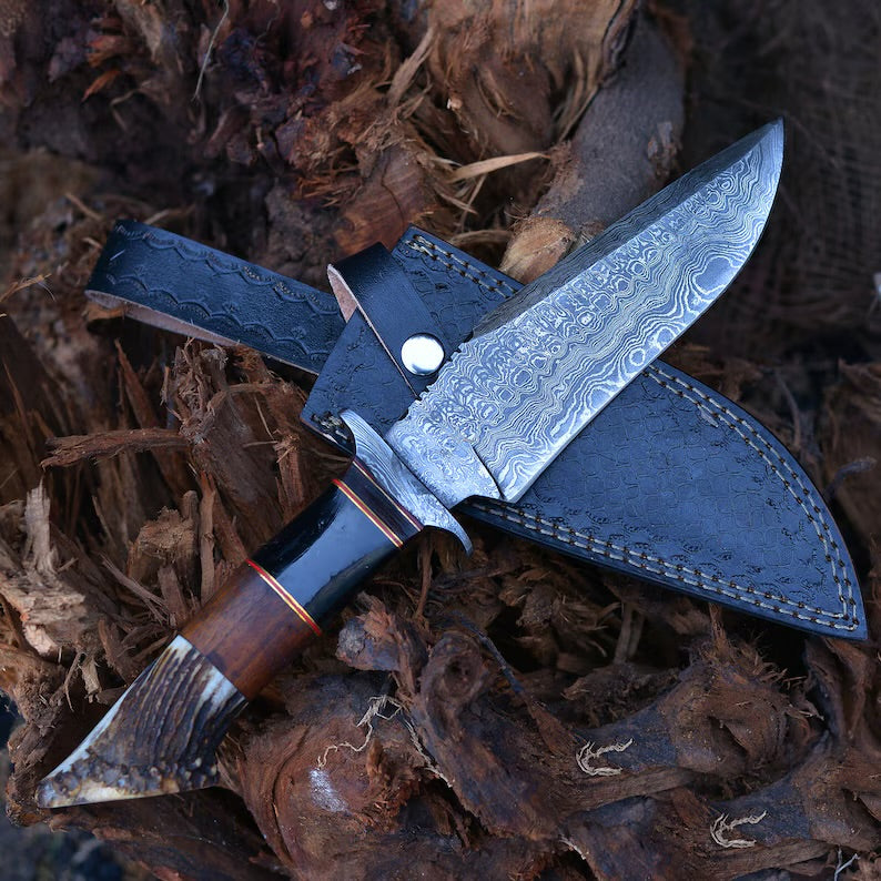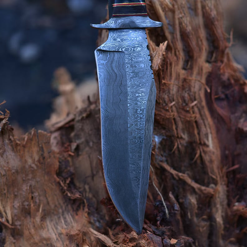This Handmade Damascus Steel Bowie knife is perfect for Christmas gift, Birthday gift, Wedding gift, Anniversary gift, and Valentine's gift. Indulge in the artistry and precision of our Handmade Damascus Steel Bowie Knife. Meticulously crafted by skilled artisans, this knife showcases the timeless beauty and superior quality of Damascus steel. The exquisite blade features stunning layers of folded steel, creating a mesmerizing pattern that is as unique as it is durable.