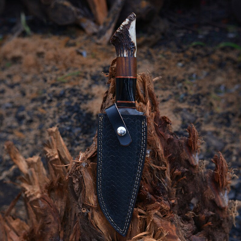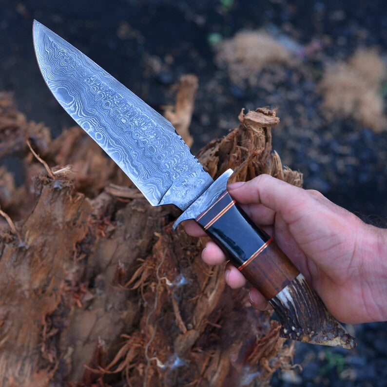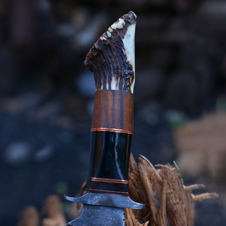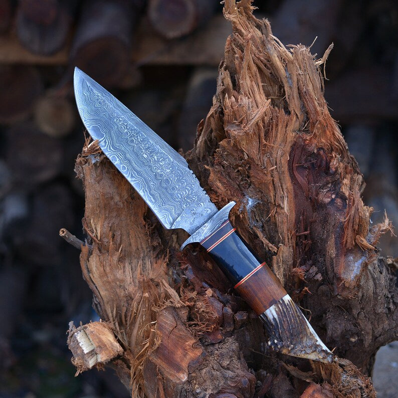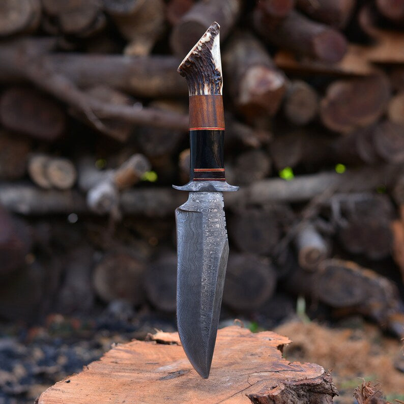 Vintage Damascus Steel Bowie knife | Hunting knife | Viking knife | Deer horn handles knife | Engraved knife | Christmas Gift | Arham Cutlery