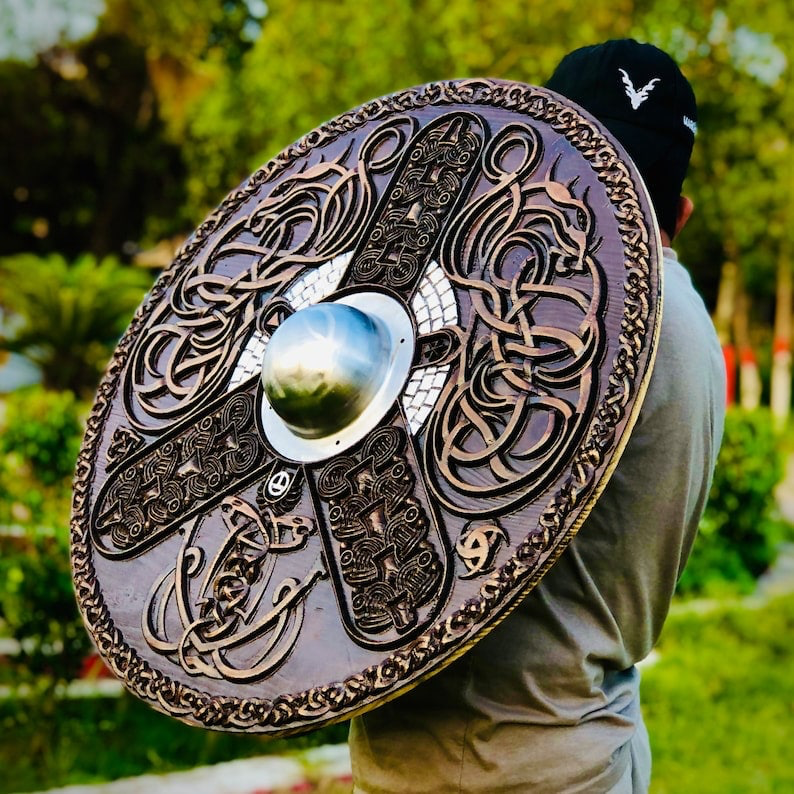 Each shield is unique, bearing the marks of its handcrafted origins and imbued with the spirit of the Viking age. Whether you're a history enthusiast, a collector of fine craftsmanship, or simply someone drawn to the mystique of the Norse sagas, this hand-carved Viking shield is sure to leave a lasting impression.
