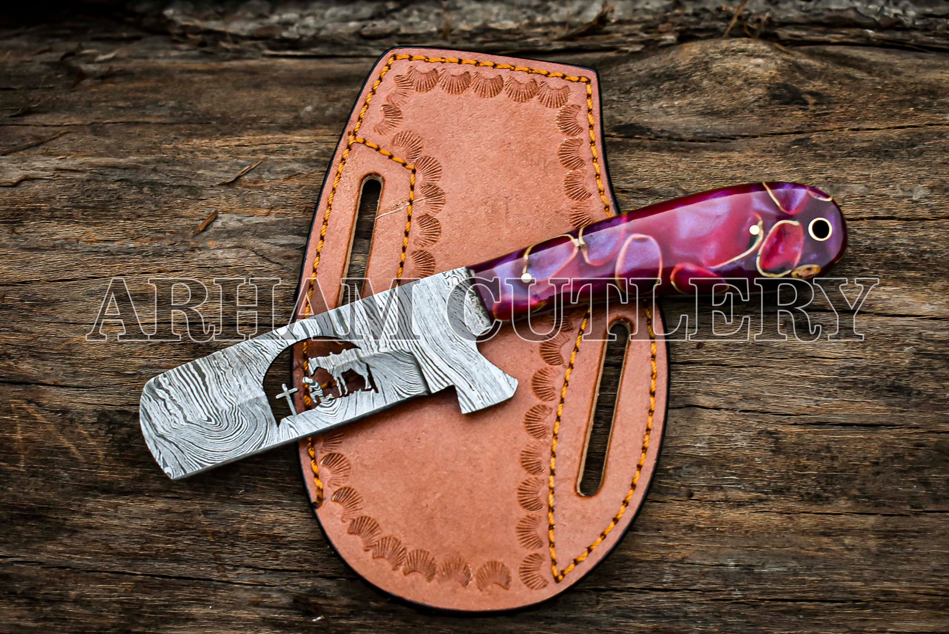Hand Forged Praying Cowboy Knife With Leather Case