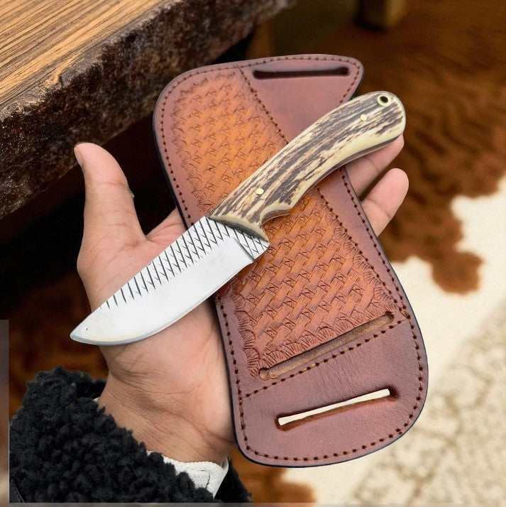 Handcrafted Fixed Blade Knife – Stag Horn Handle & Rasp Steel Blade | Arham Cutlery