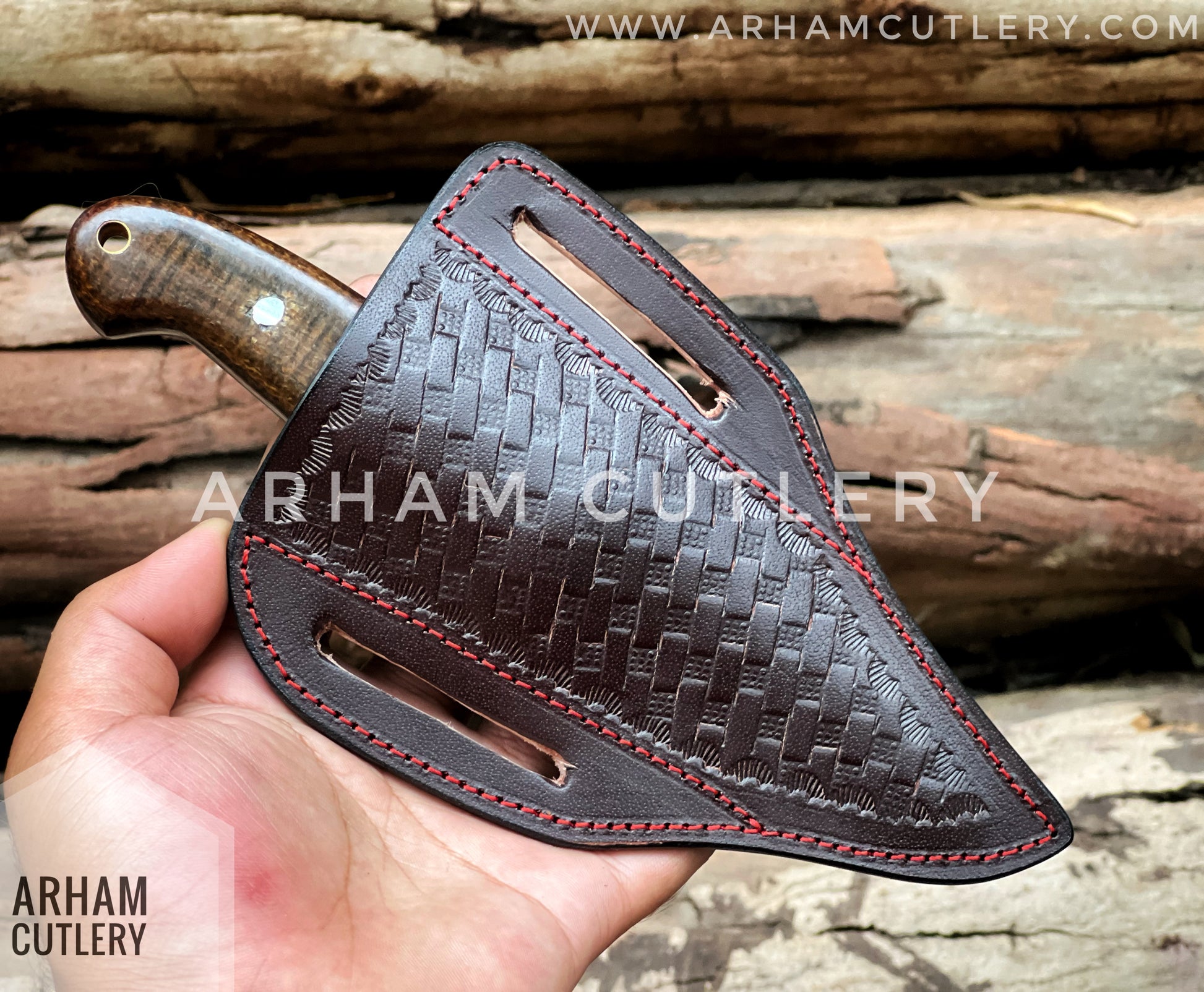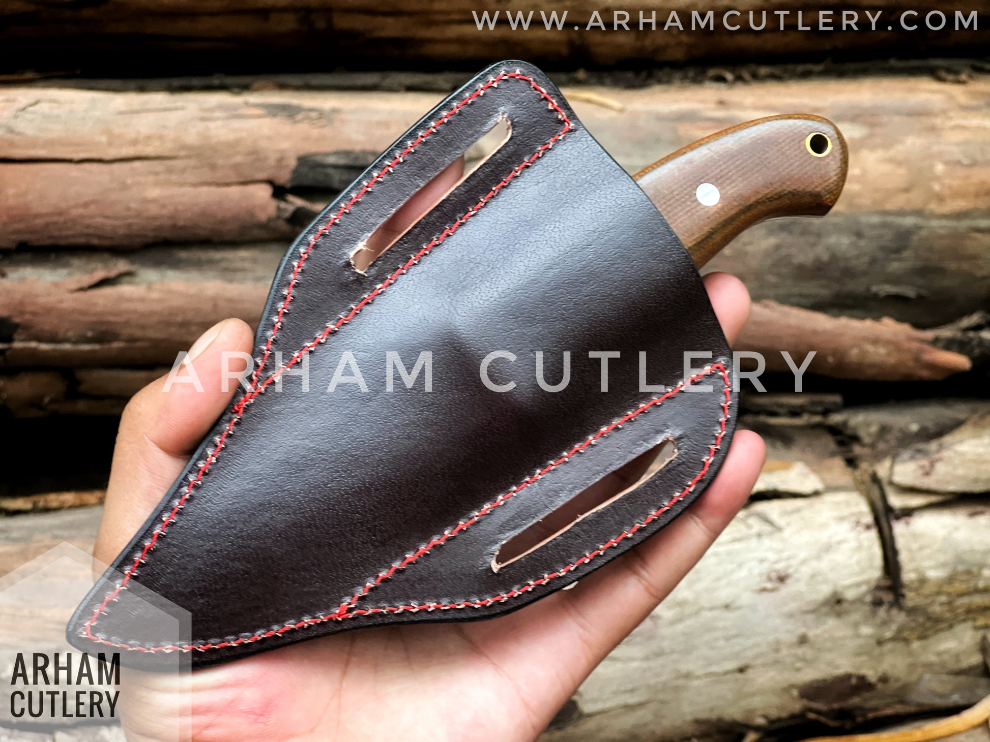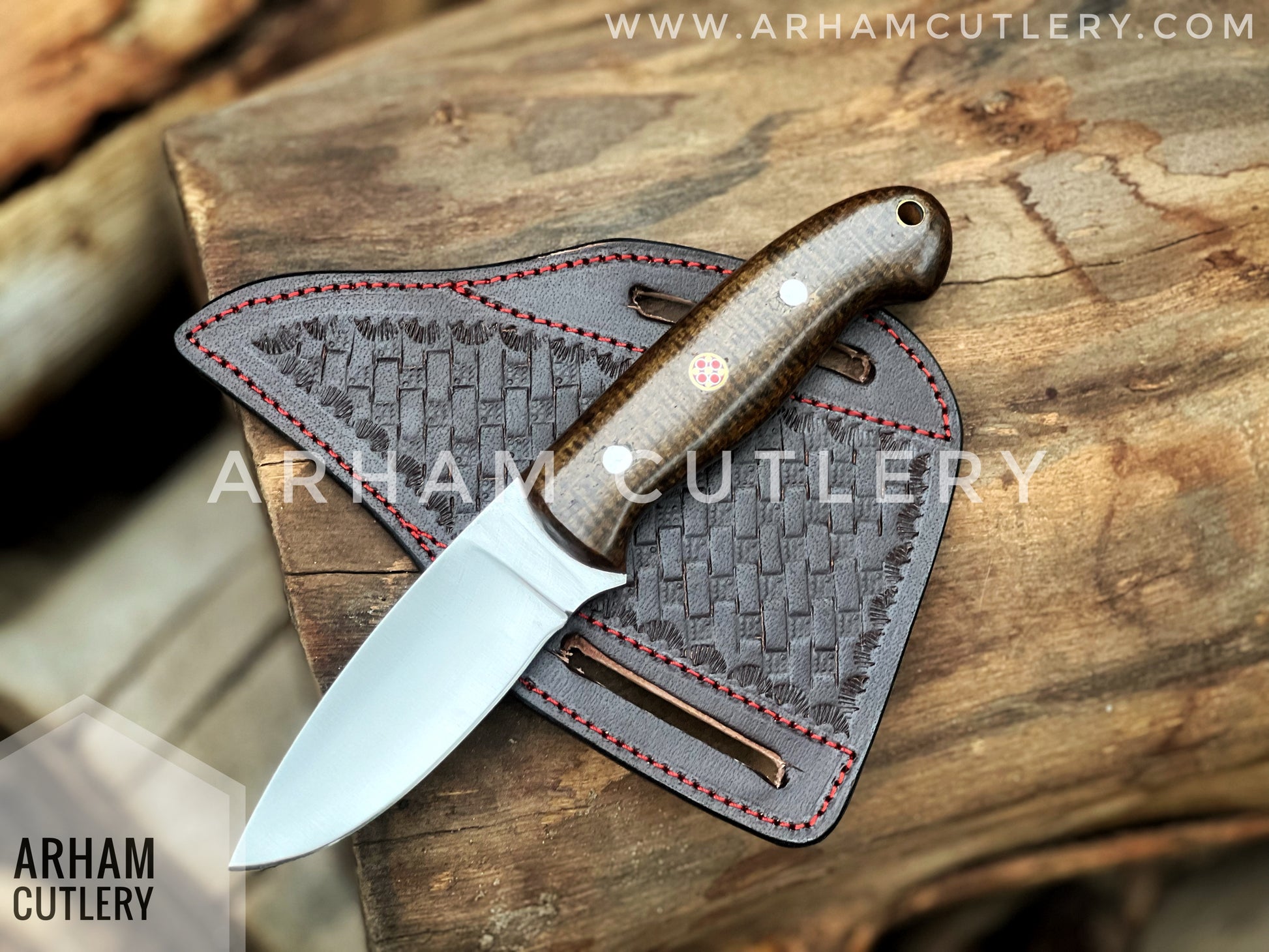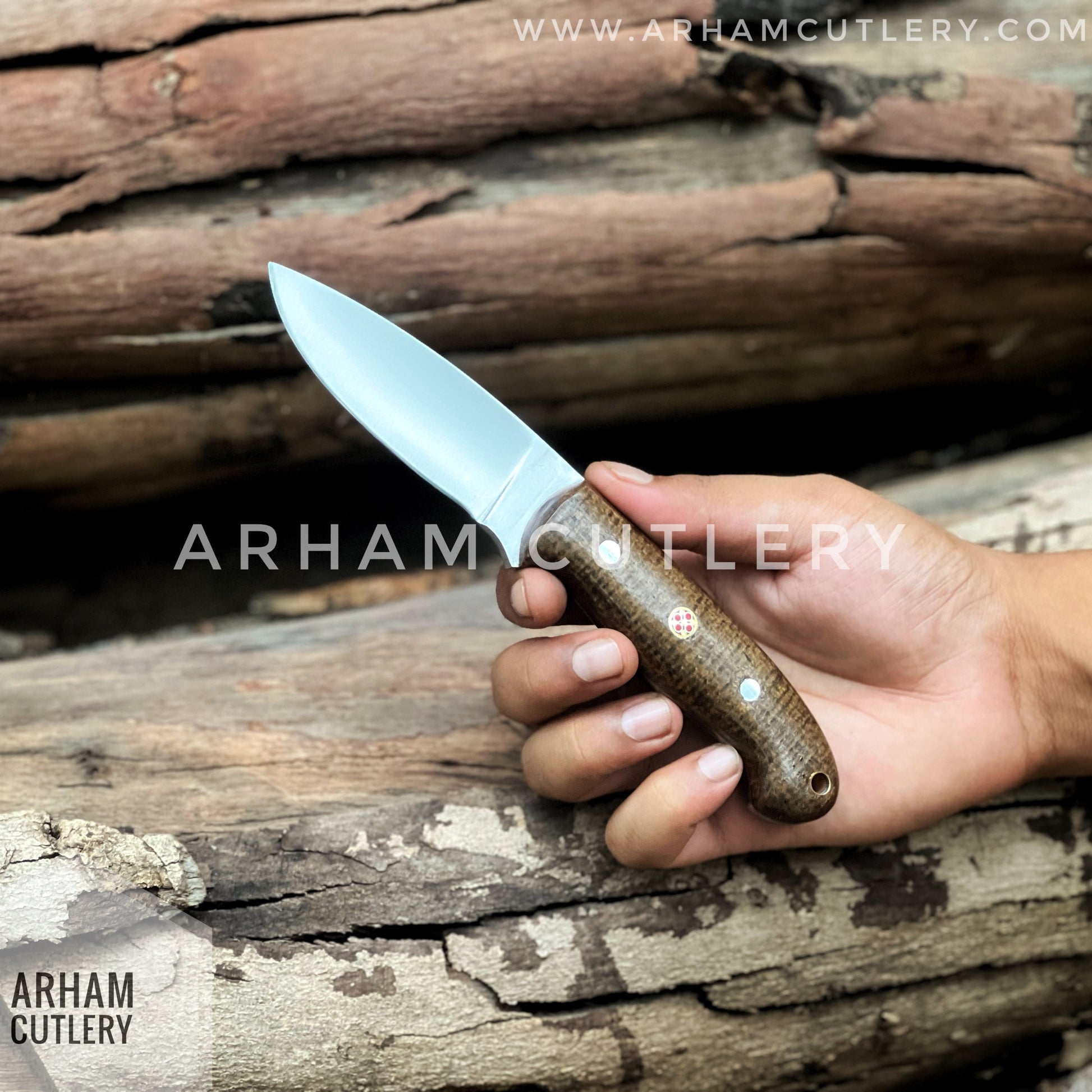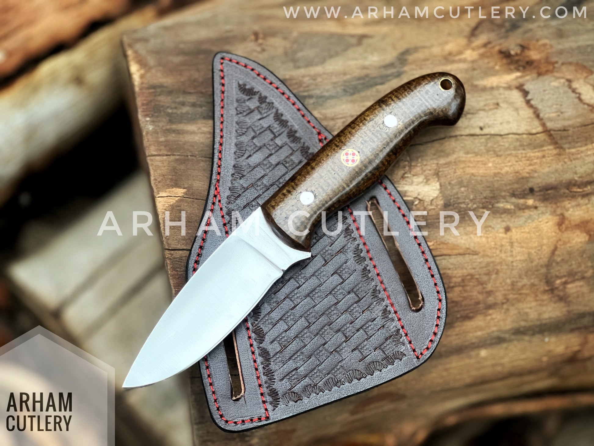 Handmade D2 Steel EDC Knife With Pan Cake Leather Sheath , Arham Cutlery