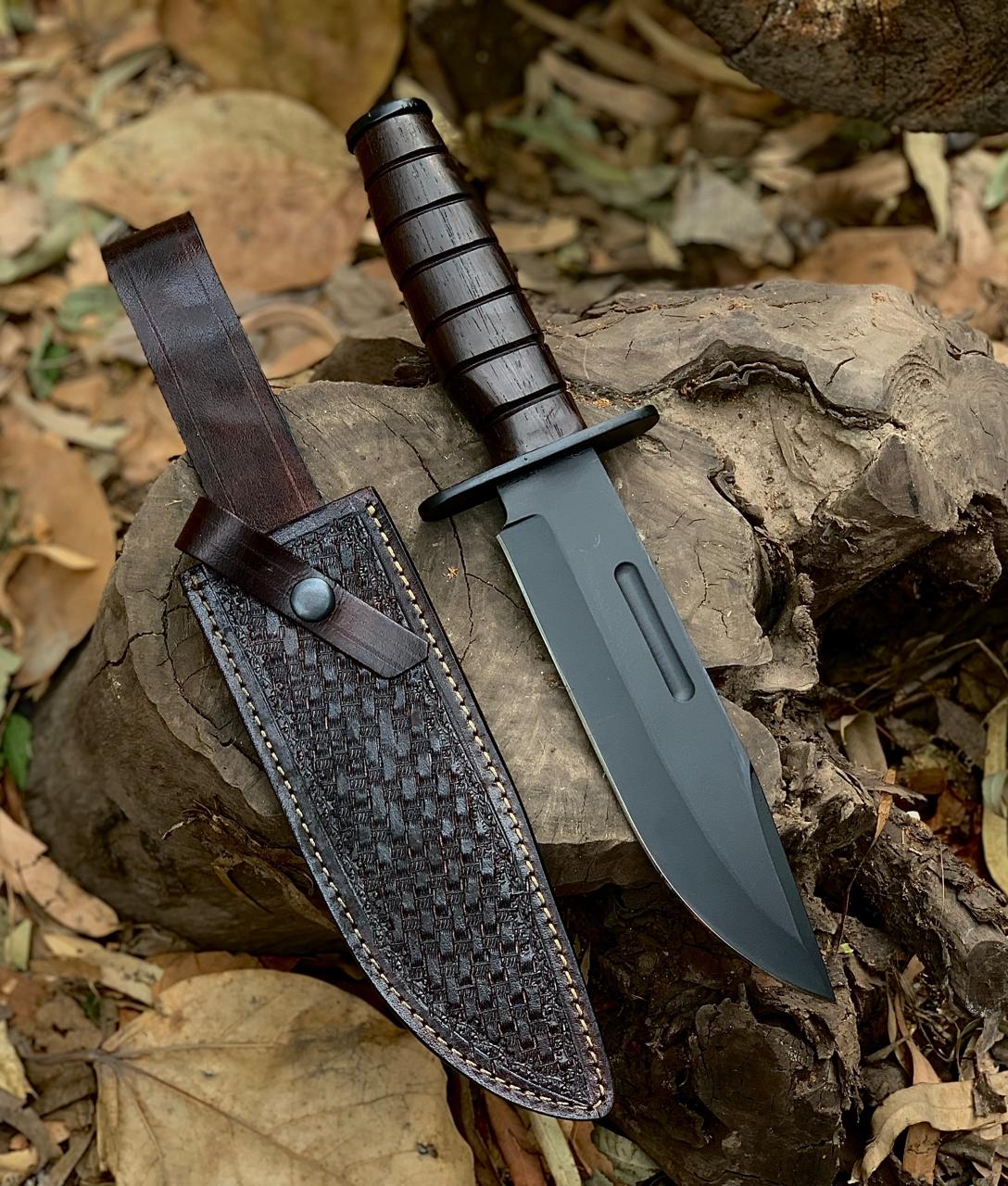 This Bowie knife is Handmade with 4.5mm (approx) thick D2 steel with powdered coat Made of single piece of steel that runs across entire knife from made to handle that provides better balance and durability and great for your camping and hunting collection.