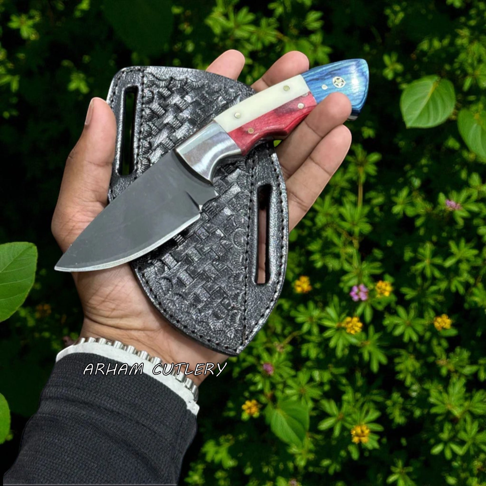 Lone Star Scout Hunting Knife | J2 Steel Blade with Red, White & Blue Handle – Handmade by Arham Cutlery