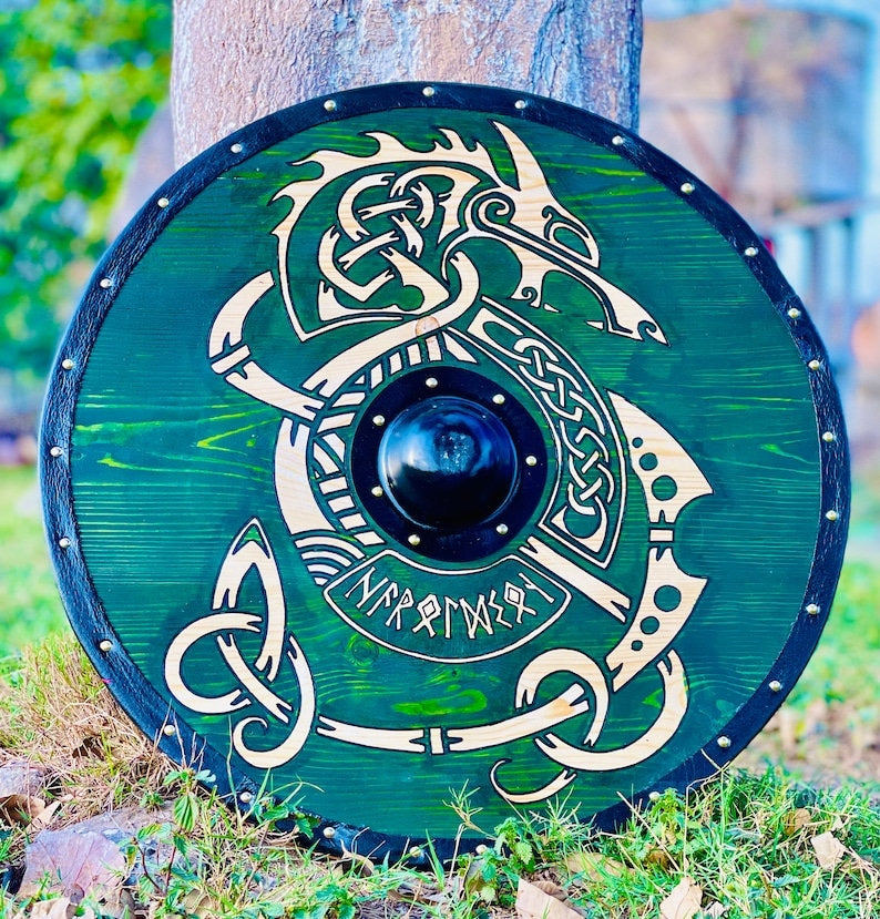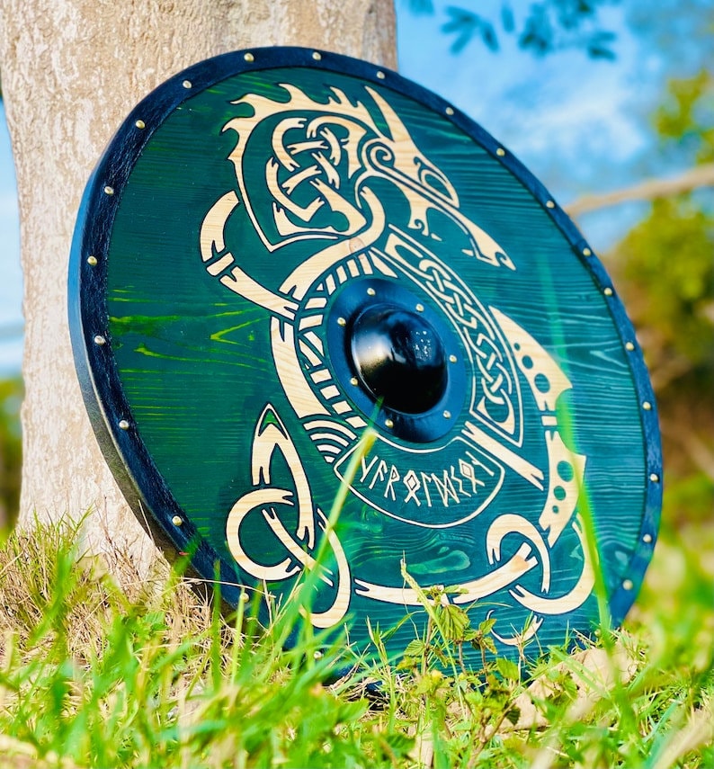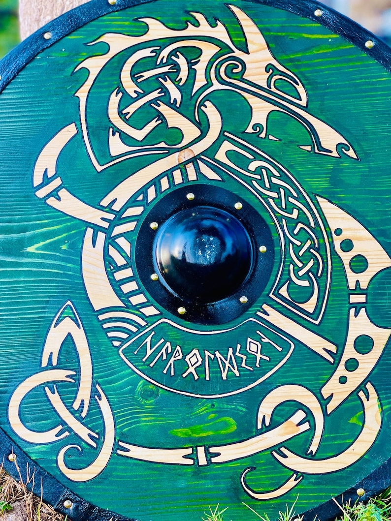 Embark on an epic journey back in time with our exquisitely crafted Medieval Viking Shield – a true homage to Uhtred from the Last Kingdom. This authentic Viking wall art is a perfect gift for him/her, capturing the spirit of the Vikings in all its glory.