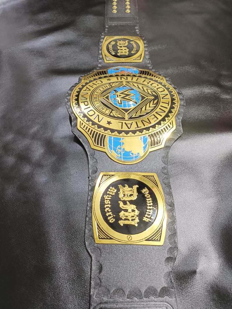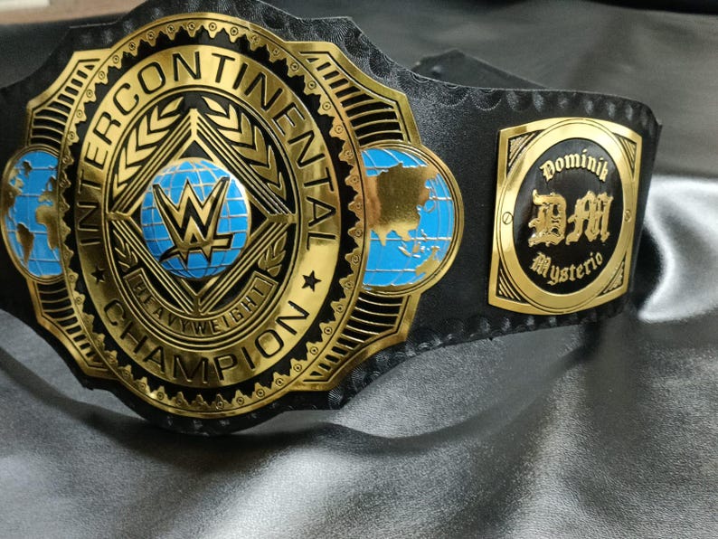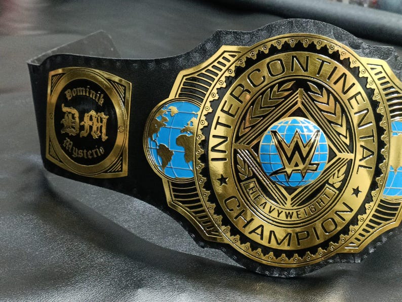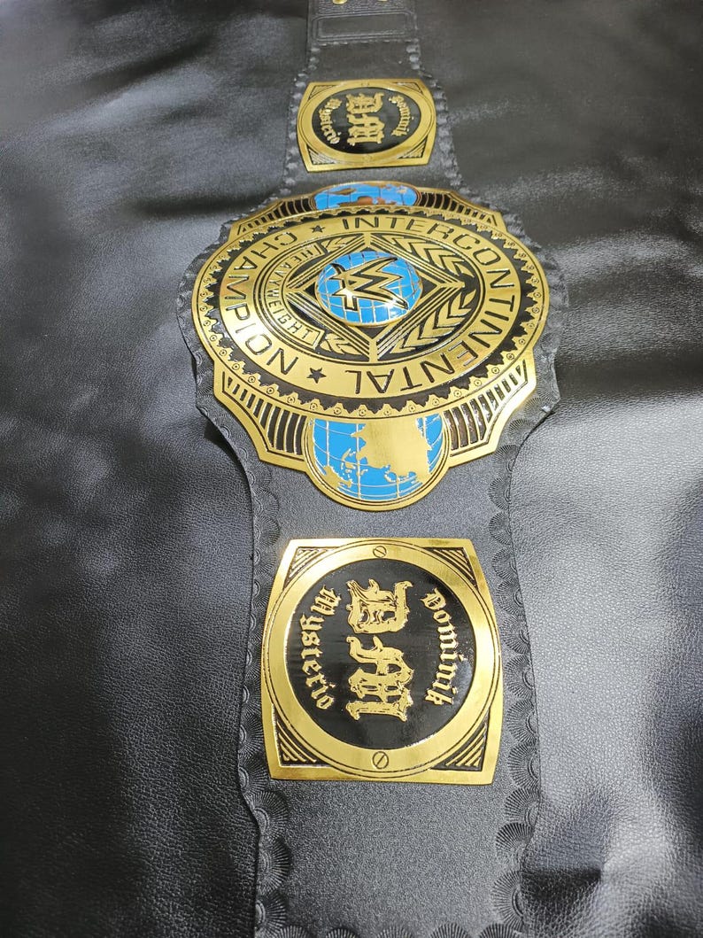 New Intercontinental Heavyweight Wrestling Champion Title Belt, Dominik Mysterio side plate 2mm Metal, Adult Size