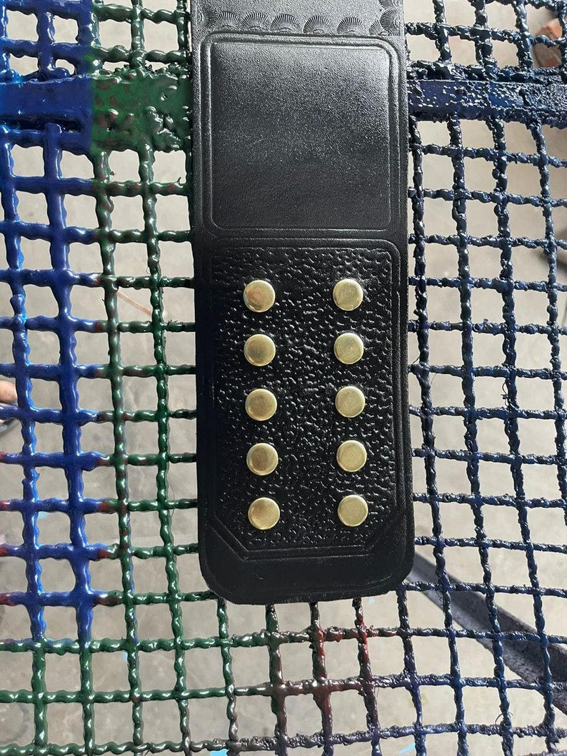 Material: 100% Polyurethane Leather - Strap; 100% Brass/Brass Alloy - Center and Side Plates