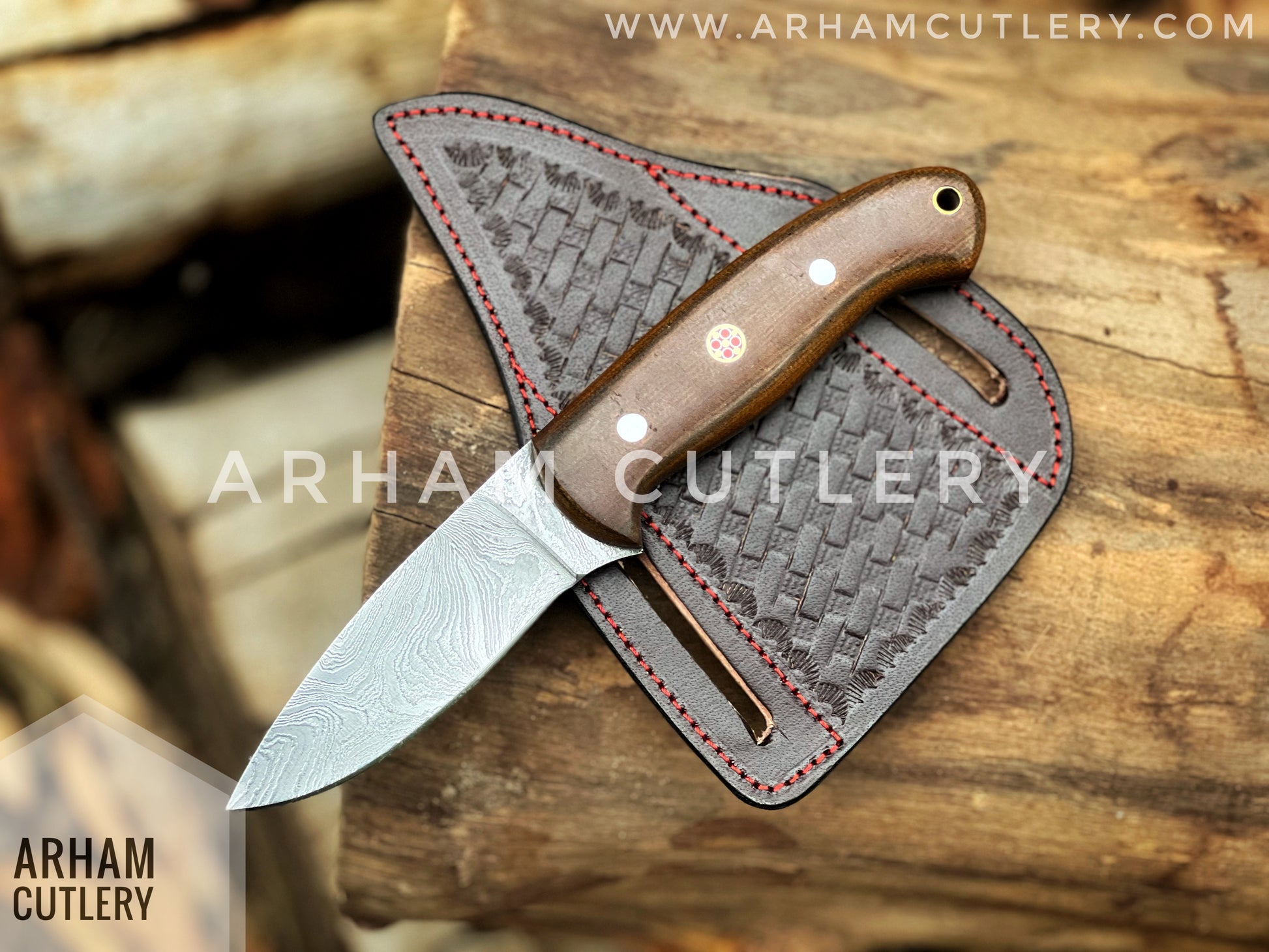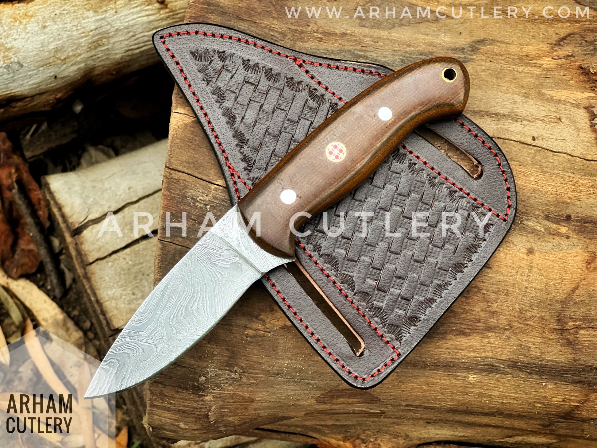 Vagabond Handmade Damascus Steel EDC Knife with Leather Sheath , Best For EDC Lover , Arham Cultery