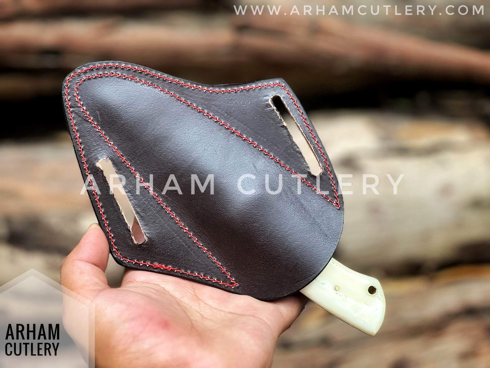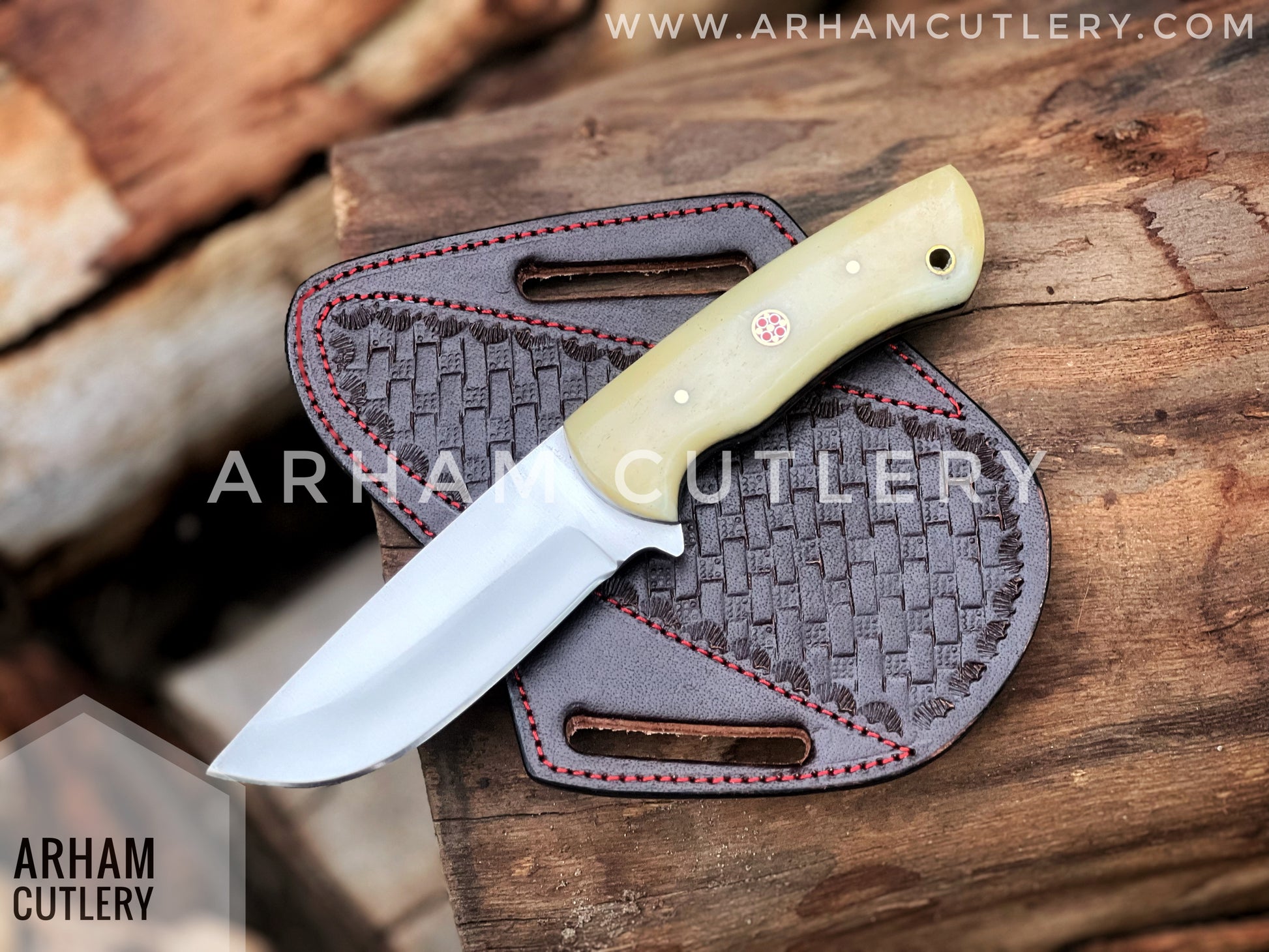 Winter's Wrath Handmade D2 Steel 9" Handmade Fixed Blade With Cowhide Leather Sheath , Camel Bone Knife , Best Gift For Hunter