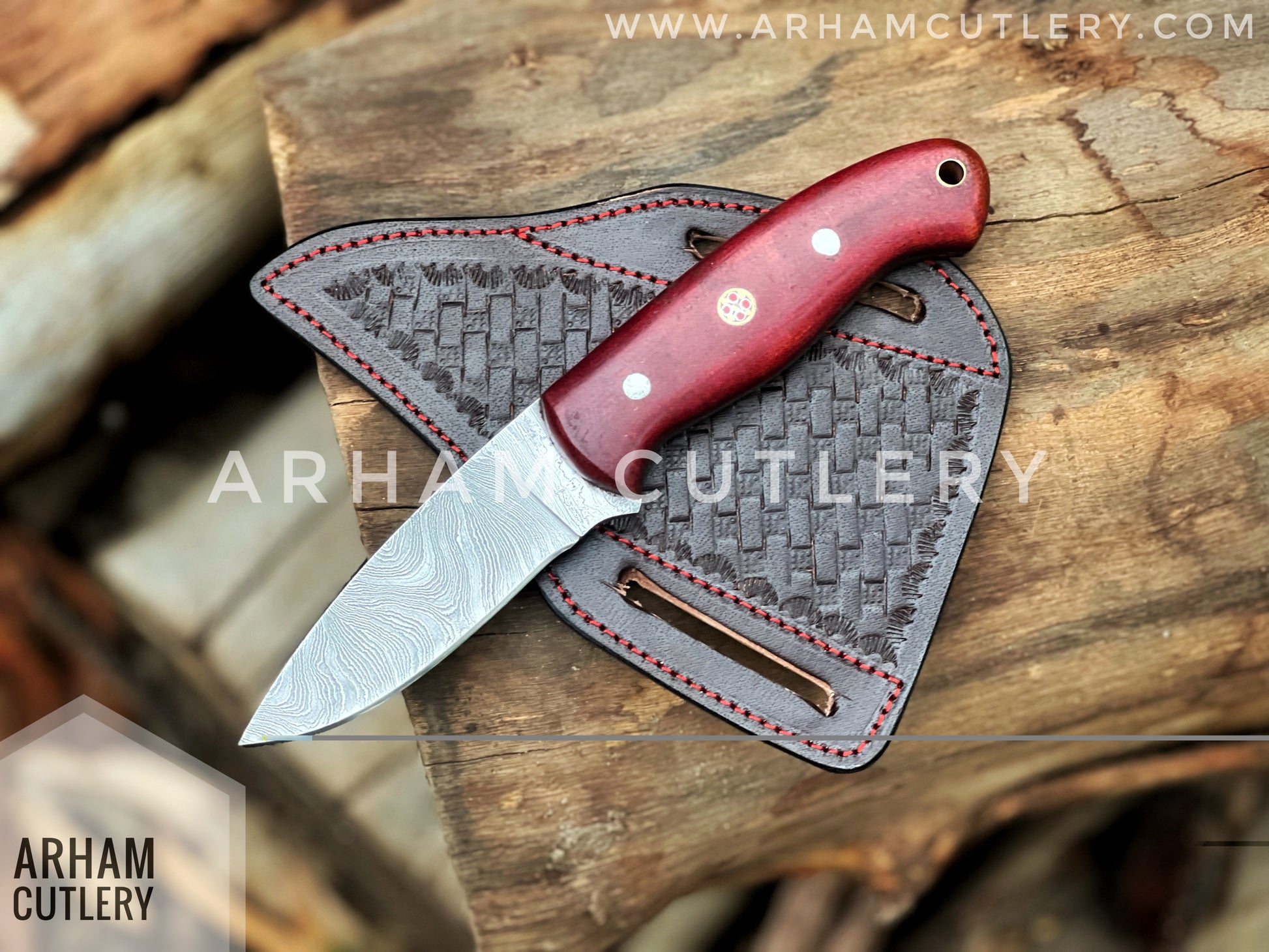 Aurora Handmade Damascus Steel EDC Knife with Leather Sheath Hand Forged ,Arham Cutlery