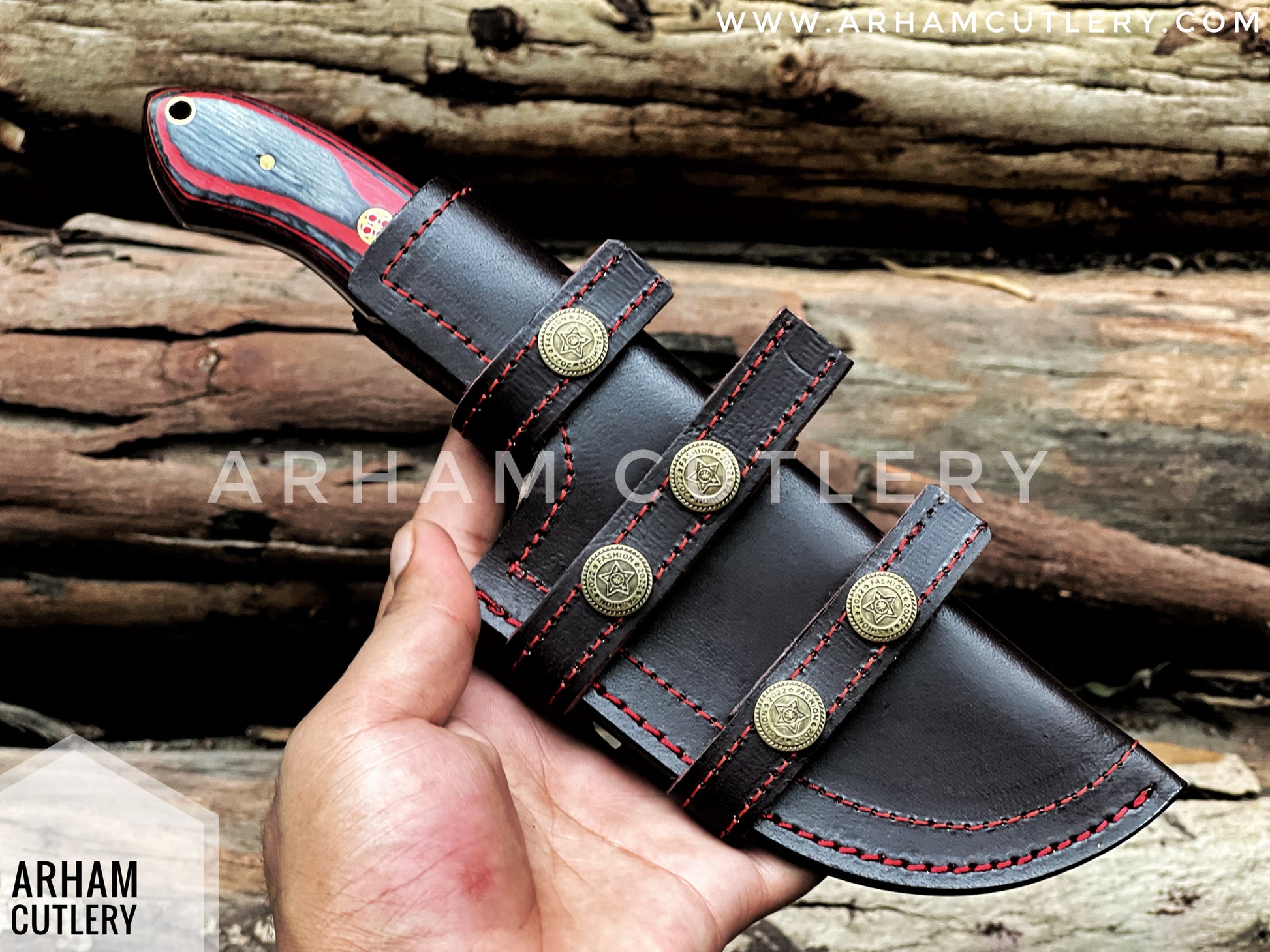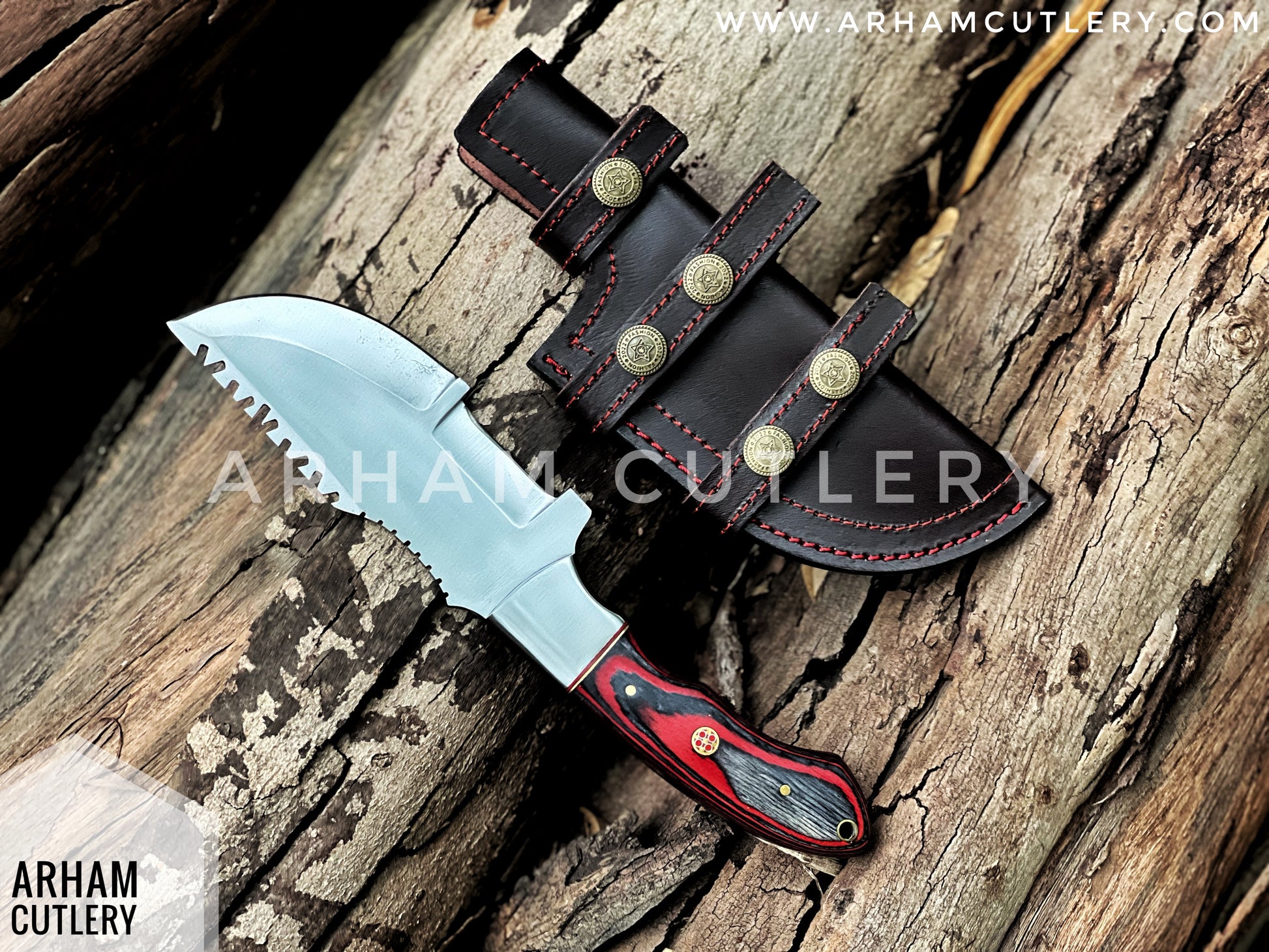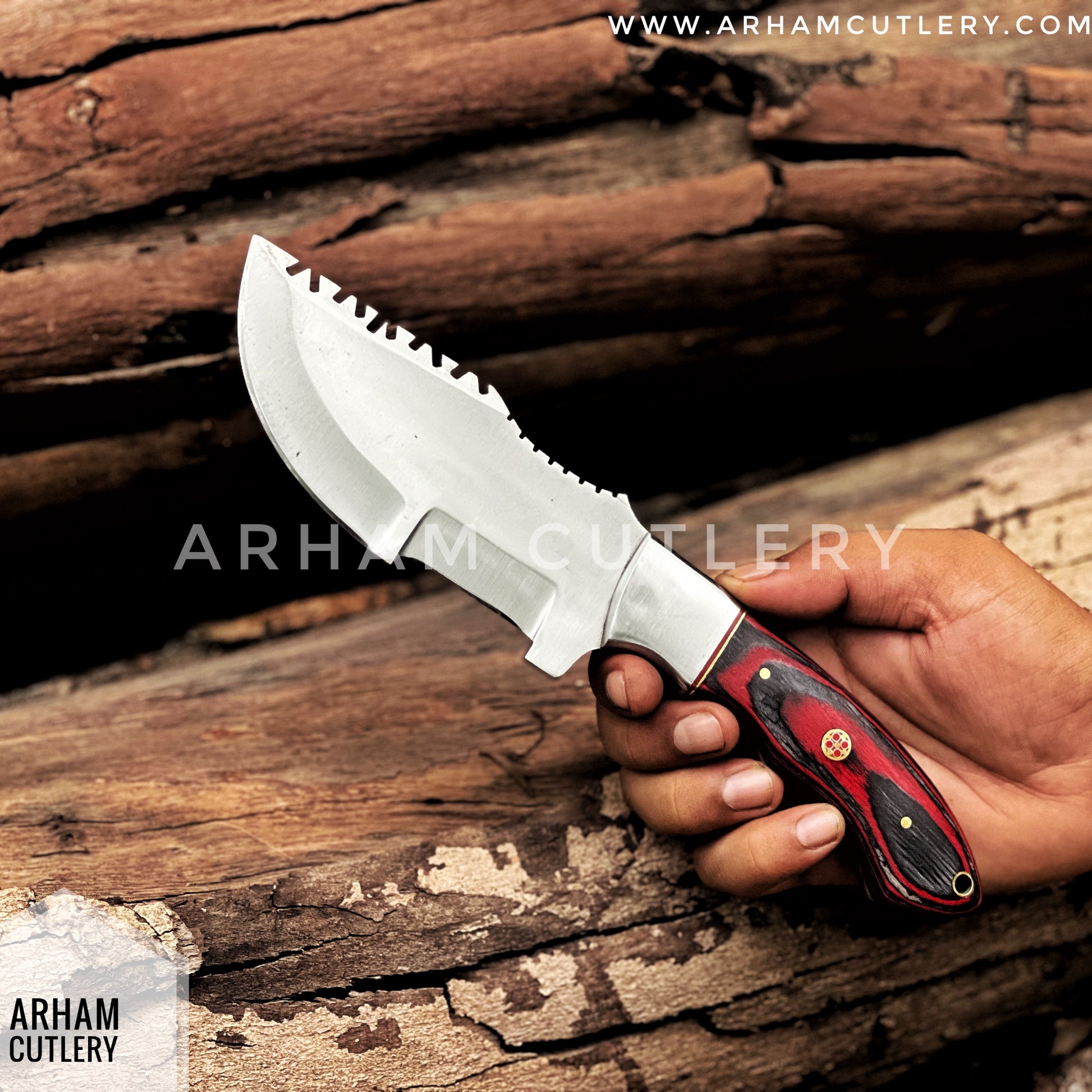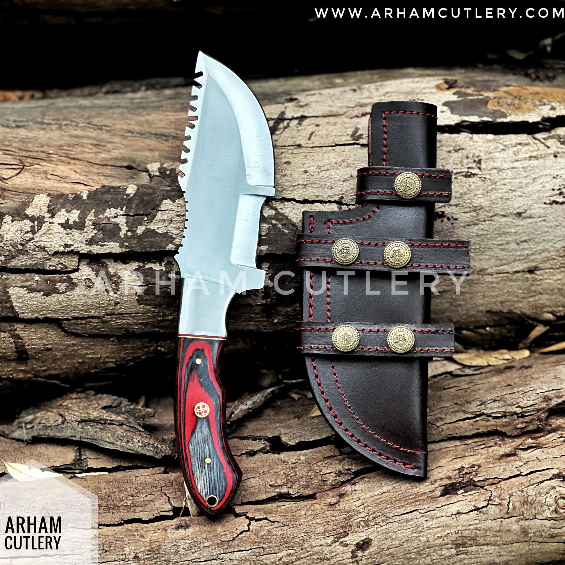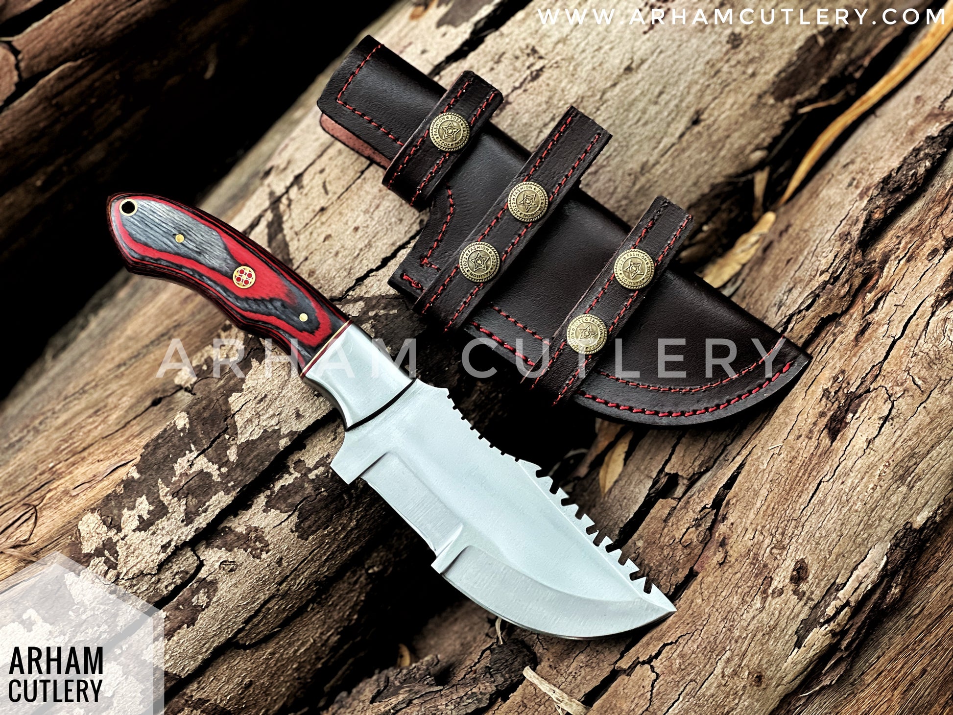 Handcrafted D2 Steel Tracker Knife - Pakkah Wood Handle & Leather Sheath