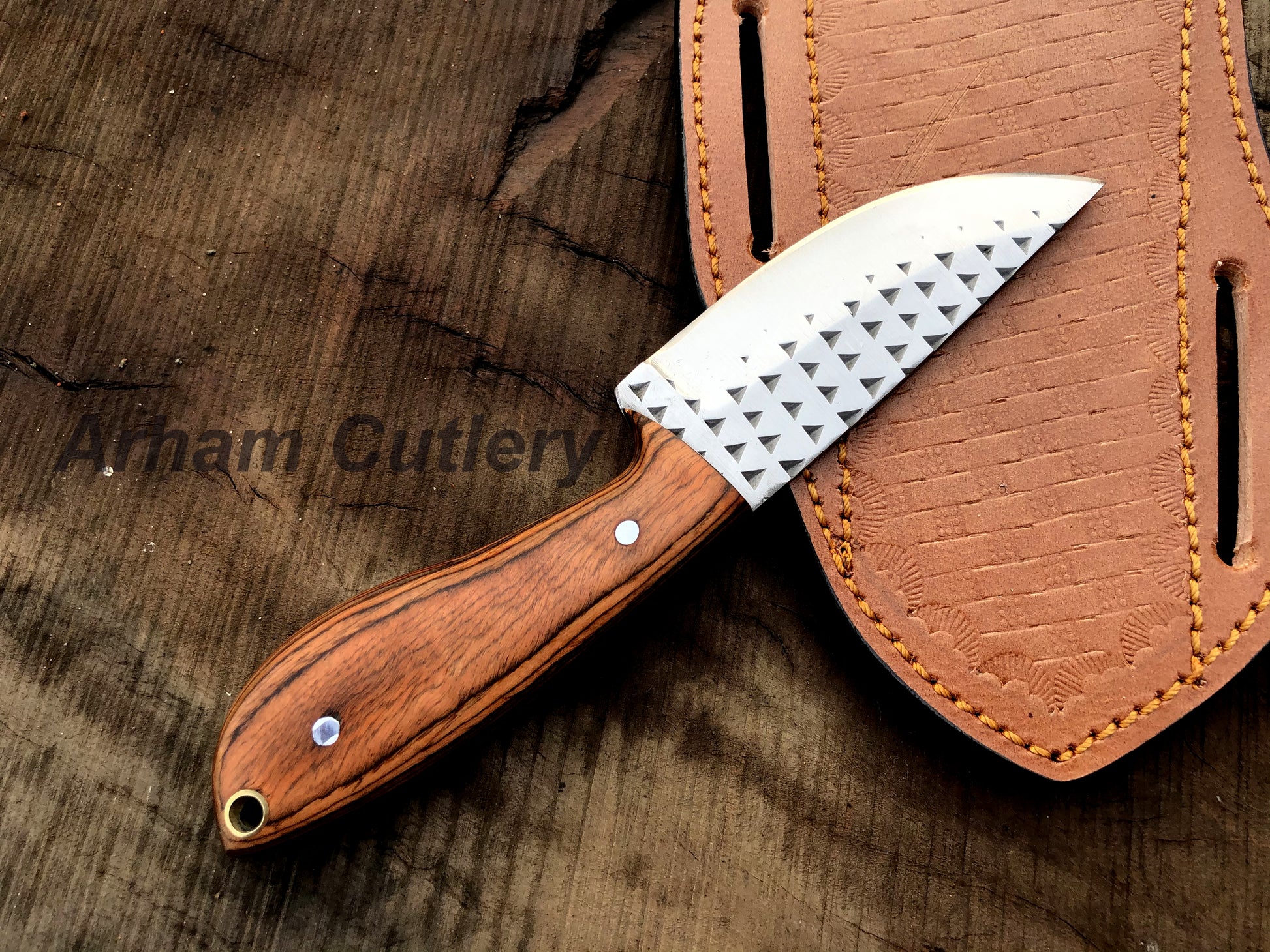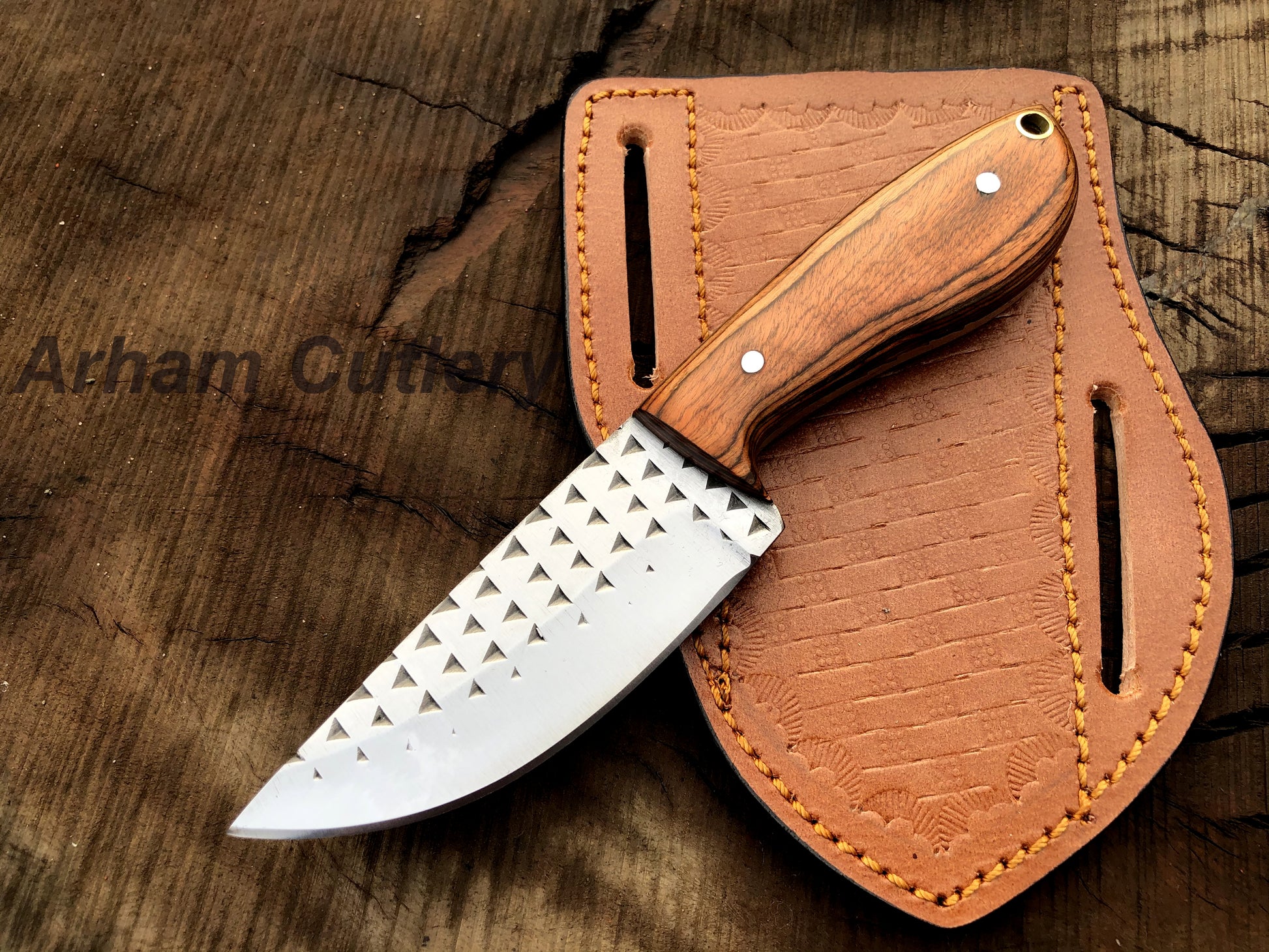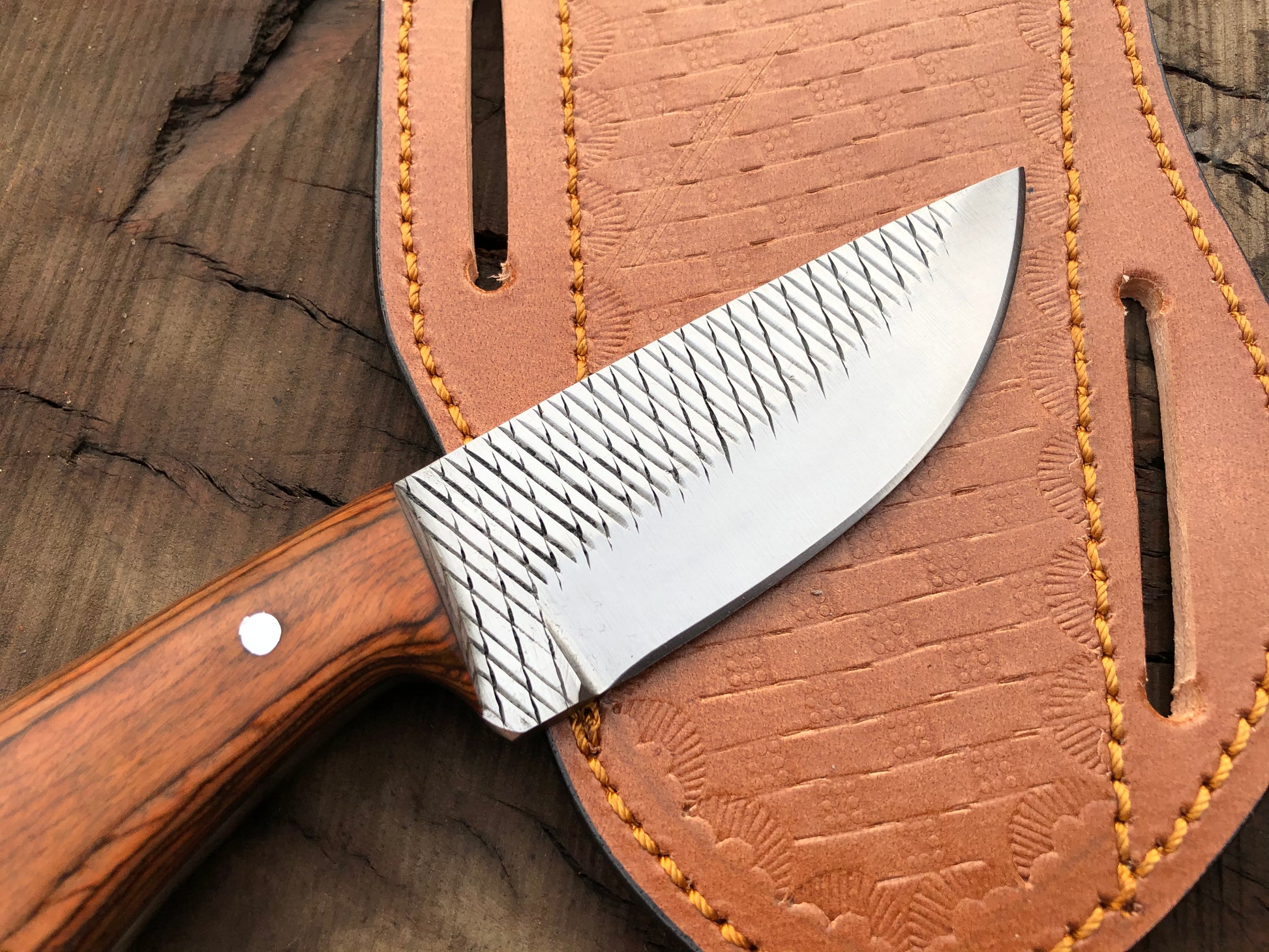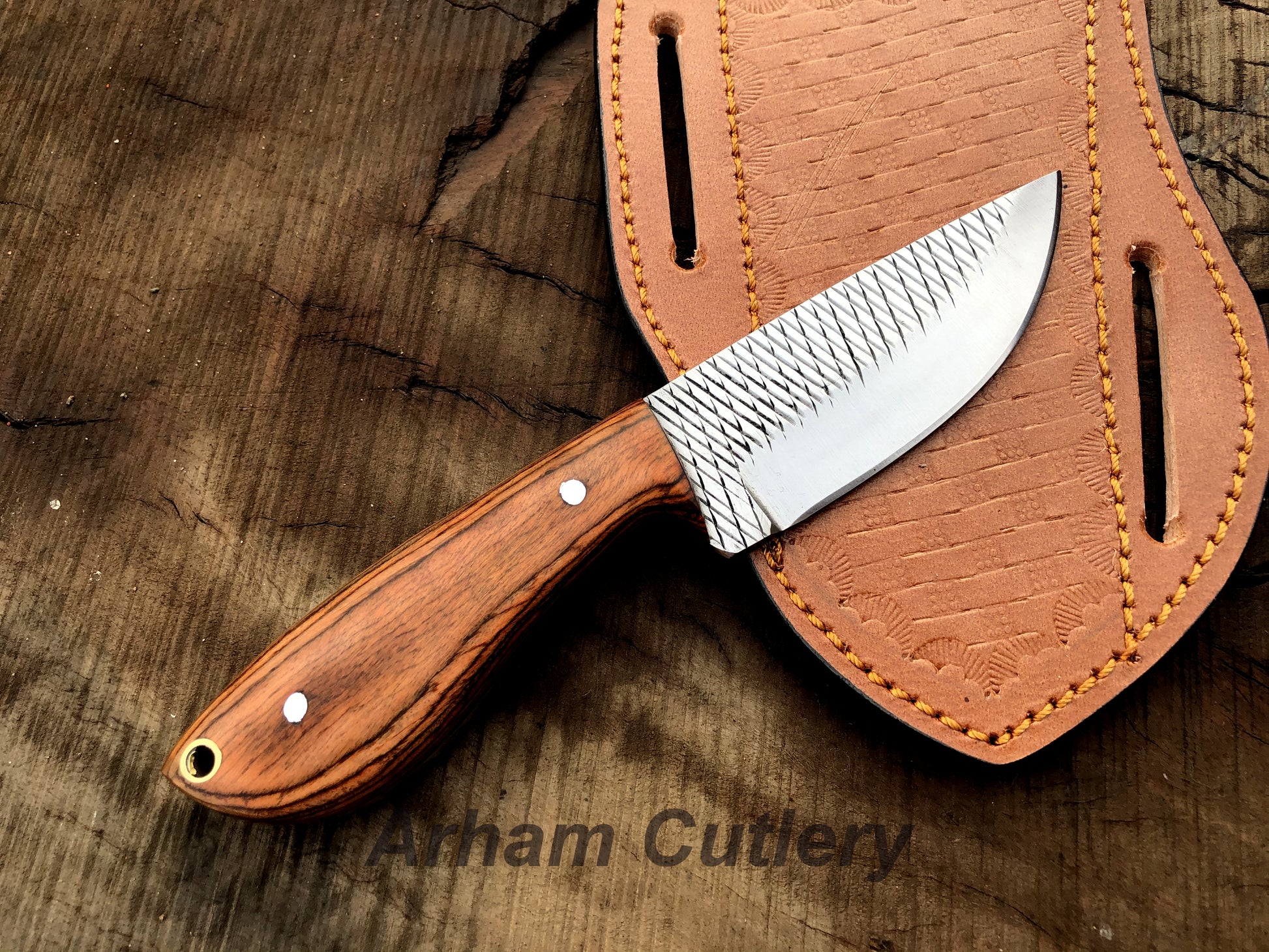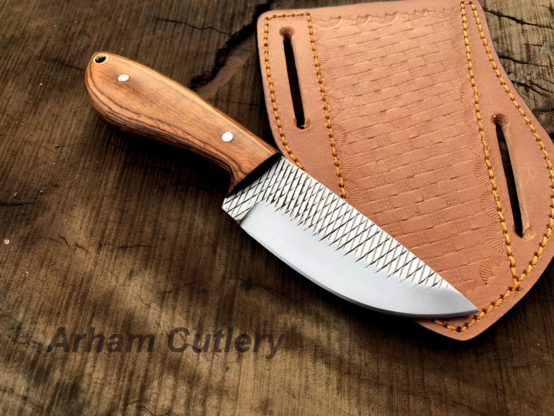 Handforged Ferrier Rasp File Skinning Knife With Cross Draw Leather Sheath , Arham Cutlery