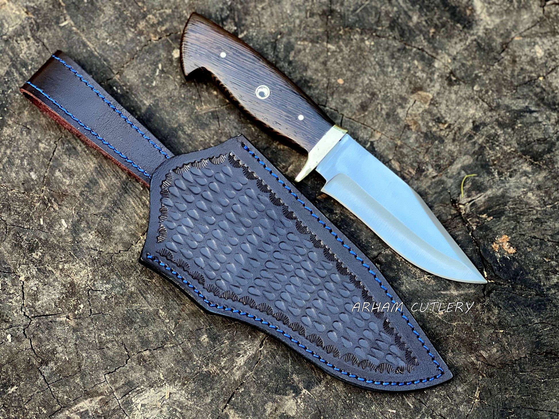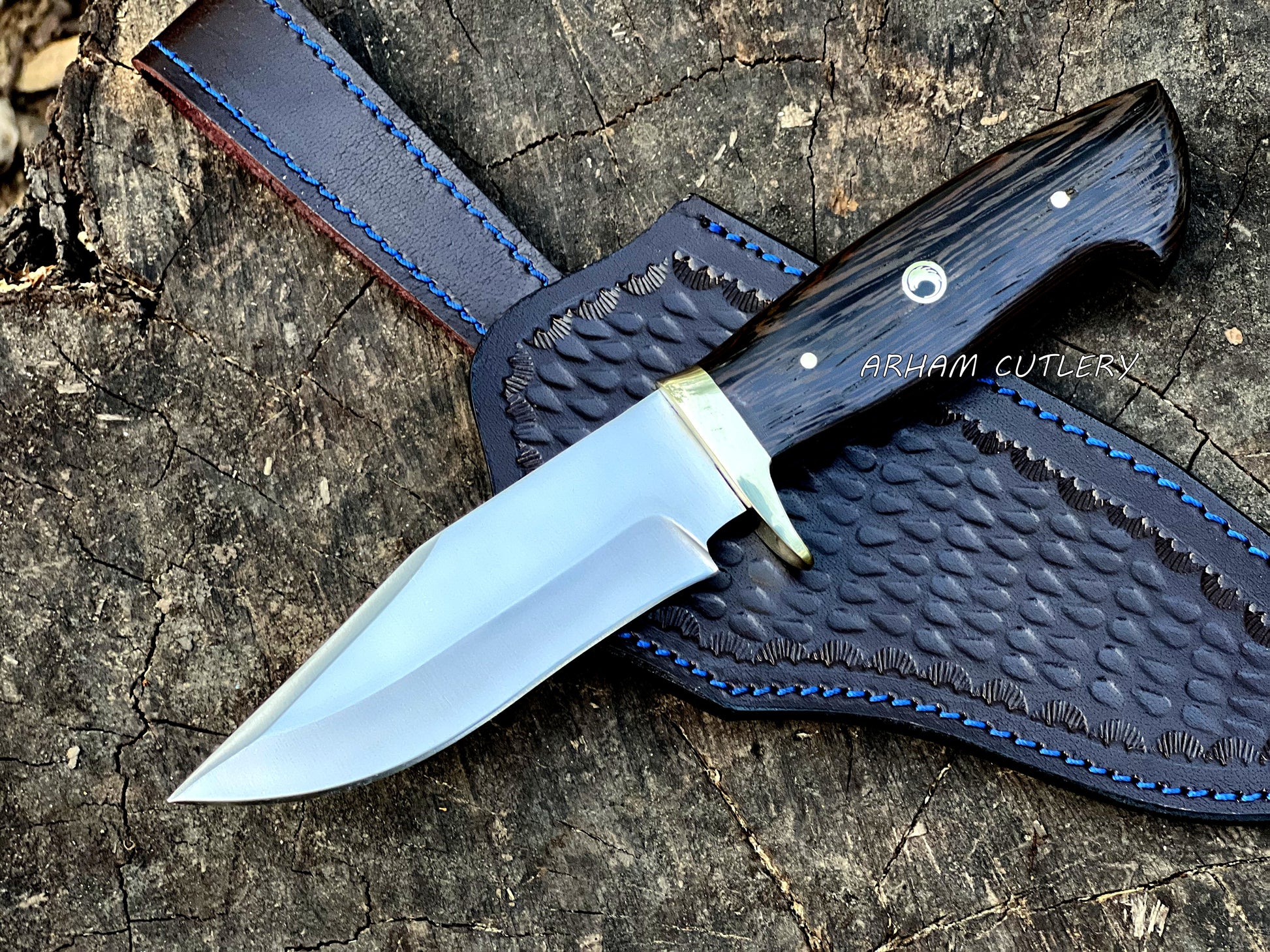 Handmade D2 Steel Hunting Knife with Brass Bolster & Wenge Wood Handle – Arham Cutlery