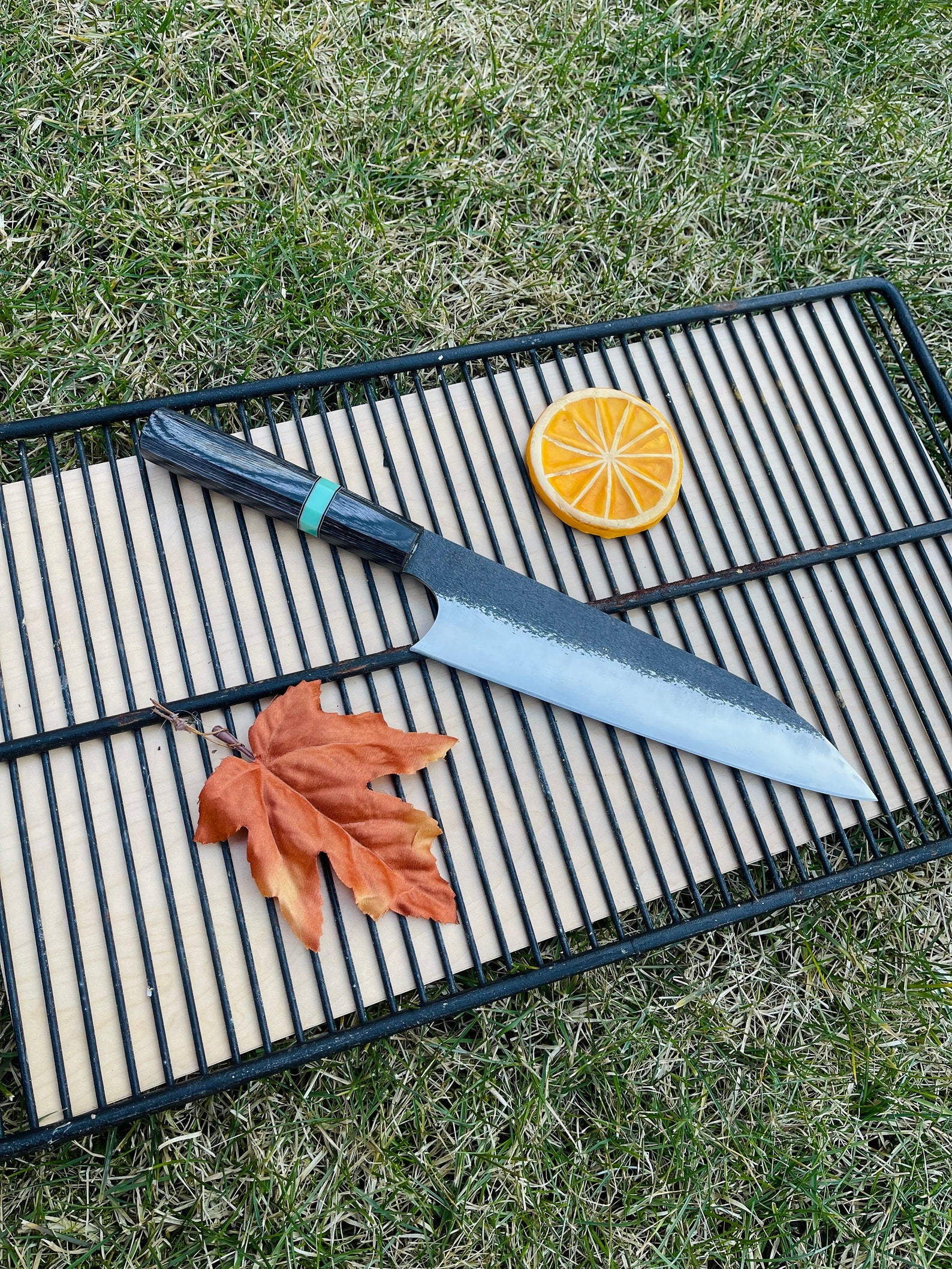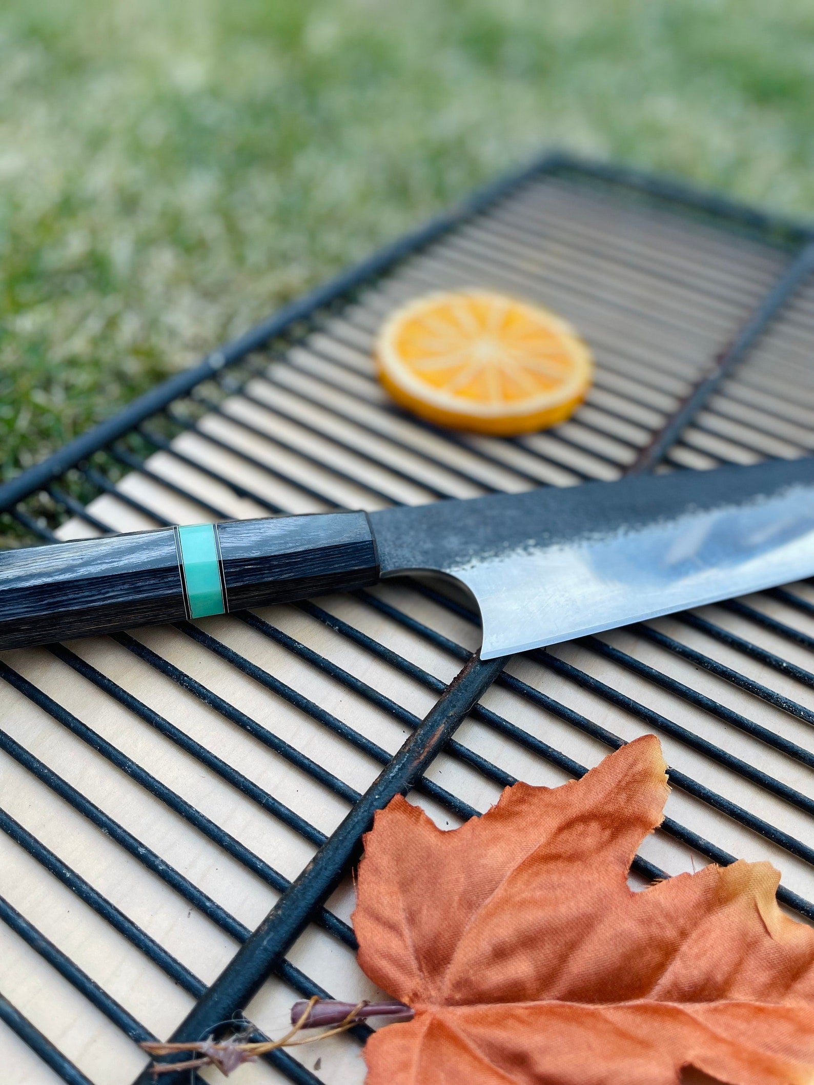 Introducing our very sharp handmade kitchen/chef knife, perfect for any cooking enthusiast. This 14" knife is meticulously crafted to provide precision and durability in all your culinary endeavors.