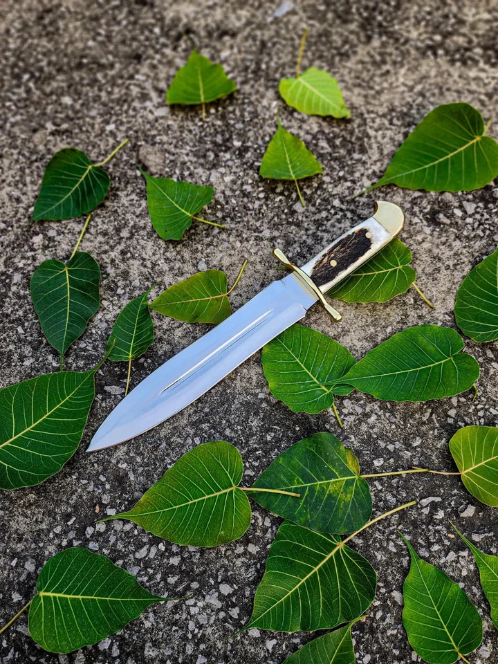 Handmade Stainless Steel Bowie Hunting Knife with Stag Handle & Leather Sheath | Arham Cutlery